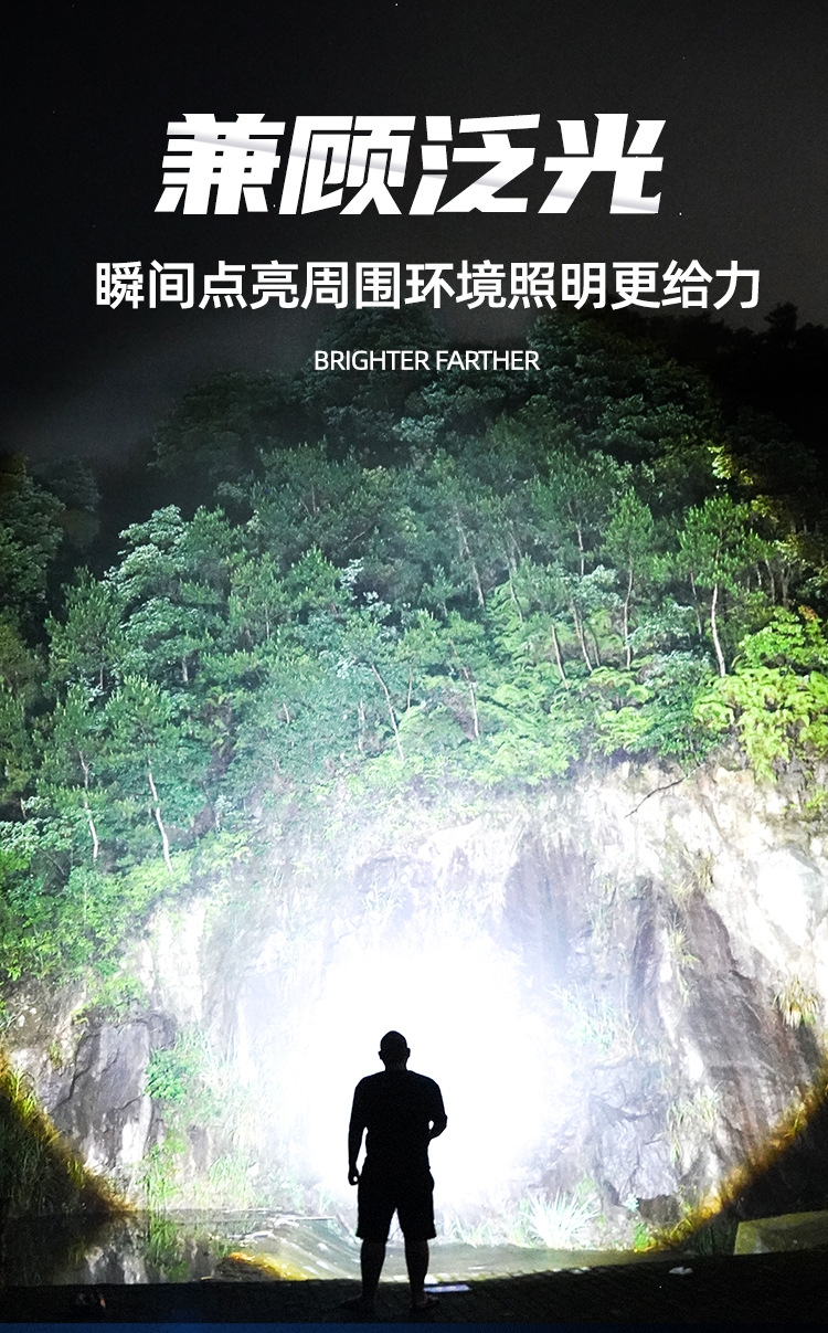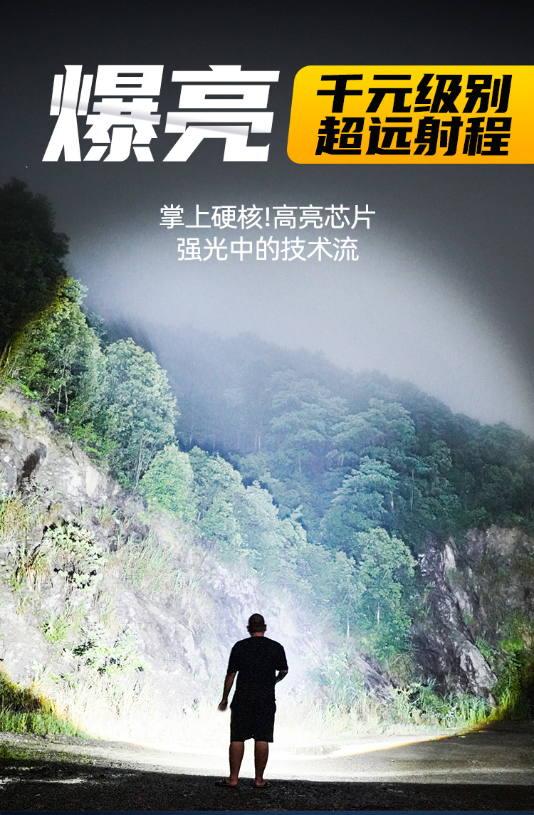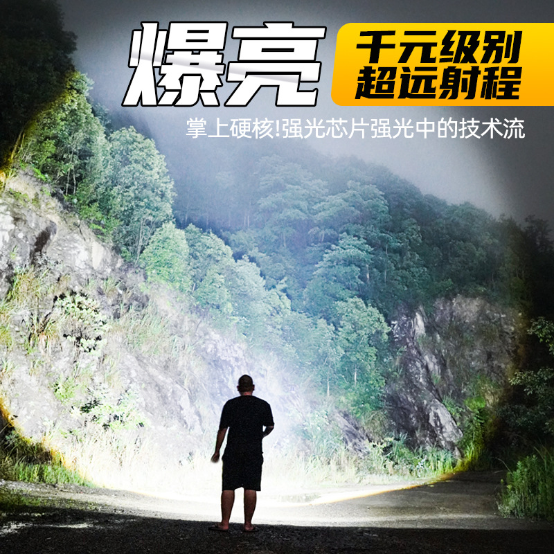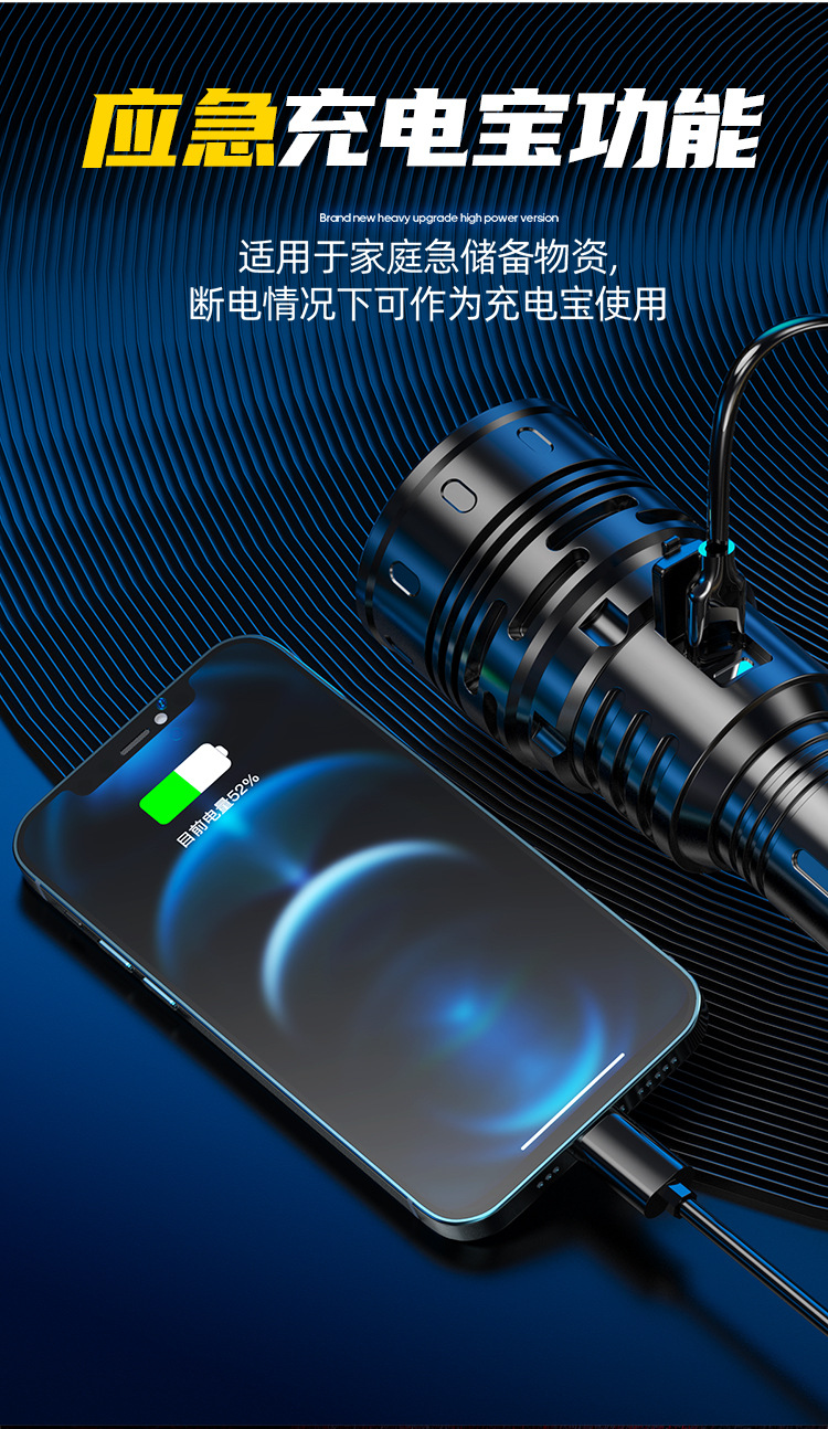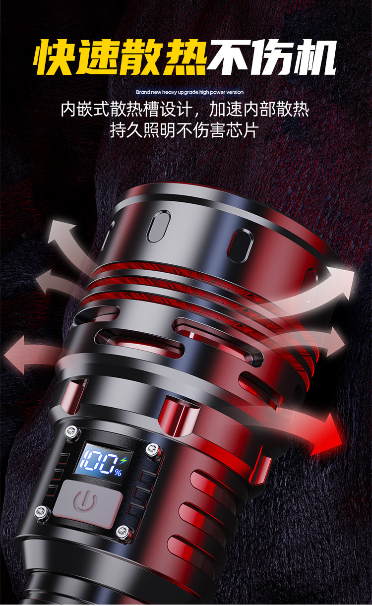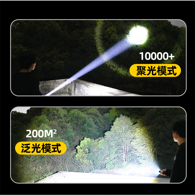 新款 Type-C快充数显P90手电筒 户外防水充电超亮战术变焦手电筒
