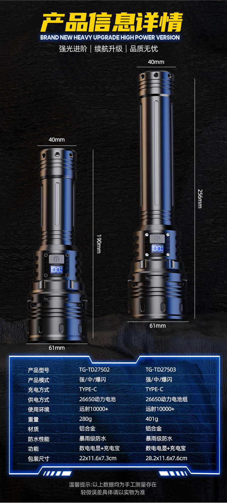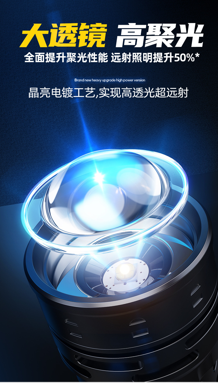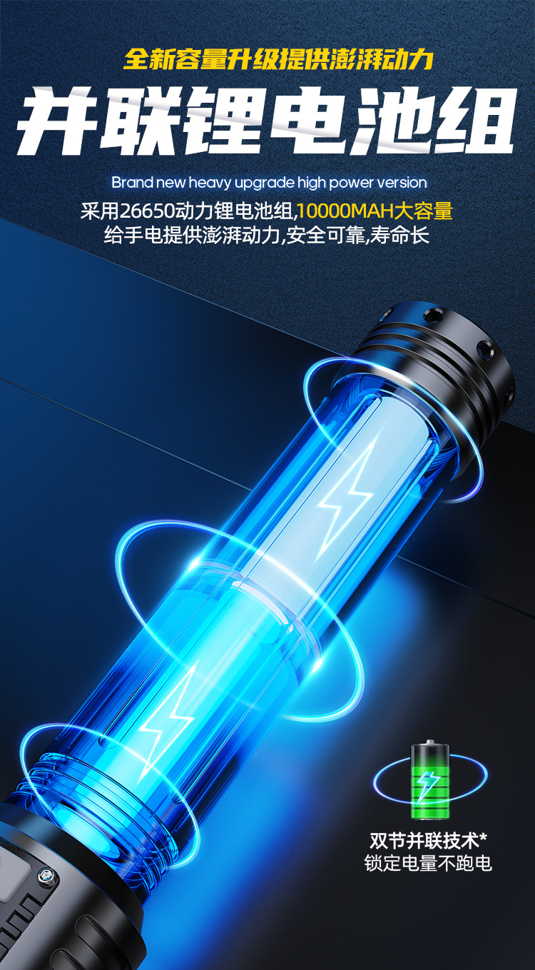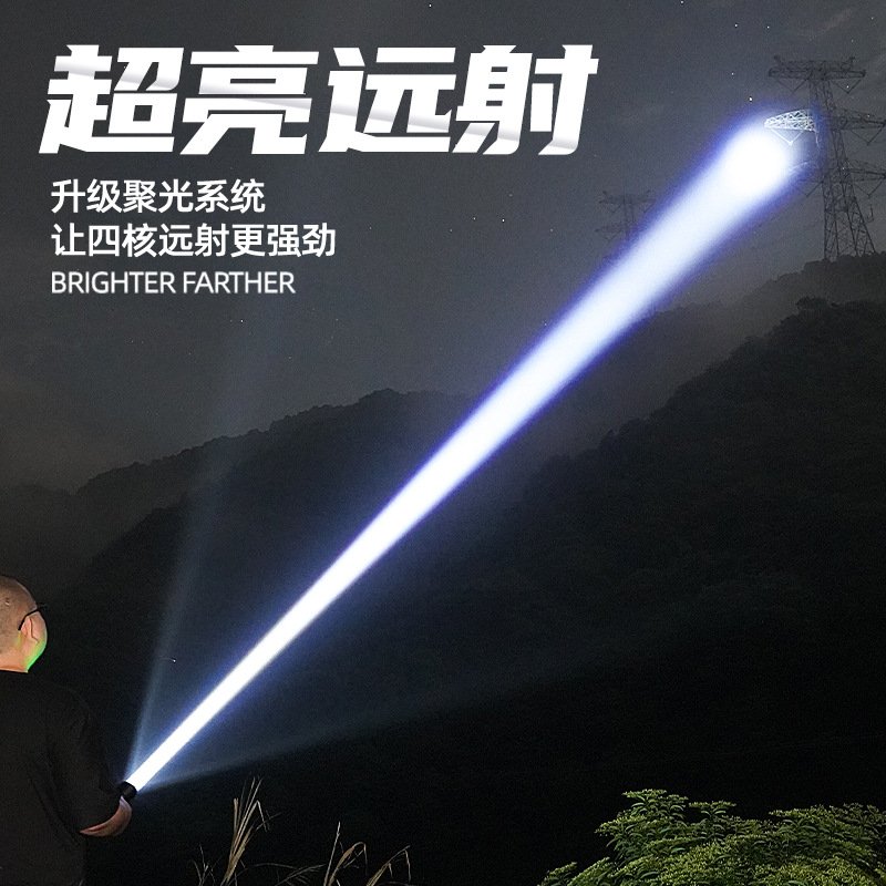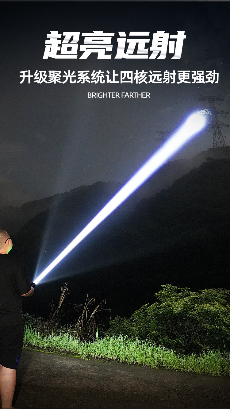 新款 Type-C快充数显P90手电筒 户外防水充电超亮战术变焦手电筒