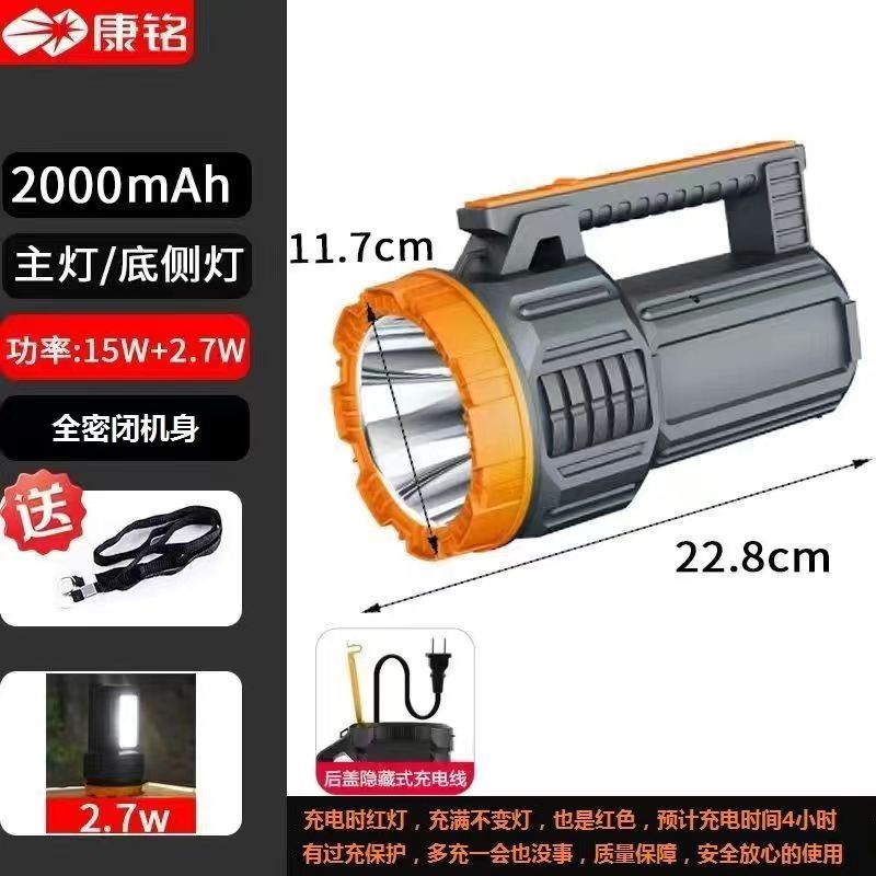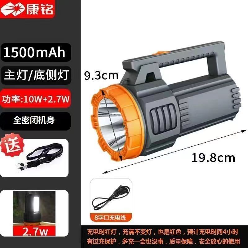 康铭大功率手提式led探照灯强光远射保安巡逻应急防汛消防手电筒