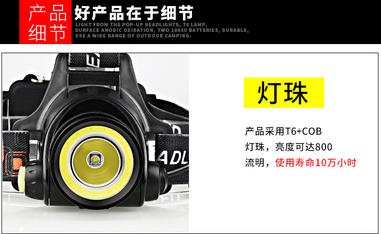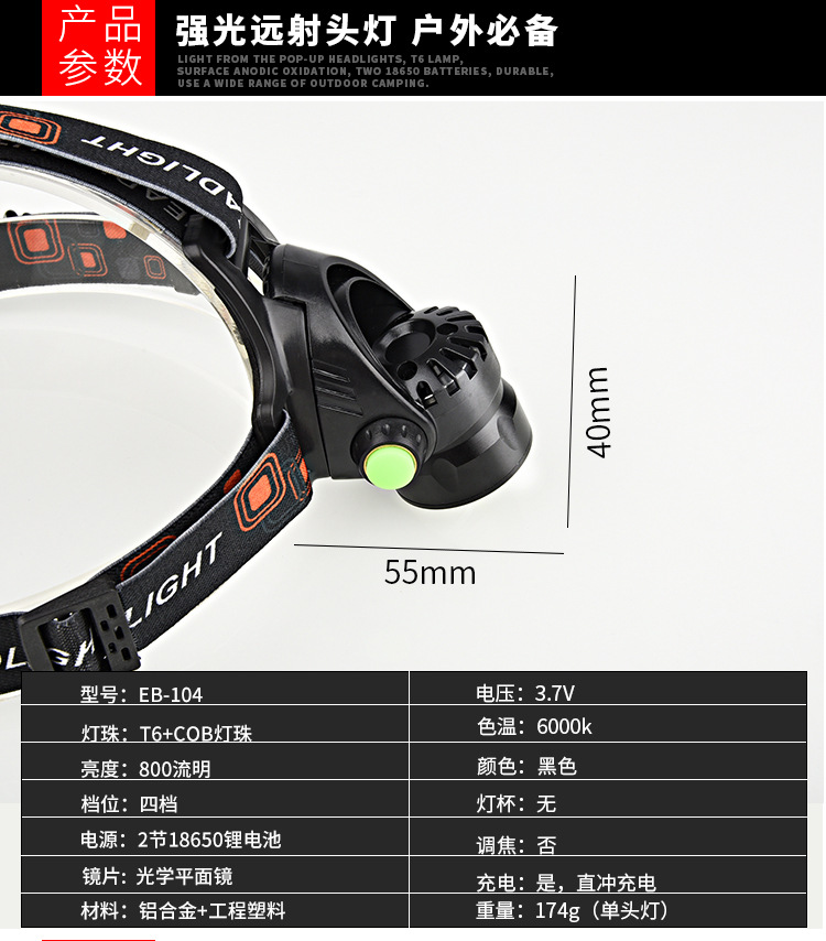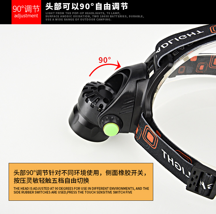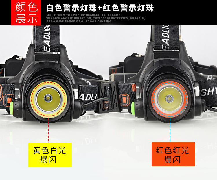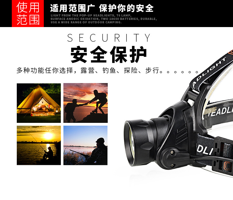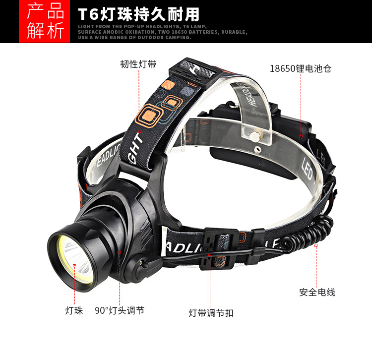 跨境头灯强光长续航变焦远射头戴式电筒矿灯户外照明夜钓 led头灯