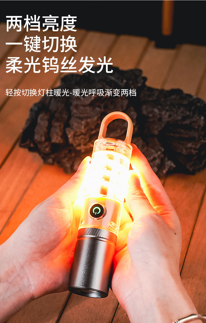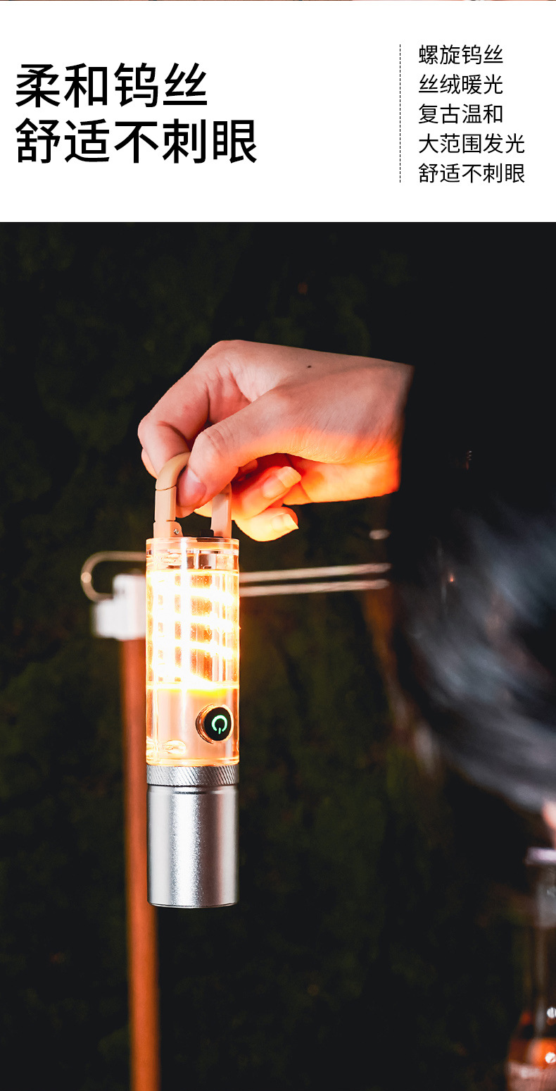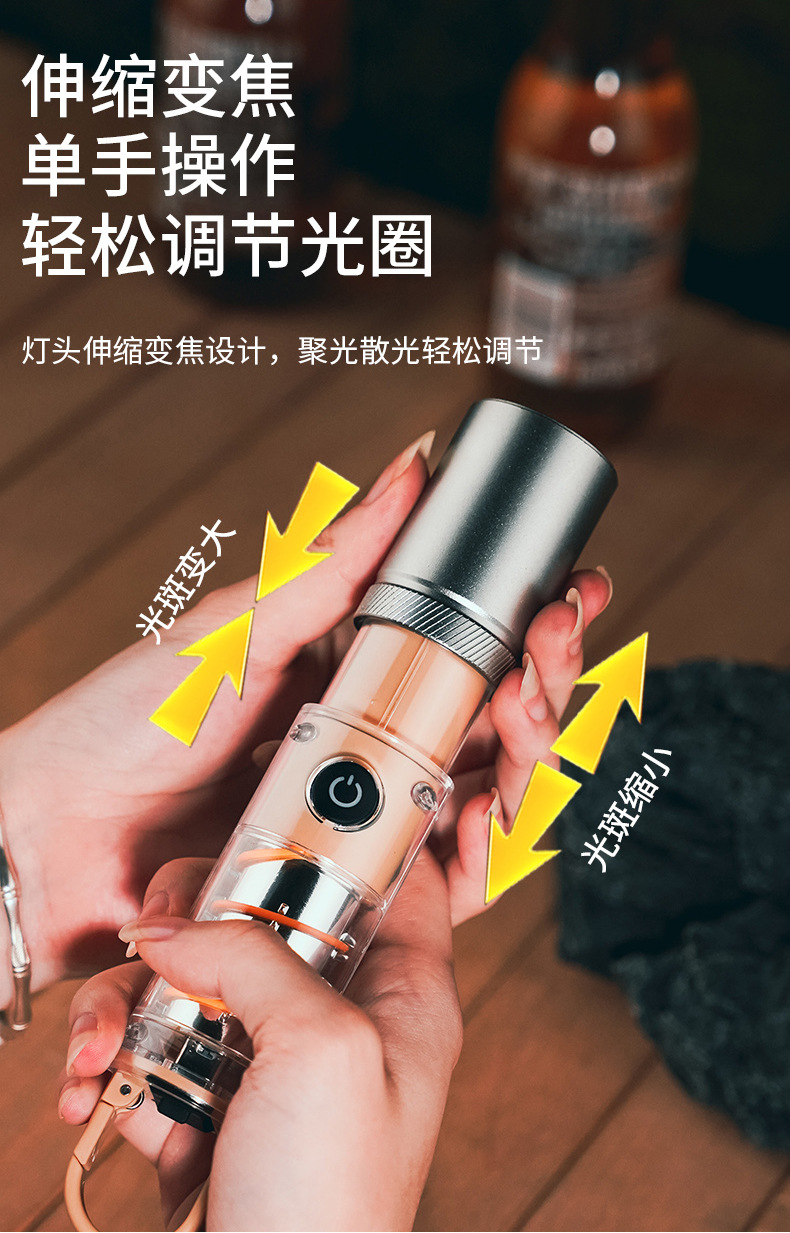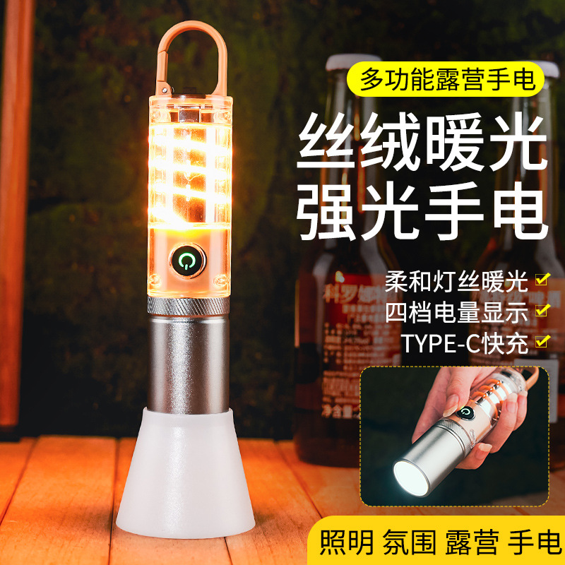 手电筒强光多功能双光源带挂钩可充电照明灯变焦钨丝氛围露营灯