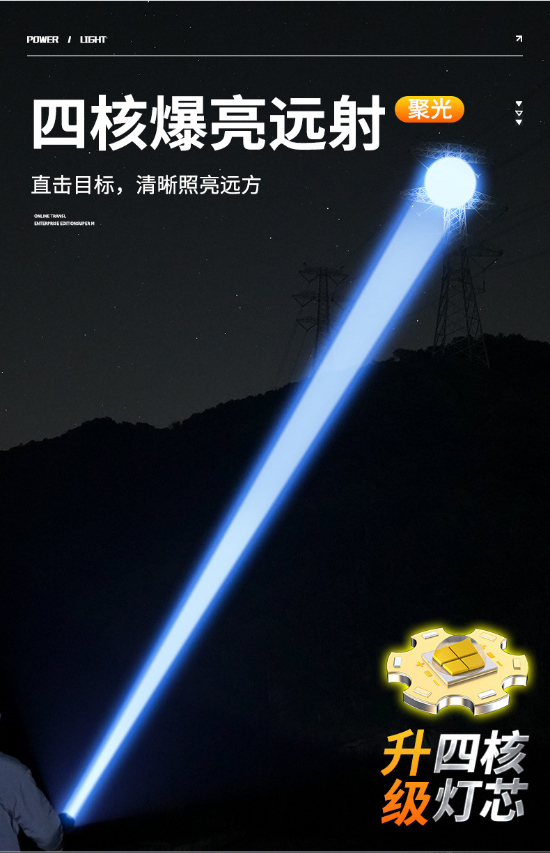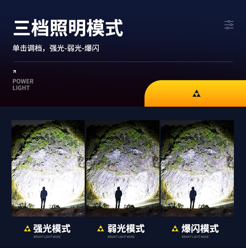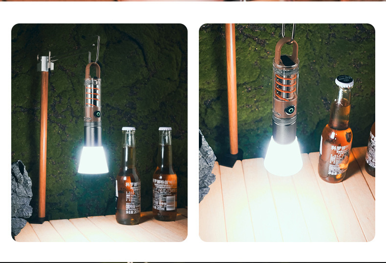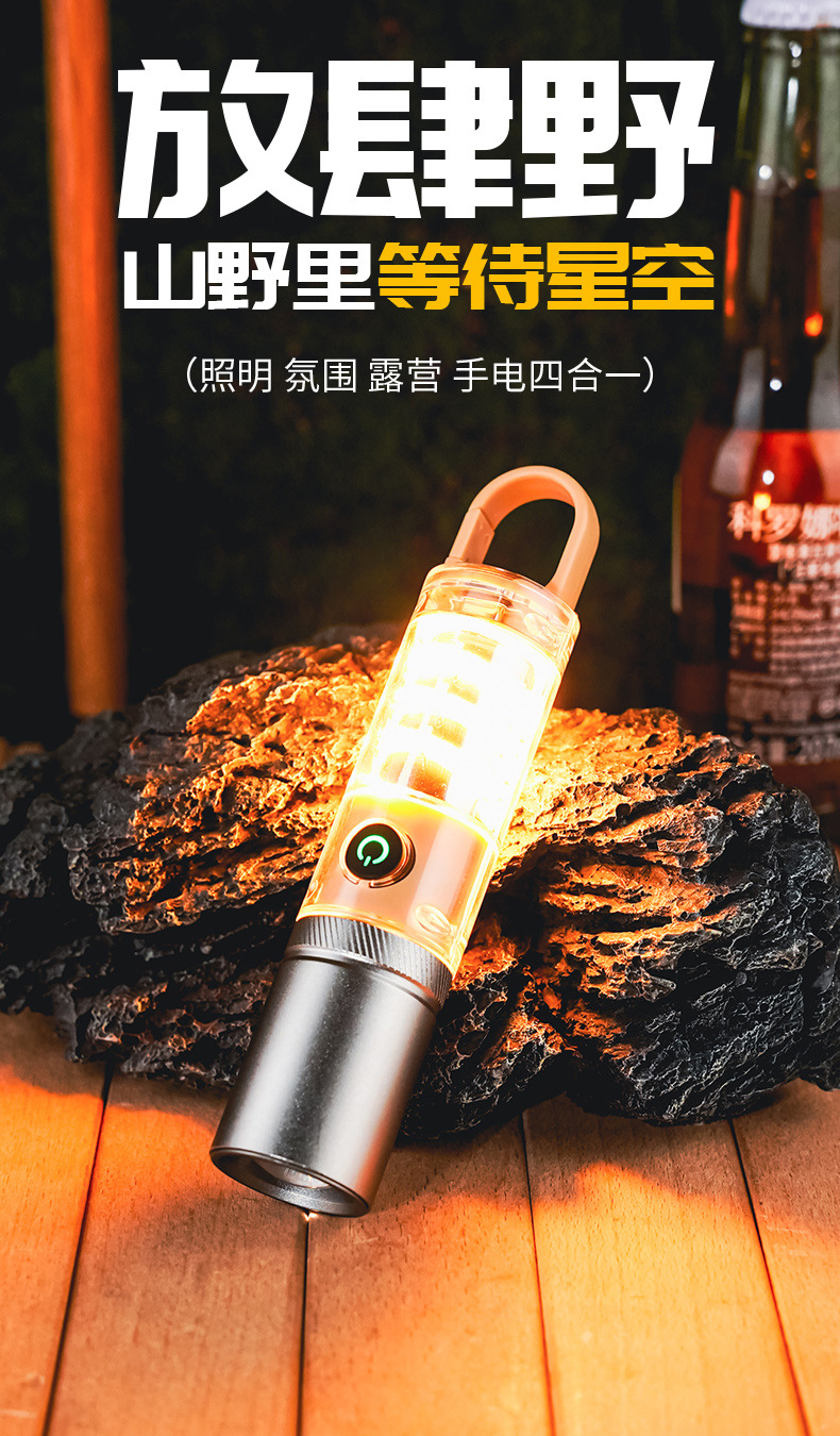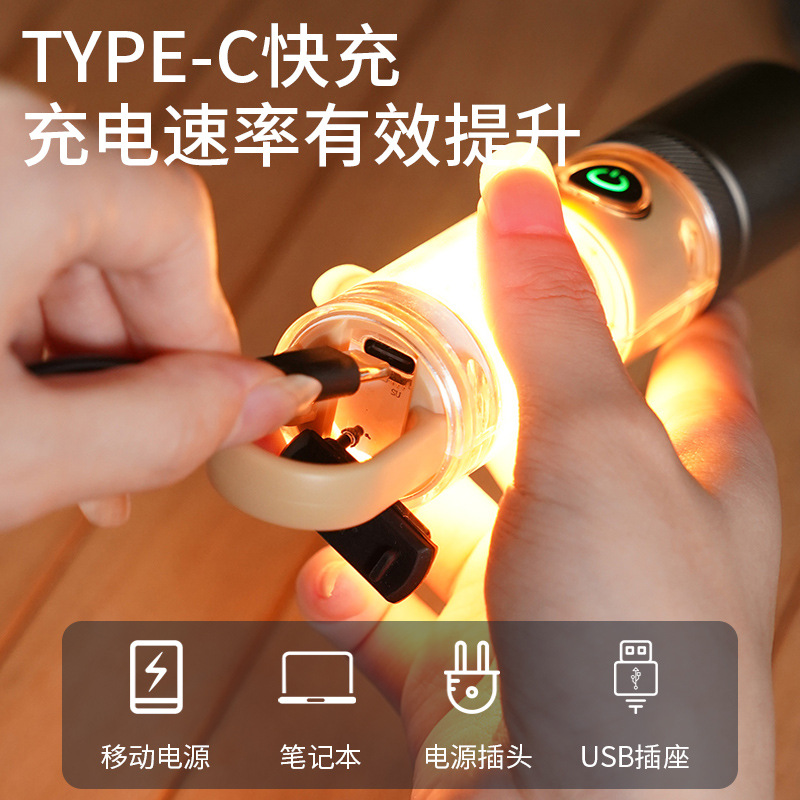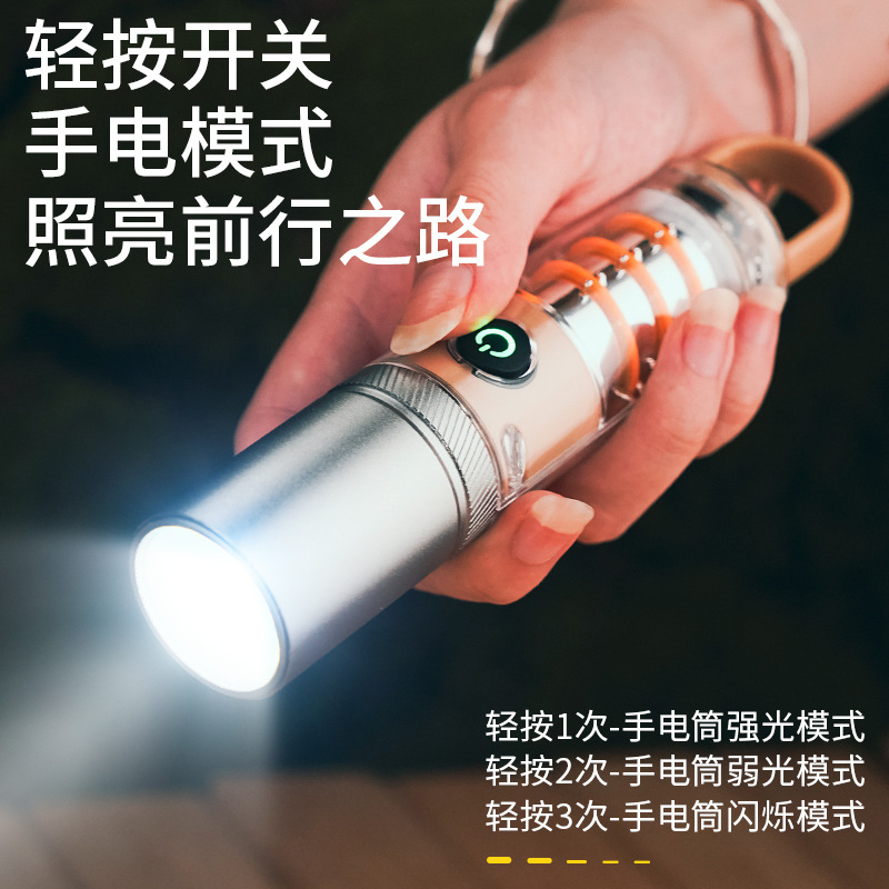 手电筒强光多功能双光源带挂钩可充电照明灯变焦钨丝氛围露营灯