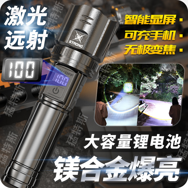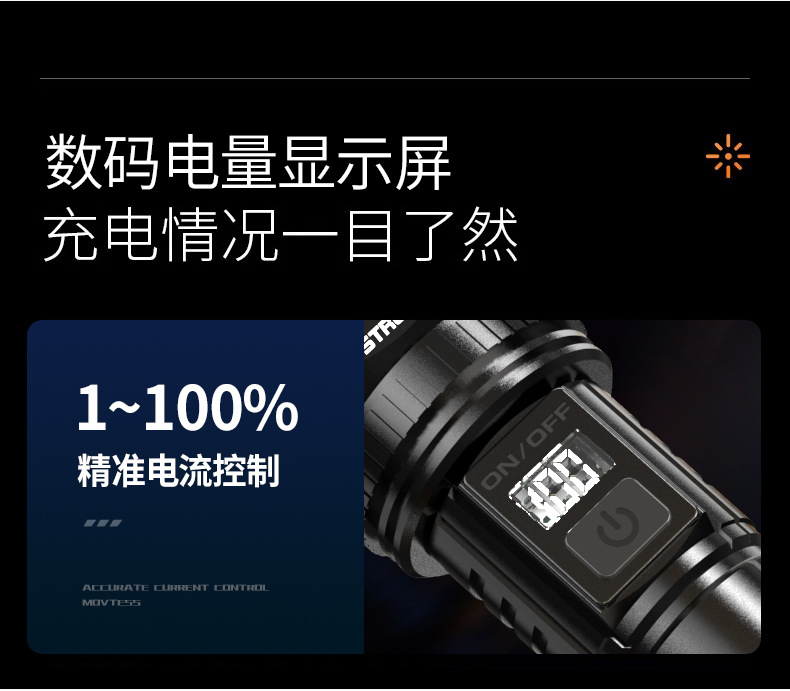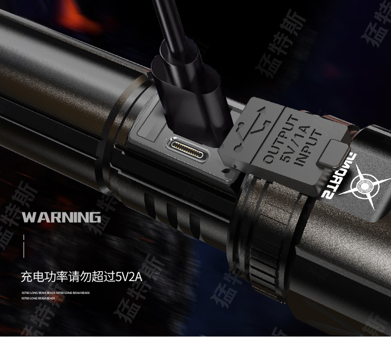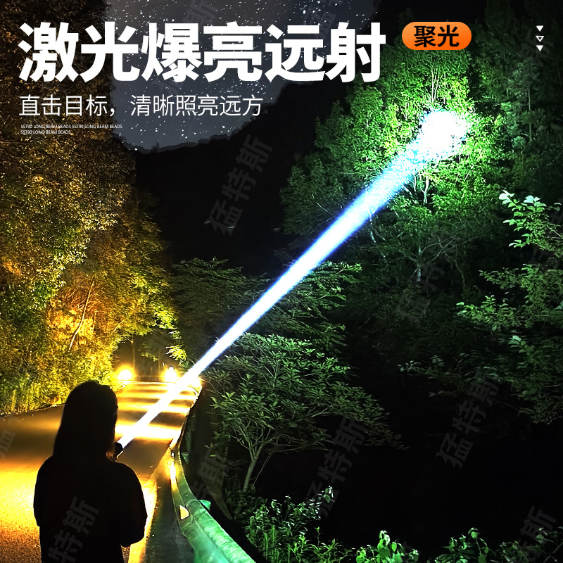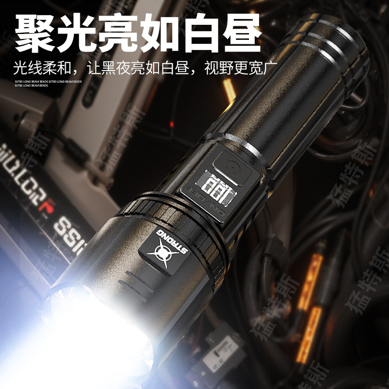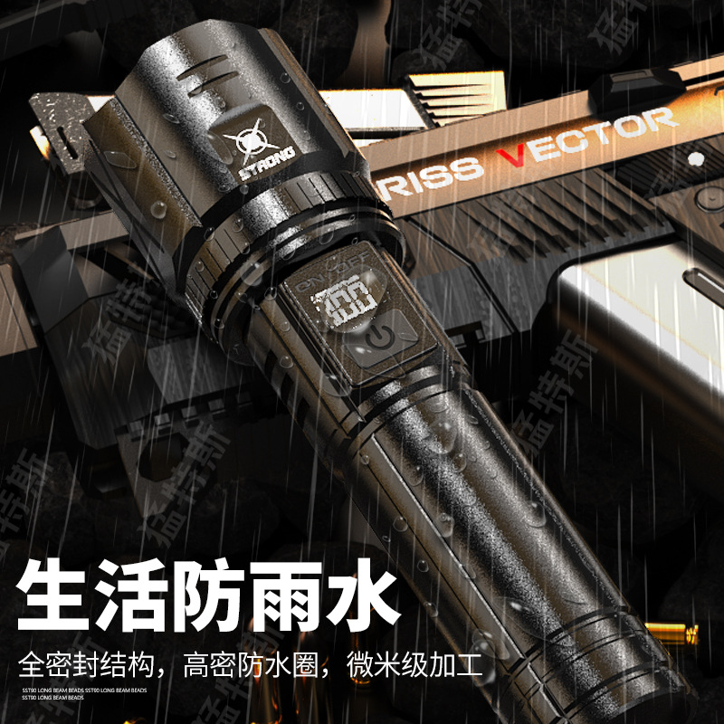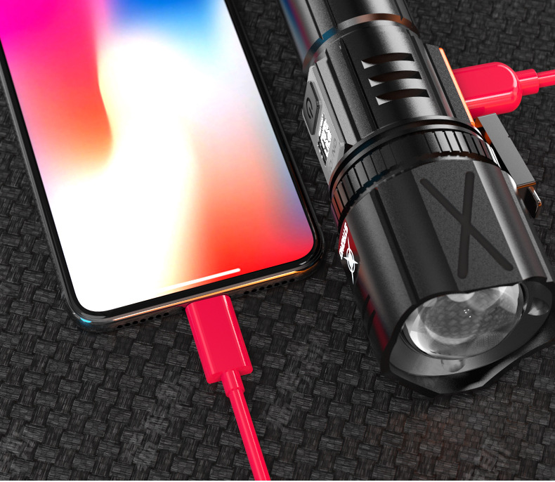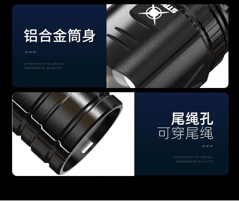 跨境超亮铝合金手电筒强光可充电户外应急家用照明灯远射探照灯