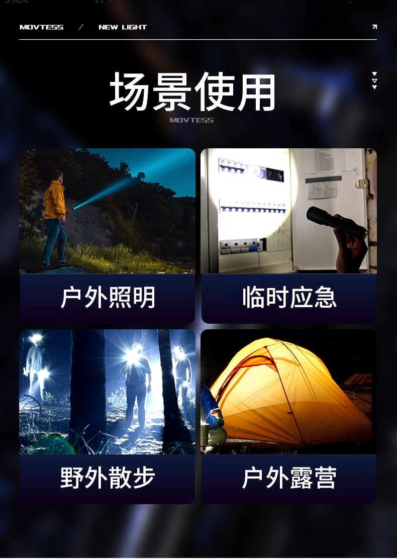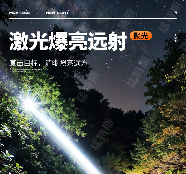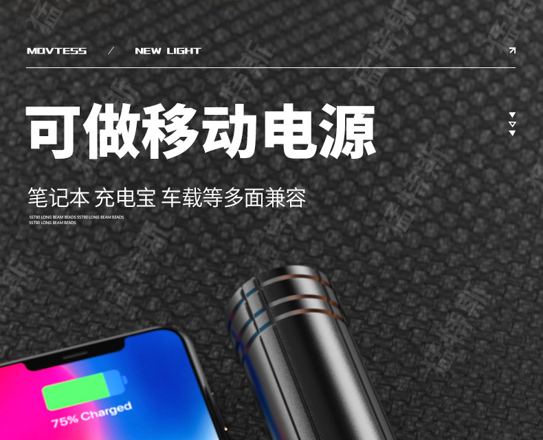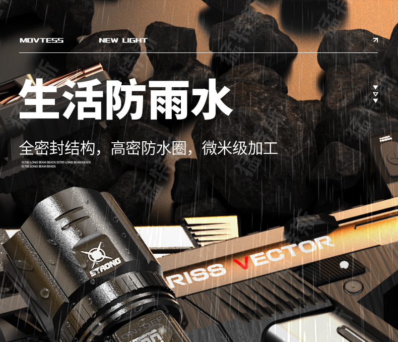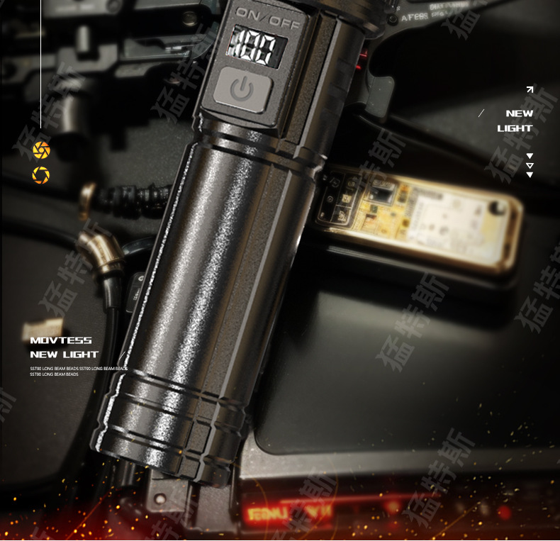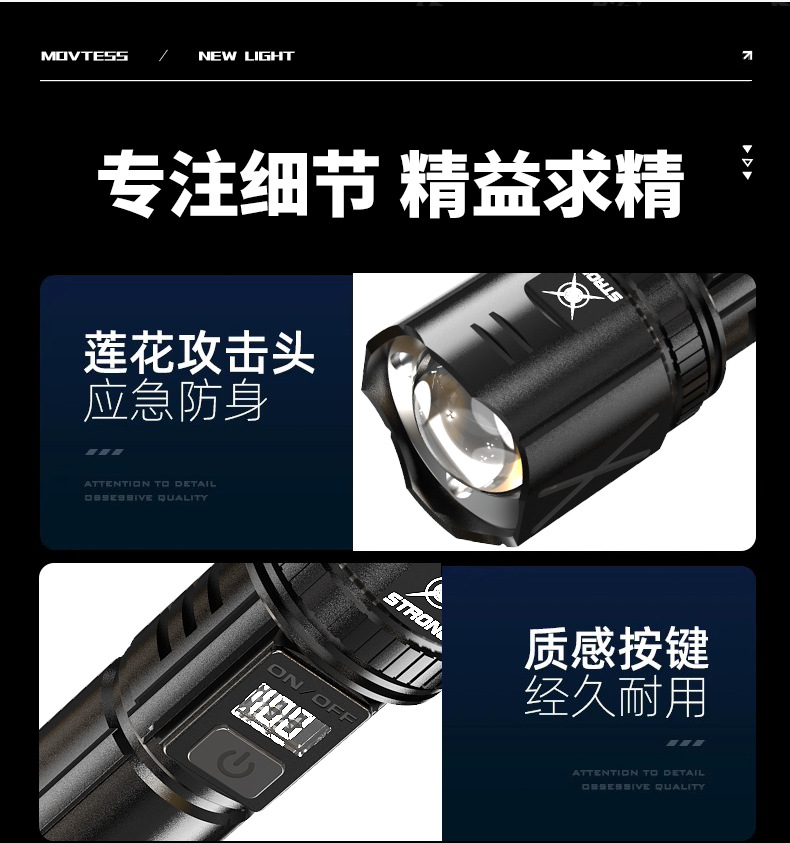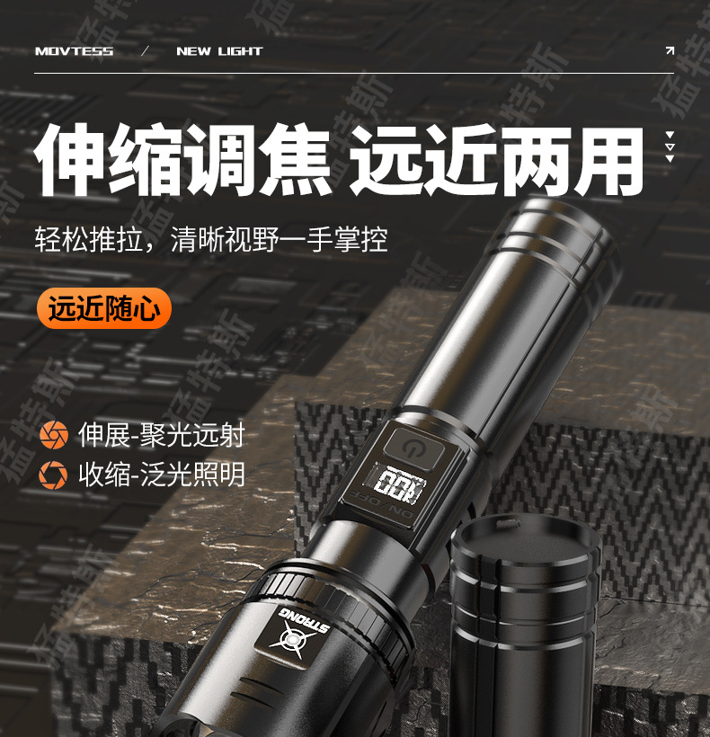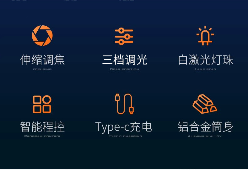 跨境超亮铝合金手电筒强光可充电户外应急家用照明灯远射探照灯
