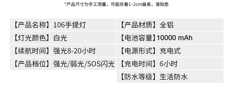 | 106 portable lamp white light(106手提灯 白光) | USD $27.87 | 2915 box available |