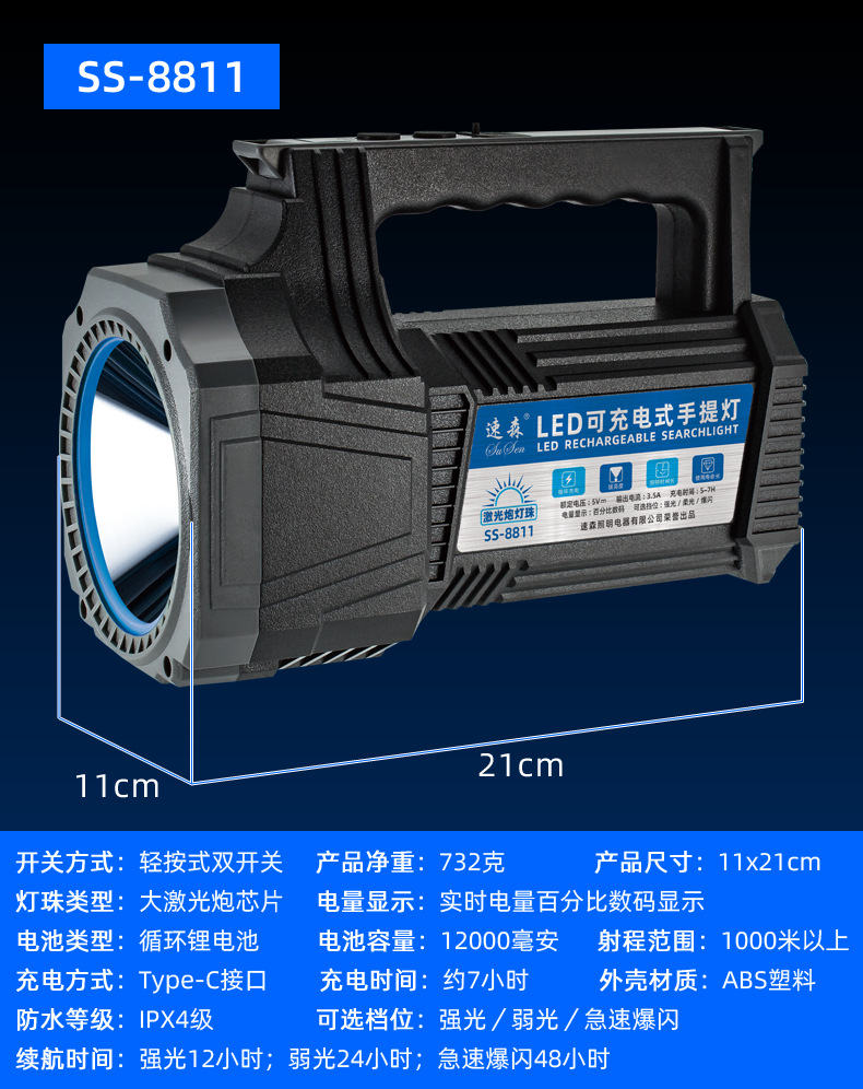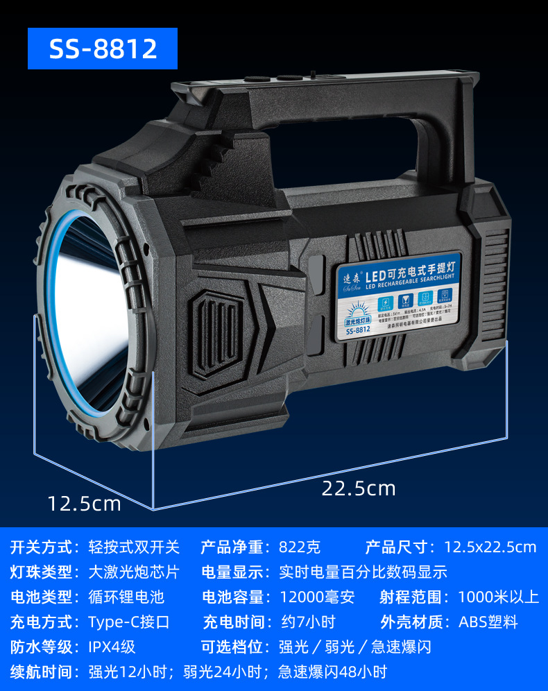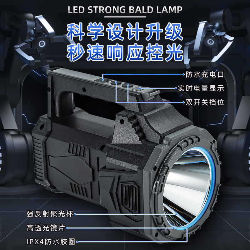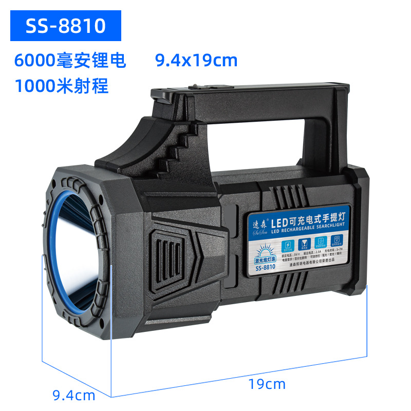 大功率led激光炮强光手提探照灯户外应急照明消防防汛大号手电筒