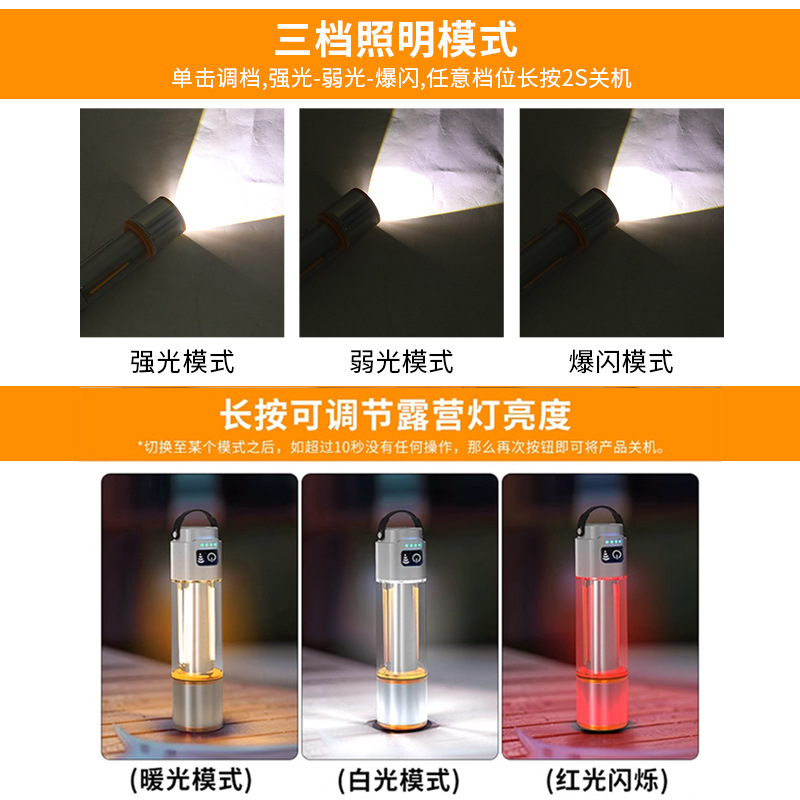 新款抖音跨境热卖超亮强光手电筒户外露营氛围远射可充电家用照明