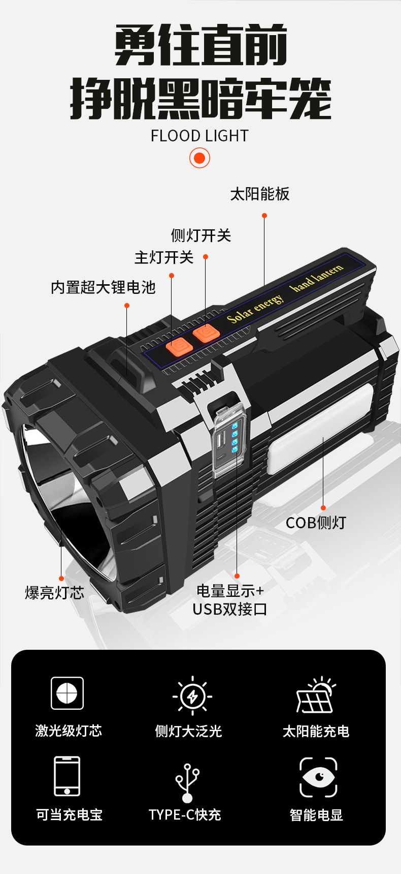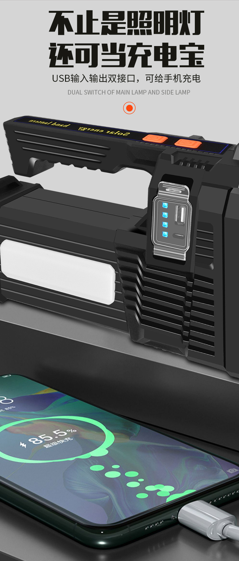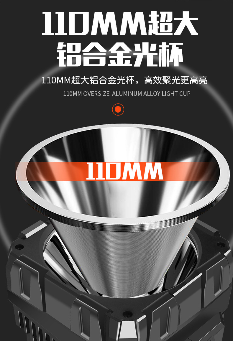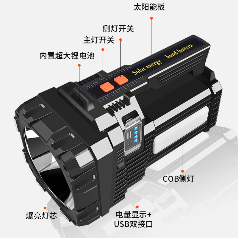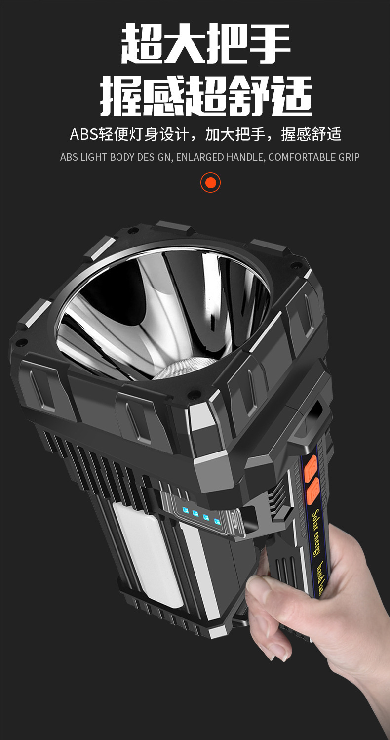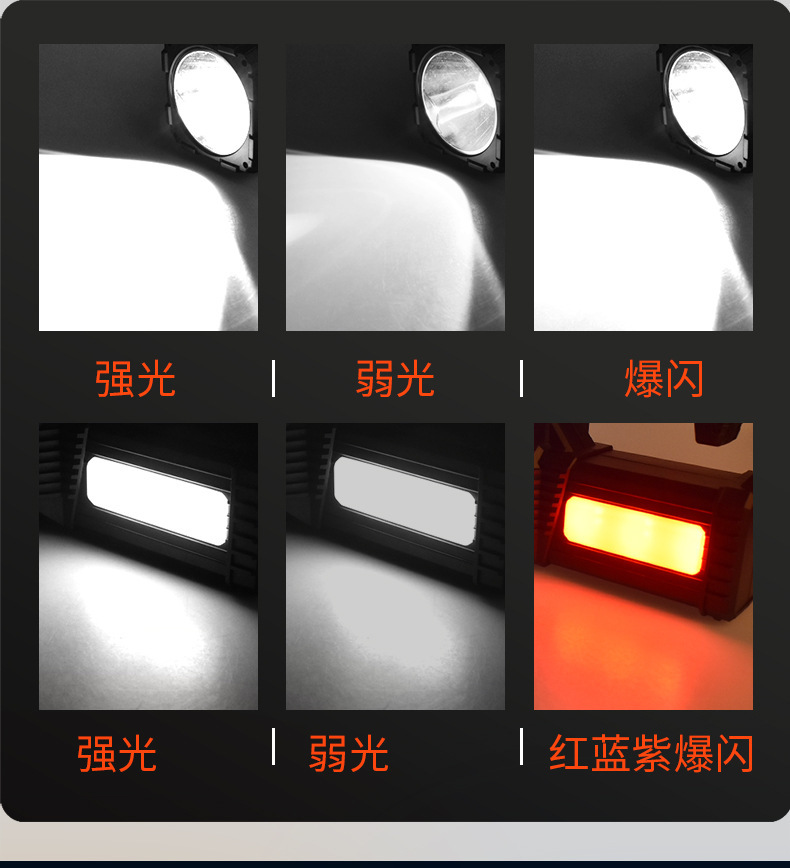 跨境新款户外强光大功率照明手电多功能红蓝LED探照灯应急巡逻灯