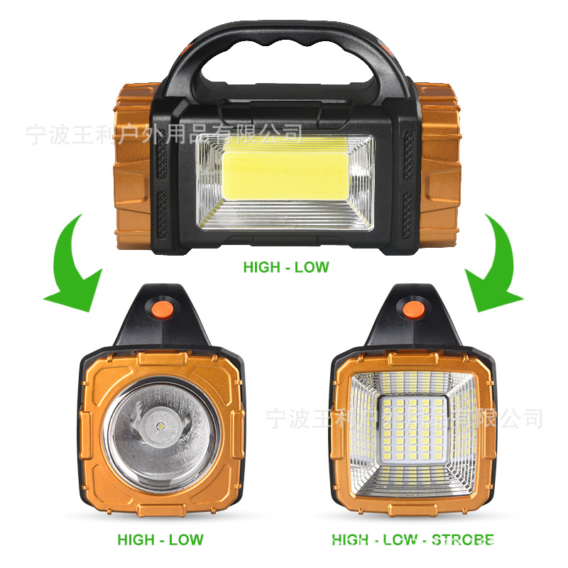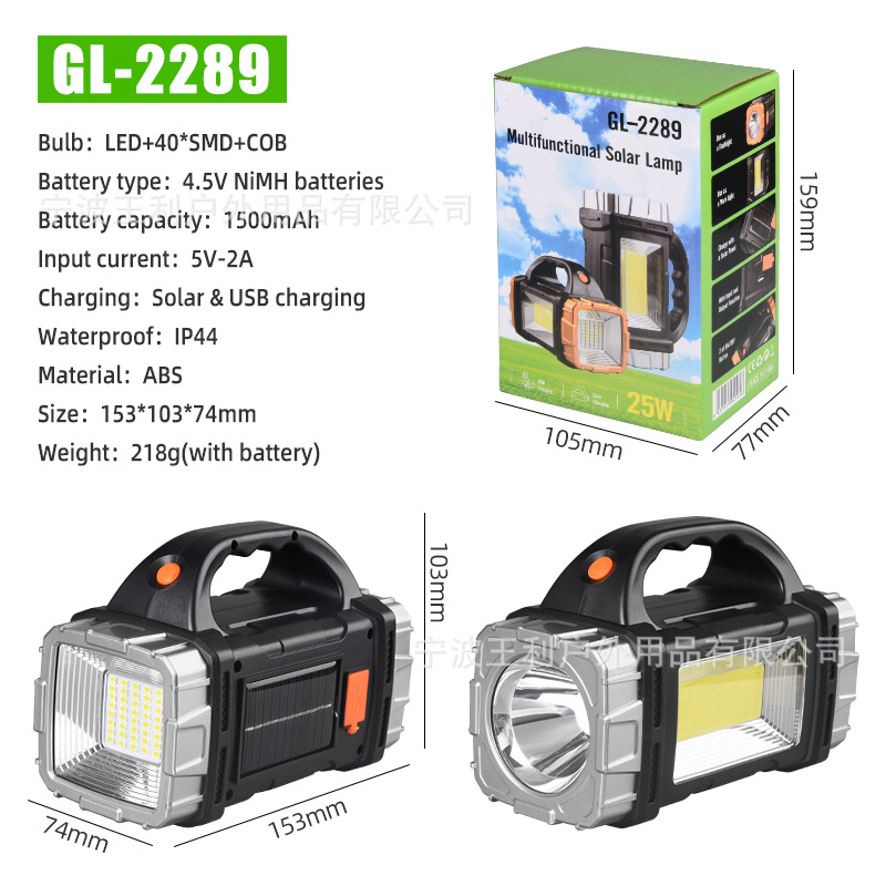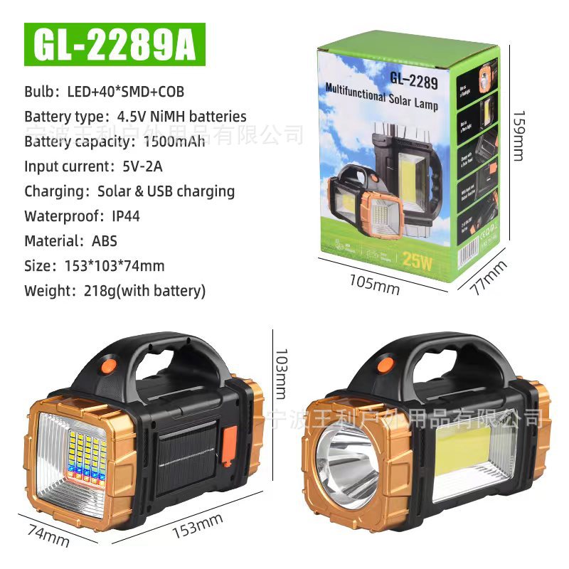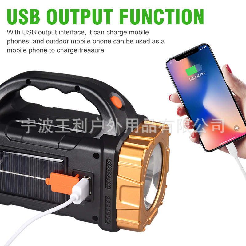 跨境新款多功能手提灯手电筒户外太阳能充电LED照明灯便携探照灯