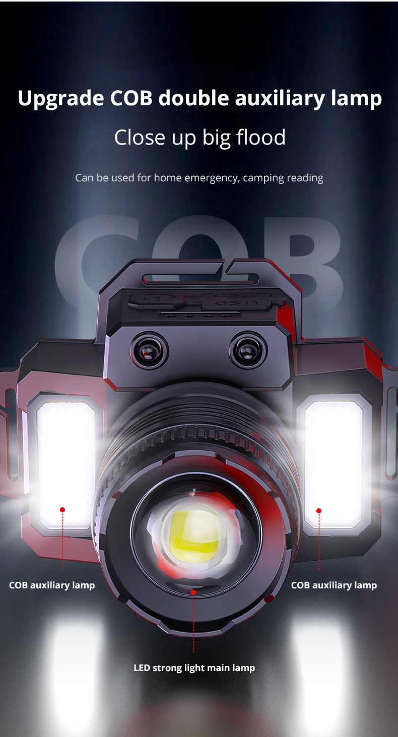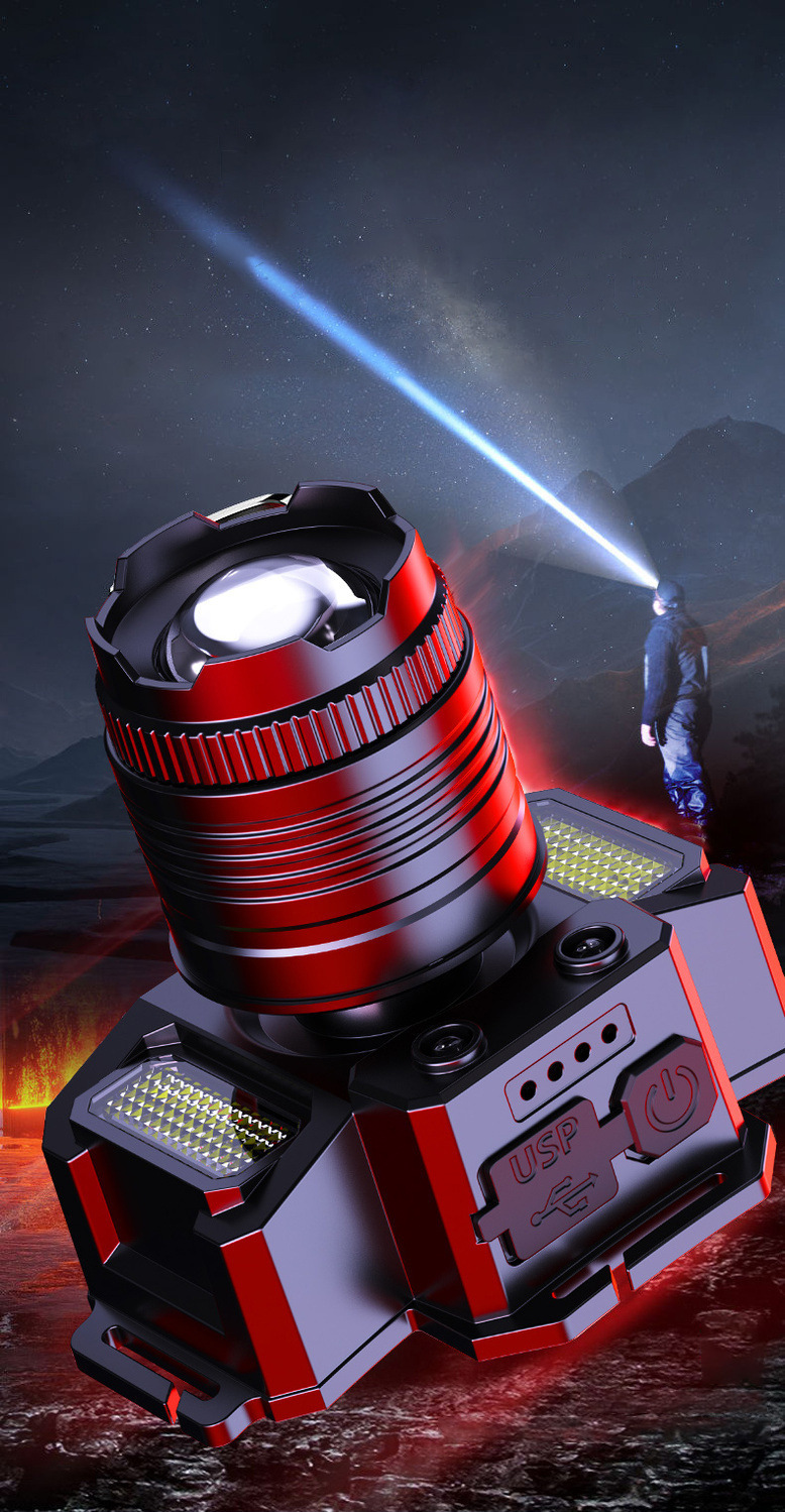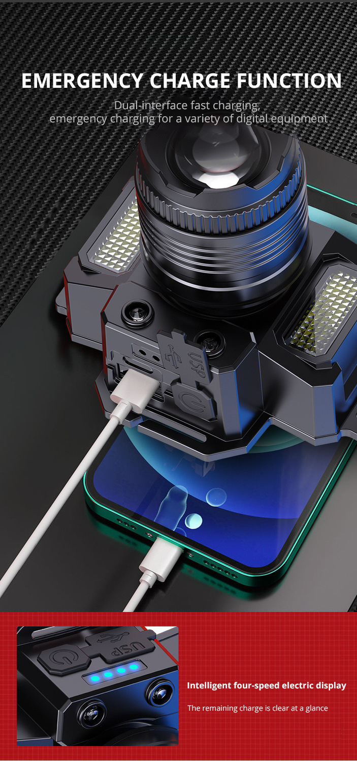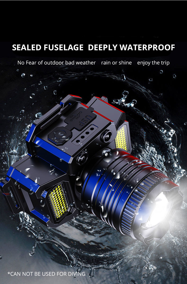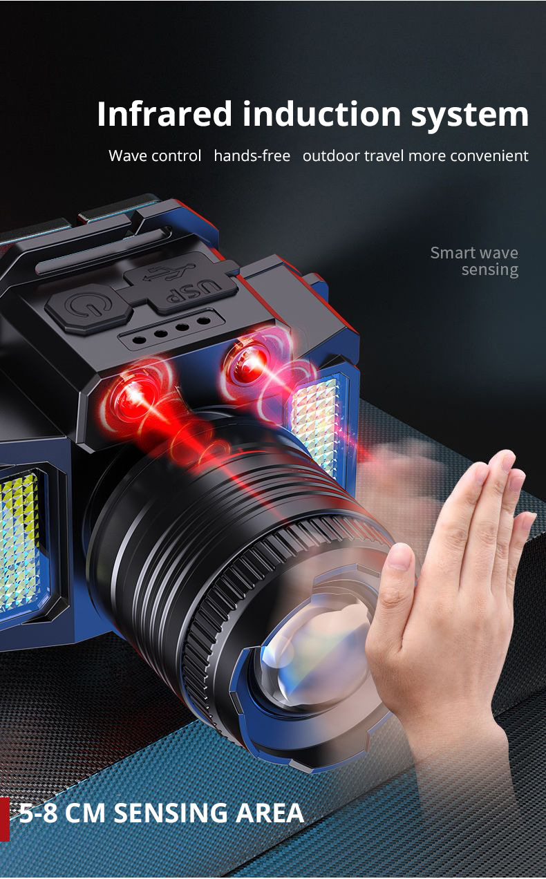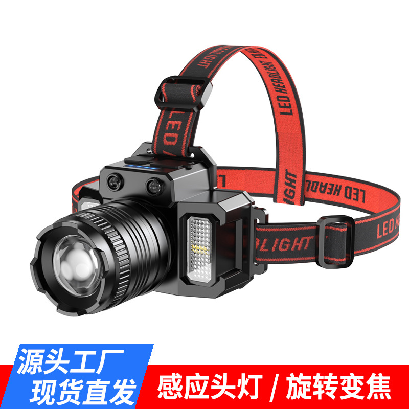 LED感应头灯长续航强光超亮野外钓鱼灯头戴式矿灯户外充电手电筒