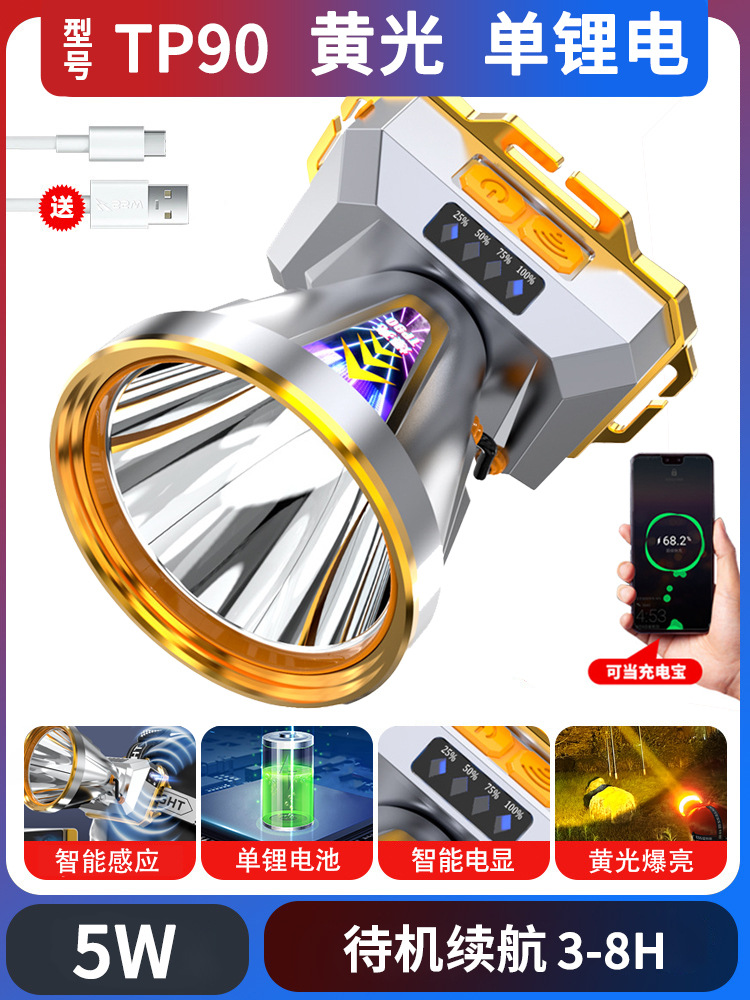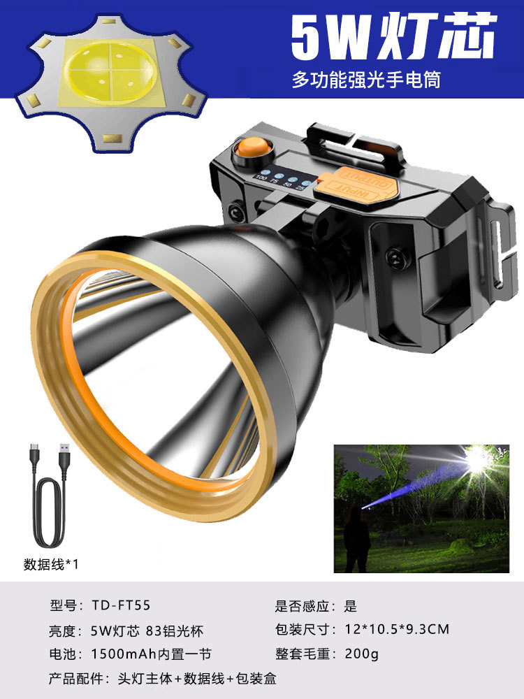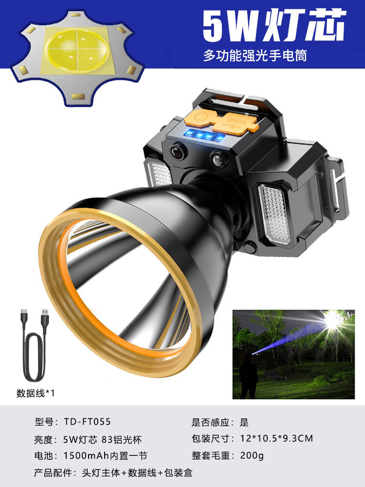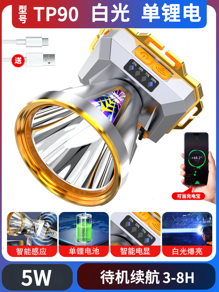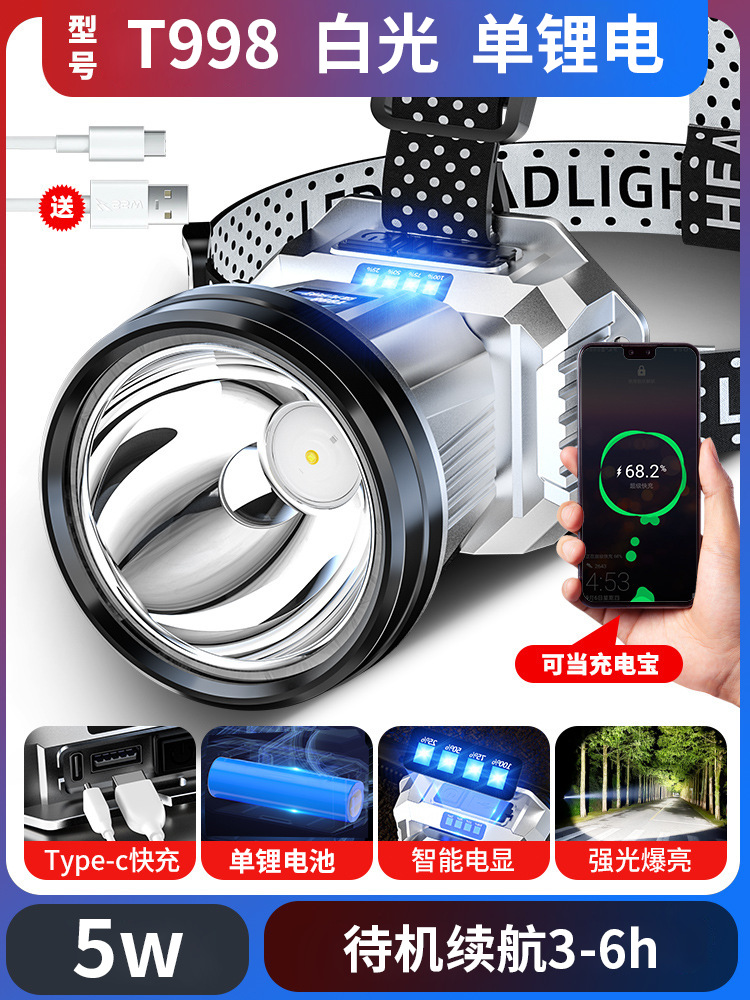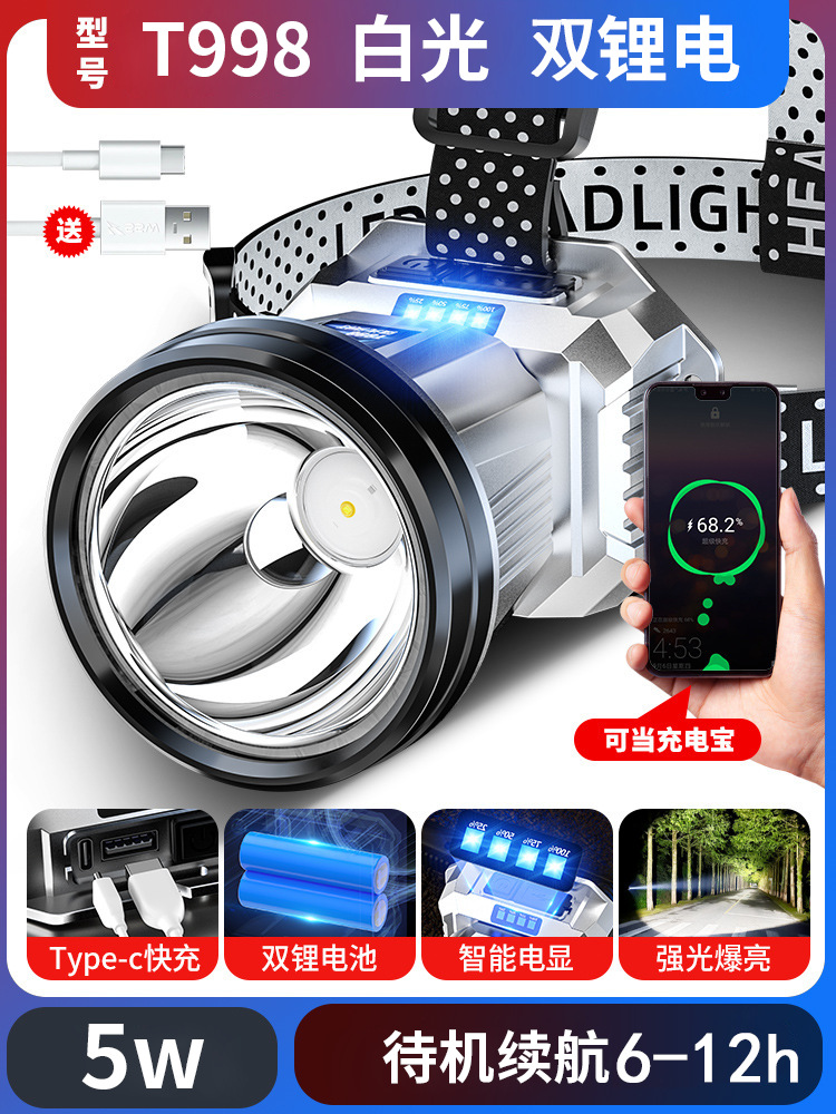 跨境大功率LED强光头灯爆亮远射户外钓鱼夜钓防水头灯探照电筒