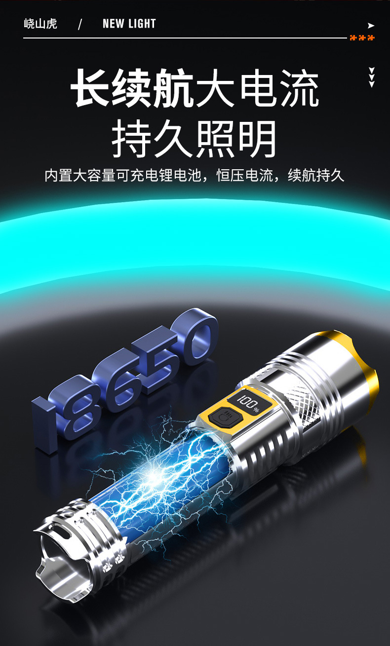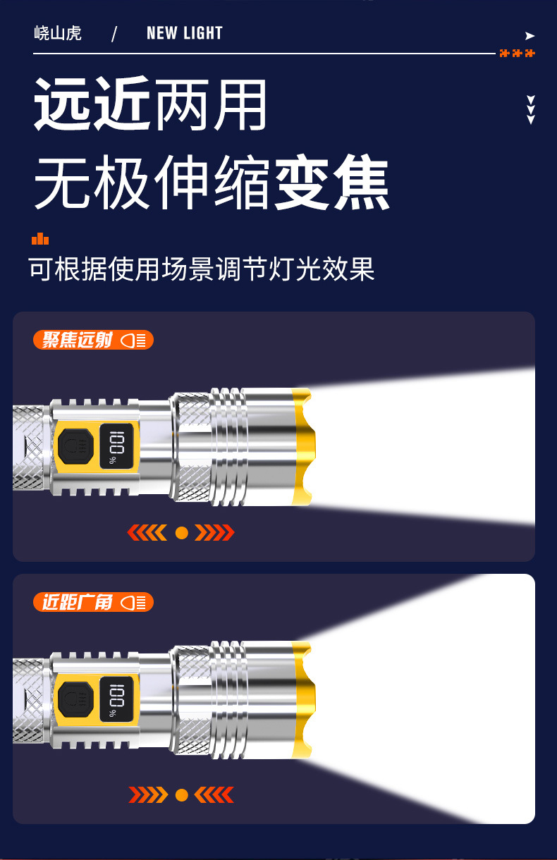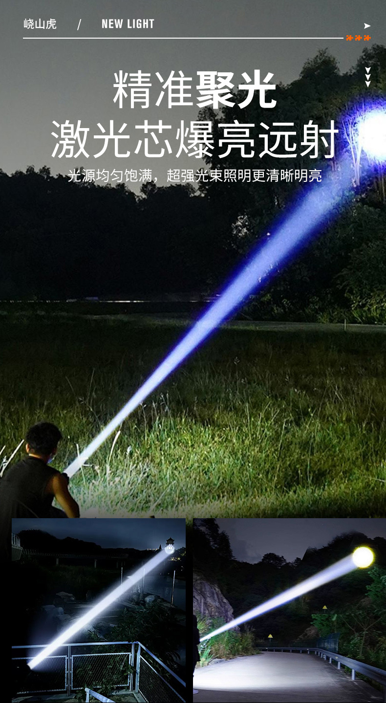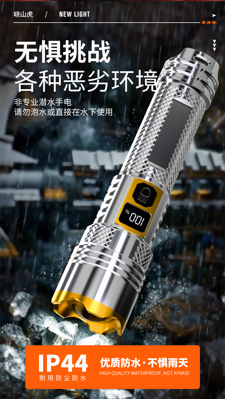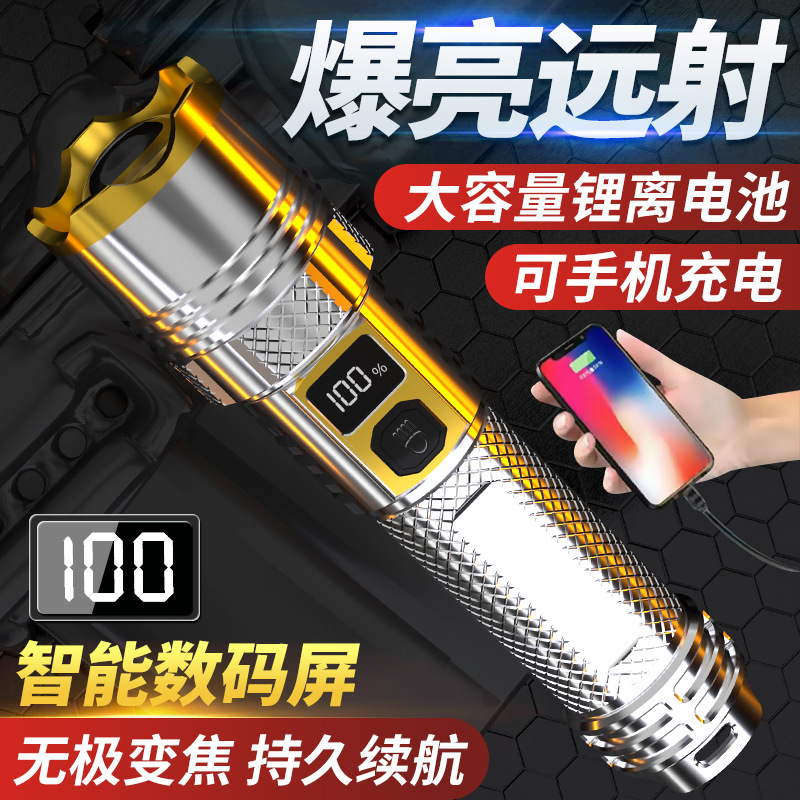 LED变焦数码显示强光手电筒可充电超亮户外应急照明灯激光灯现货