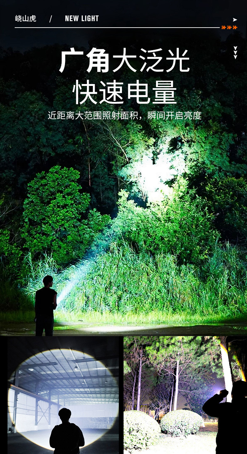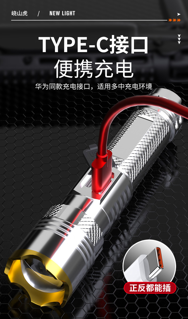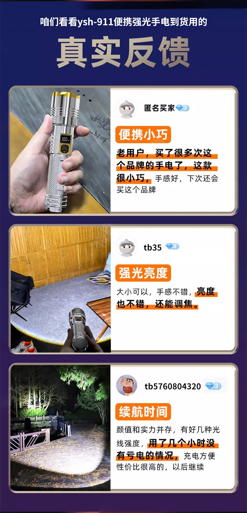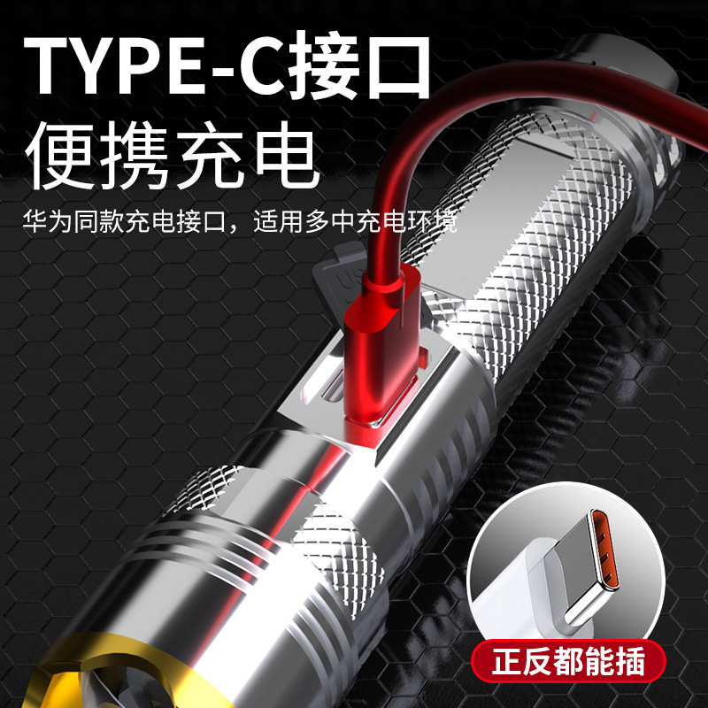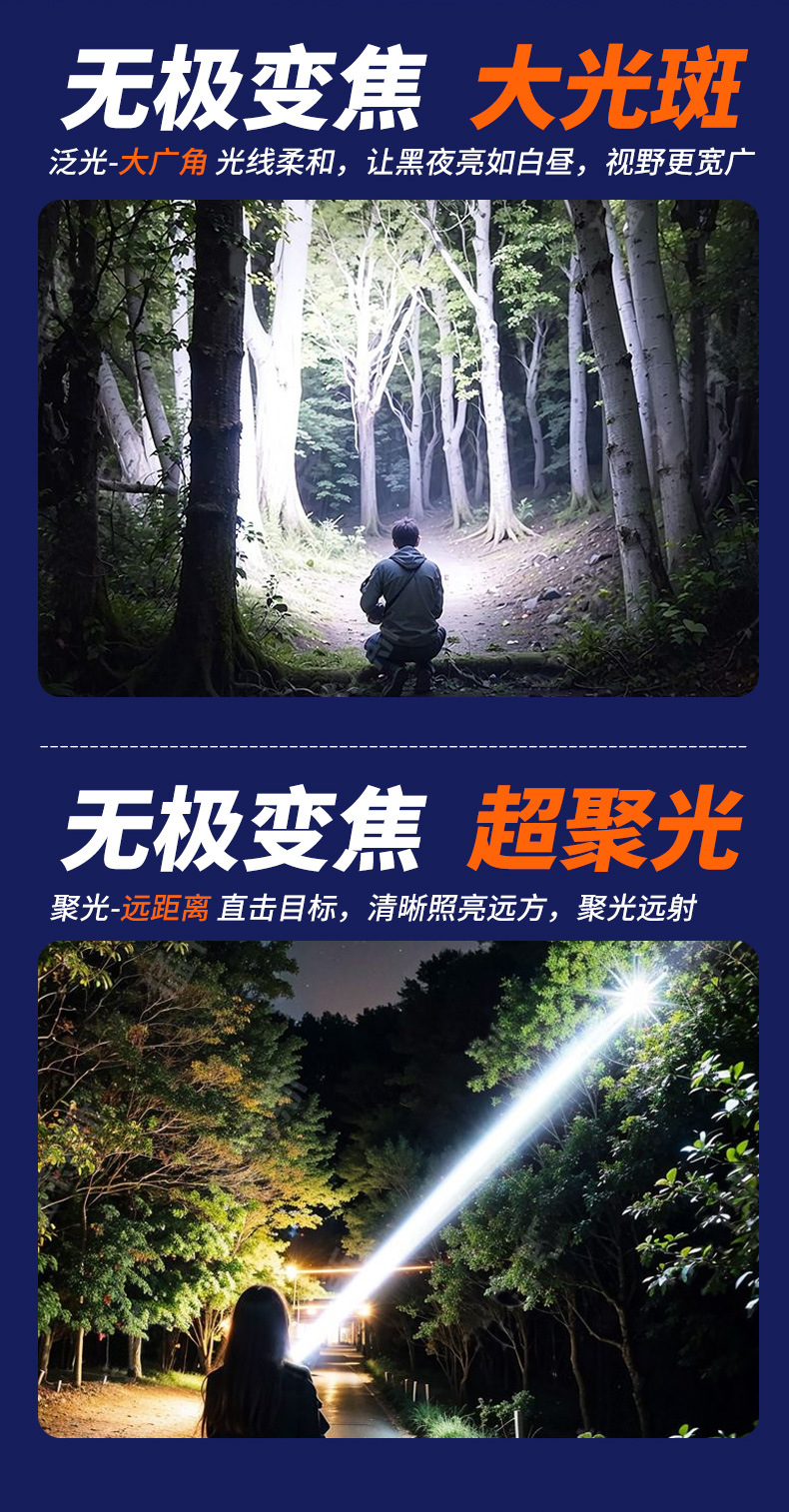 LED变焦数码显示强光手电筒可充电超亮户外应急照明灯激光灯现货