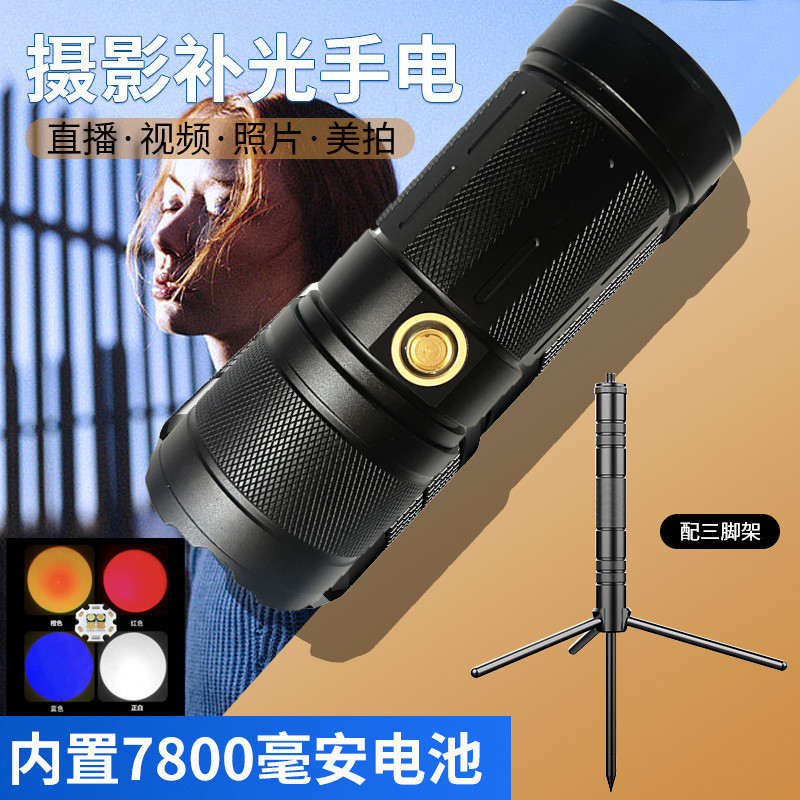 代发批发LED摄影照明手电筒氛围补光变焦照明灯rgb拍照四色手电筒