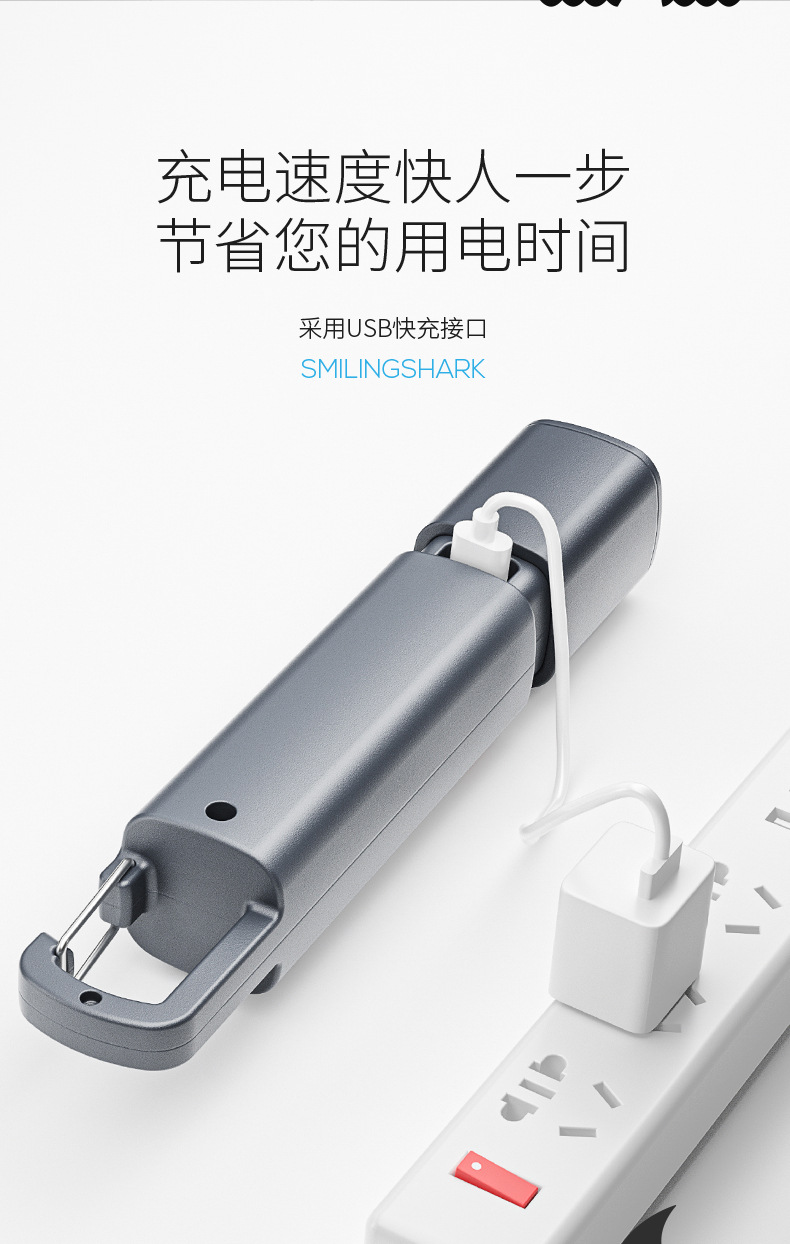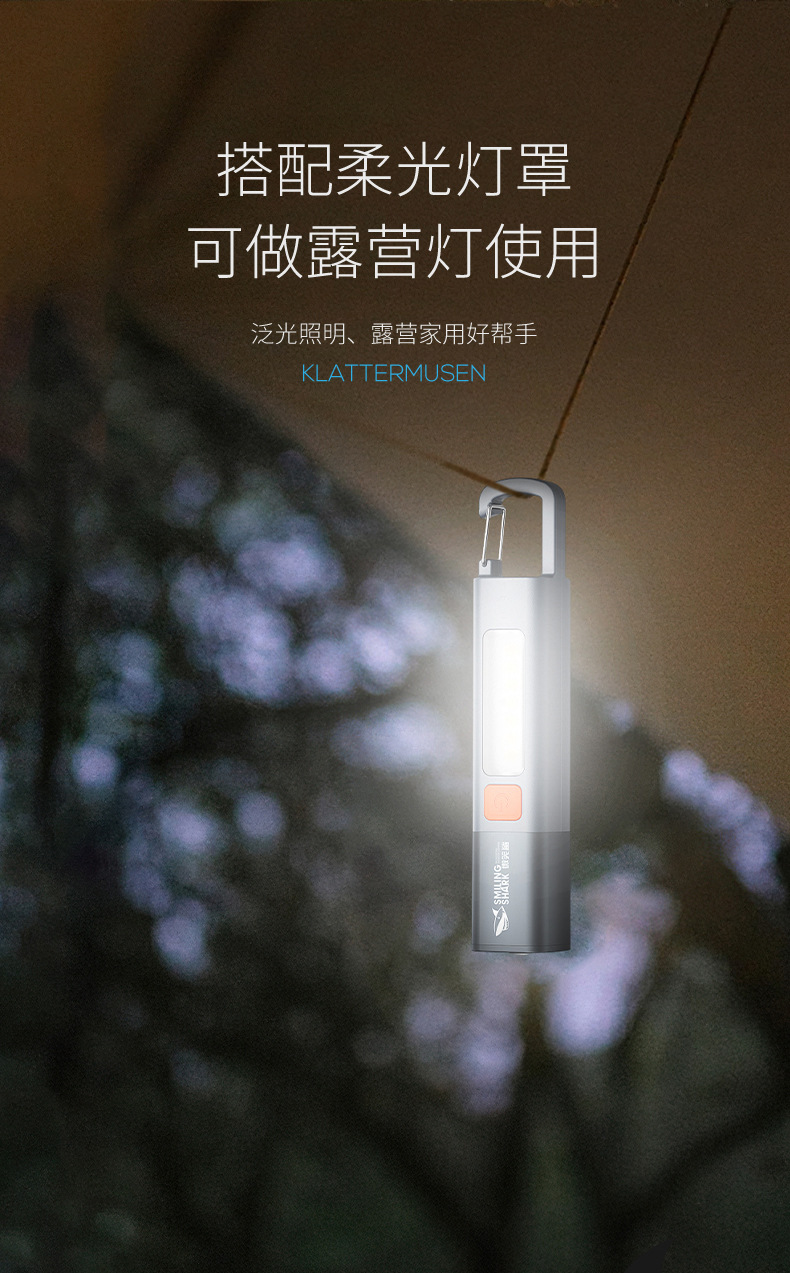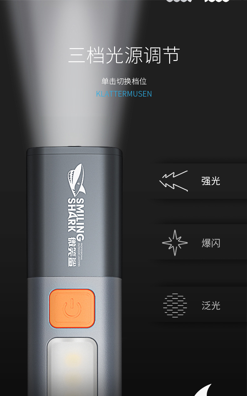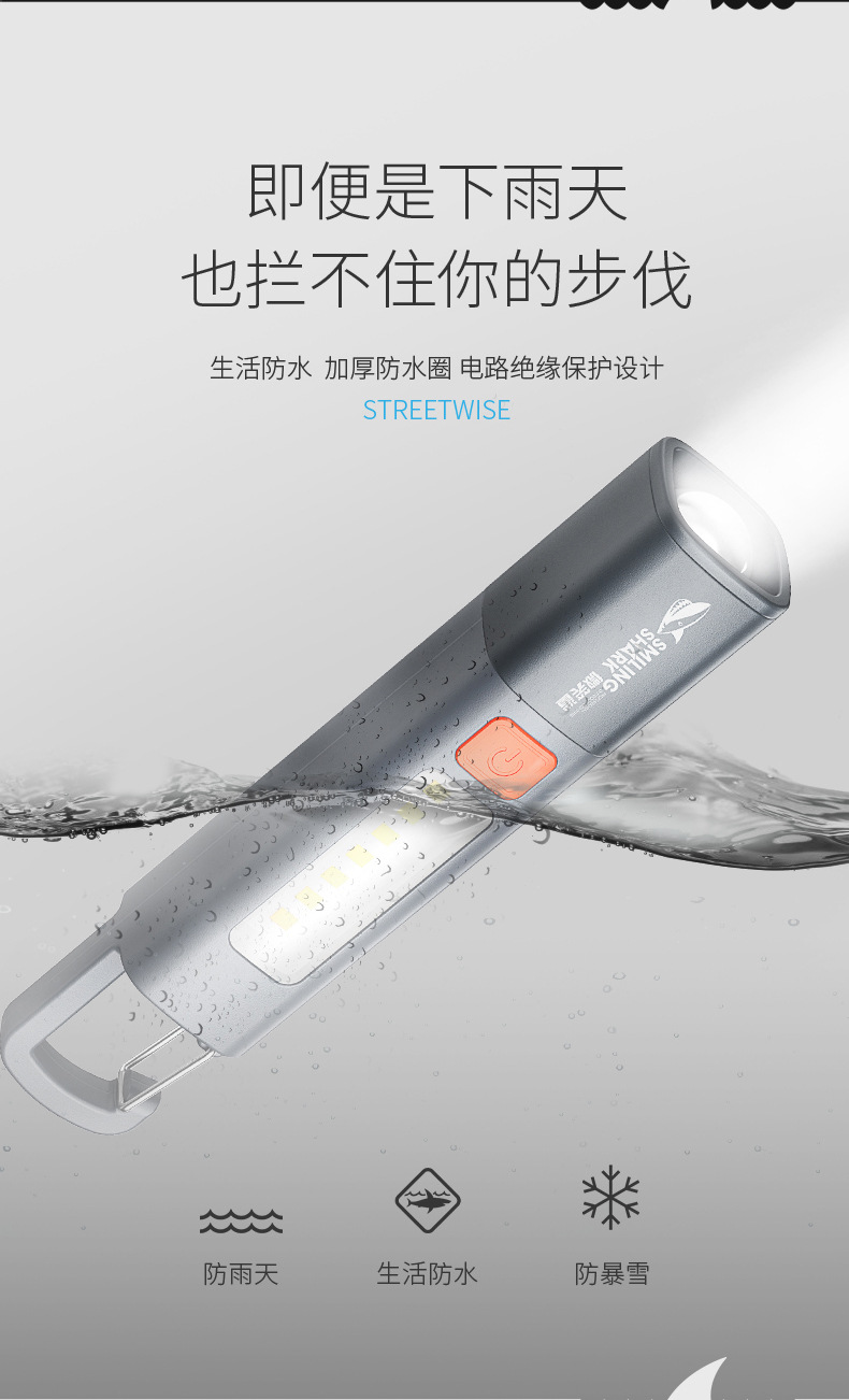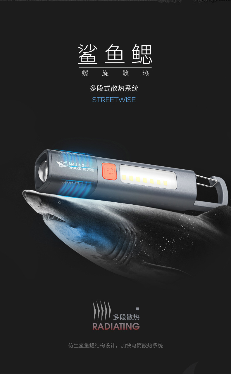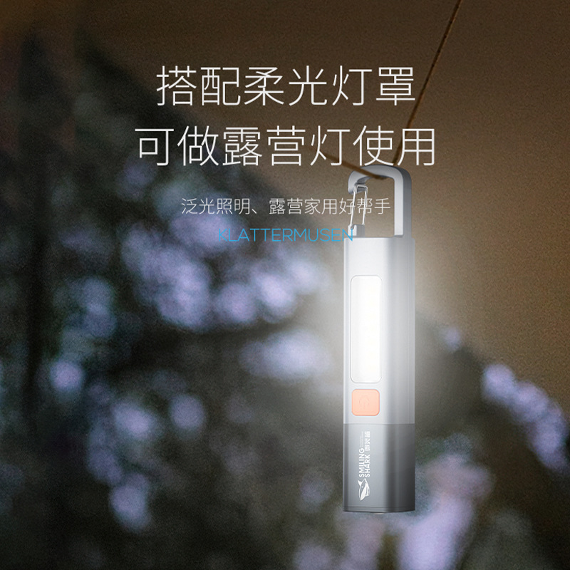 微笑鲨超亮户外便携照明手电筒迷你学生照明灯可充电挂钩露营小灯