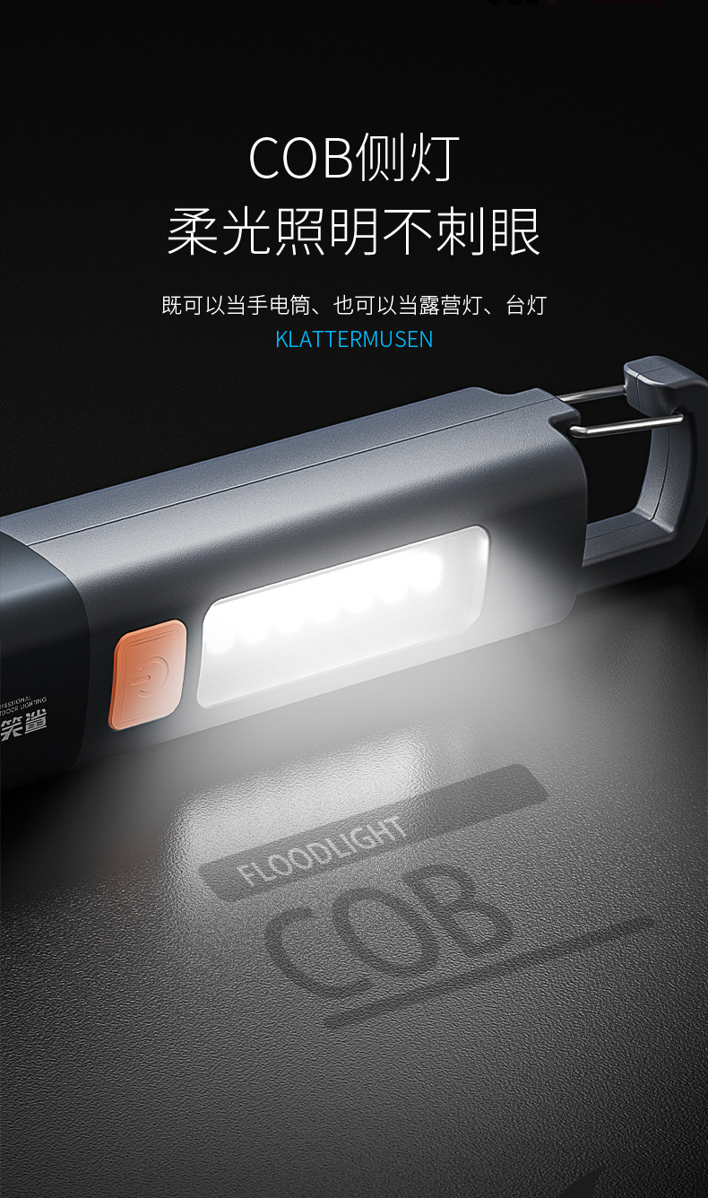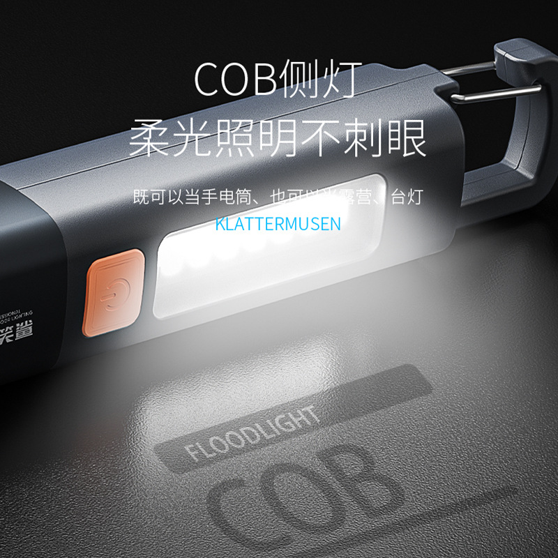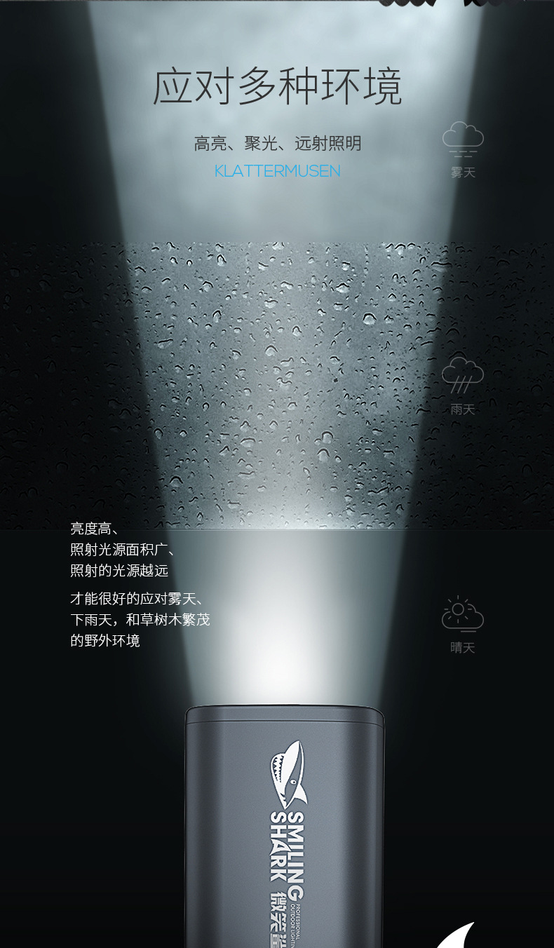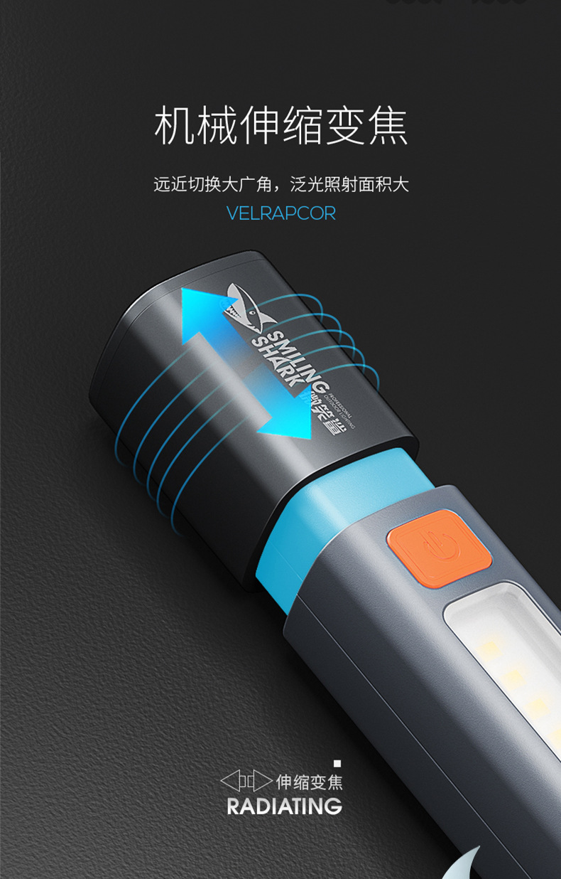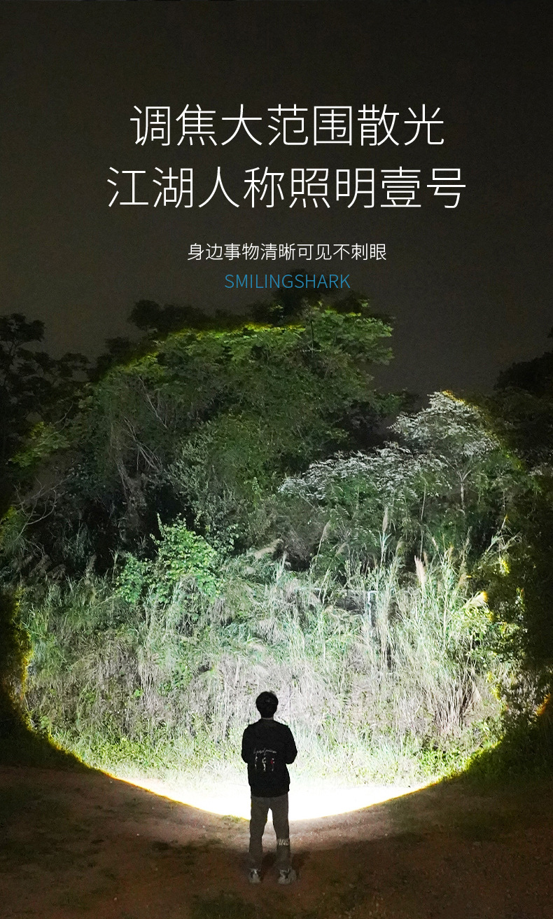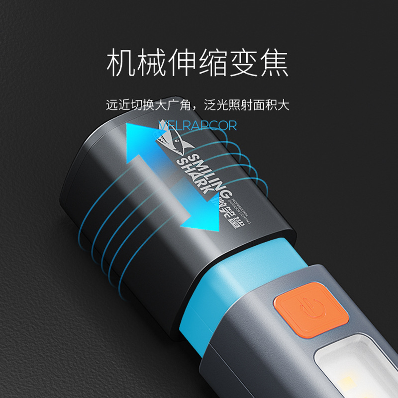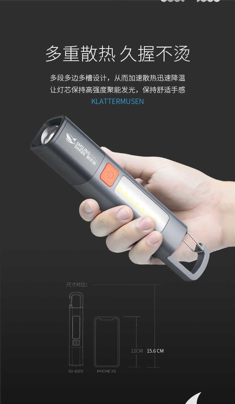 微笑鲨超亮户外便携照明手电筒迷你学生照明灯可充电挂钩露营小灯