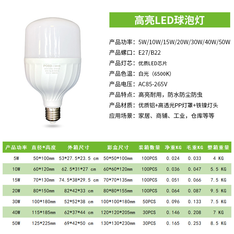 led灯泡超亮e27螺口家用室内节能白光塑包铝球泡灯单灯高亮光源