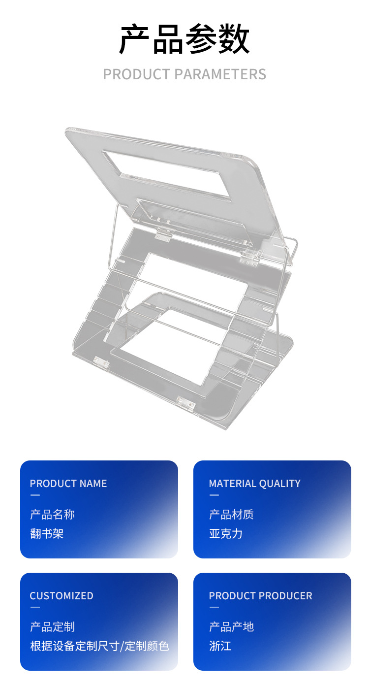 亚克力透明阅读架现代简约翻书架多规格颜色尺寸可加工源头厂家