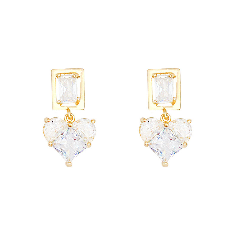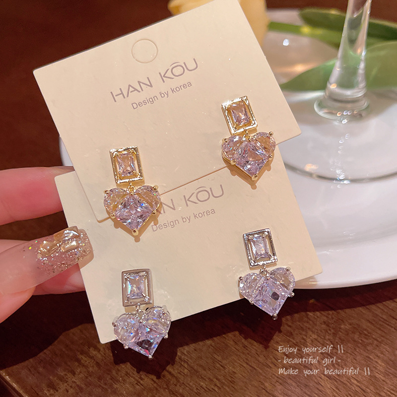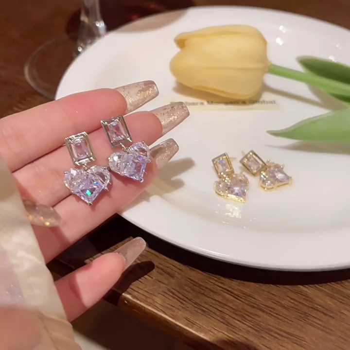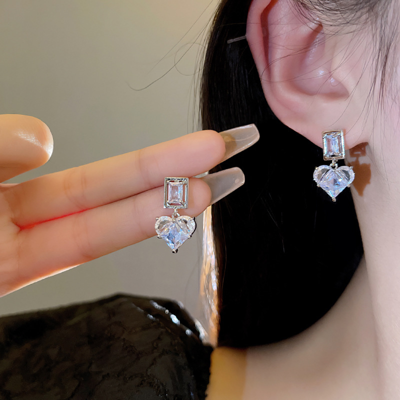 S925银针百搭气质高级感桃心耳钉耳饰小众精致锆石爱心耳环女