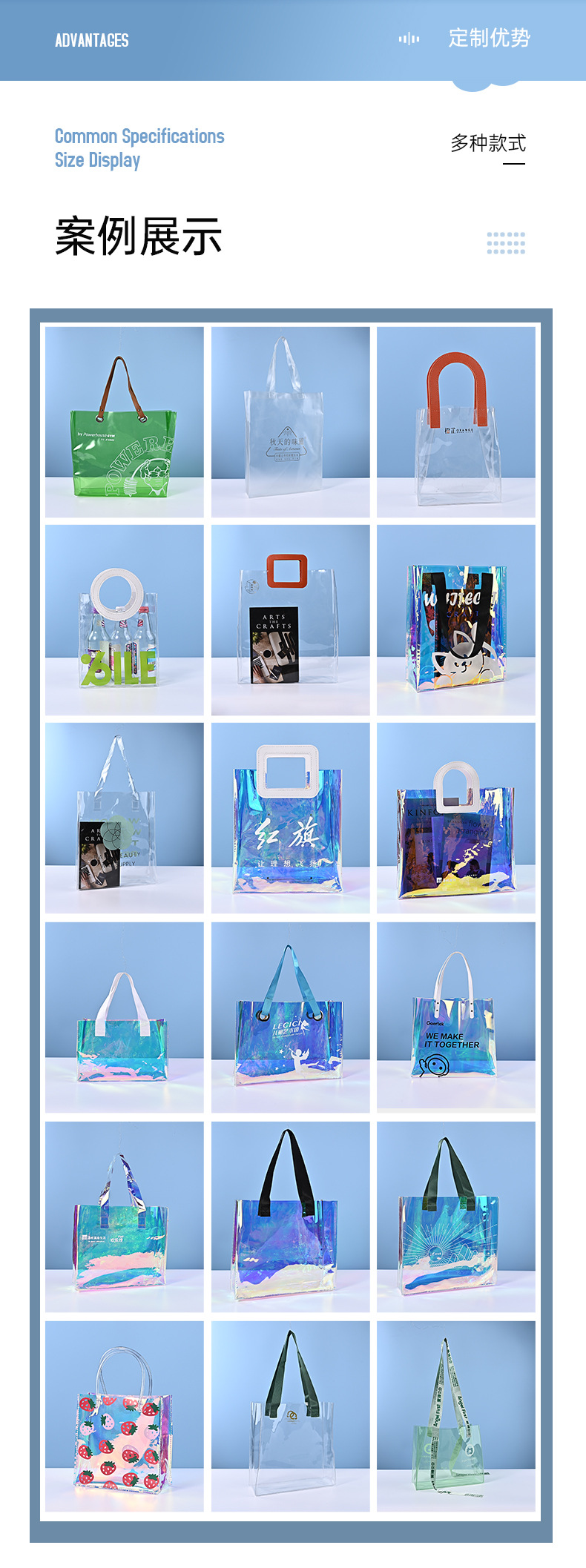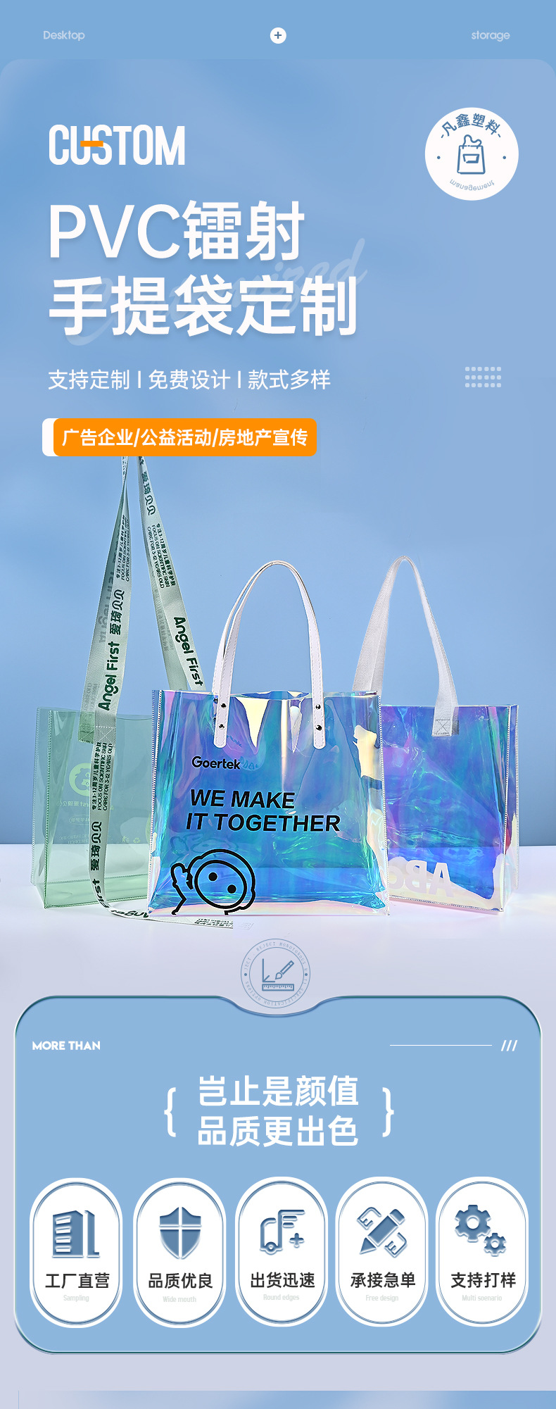 pvc镭射手提袋定制透明炫彩购物袋企业广告宣传礼品包装果冻包