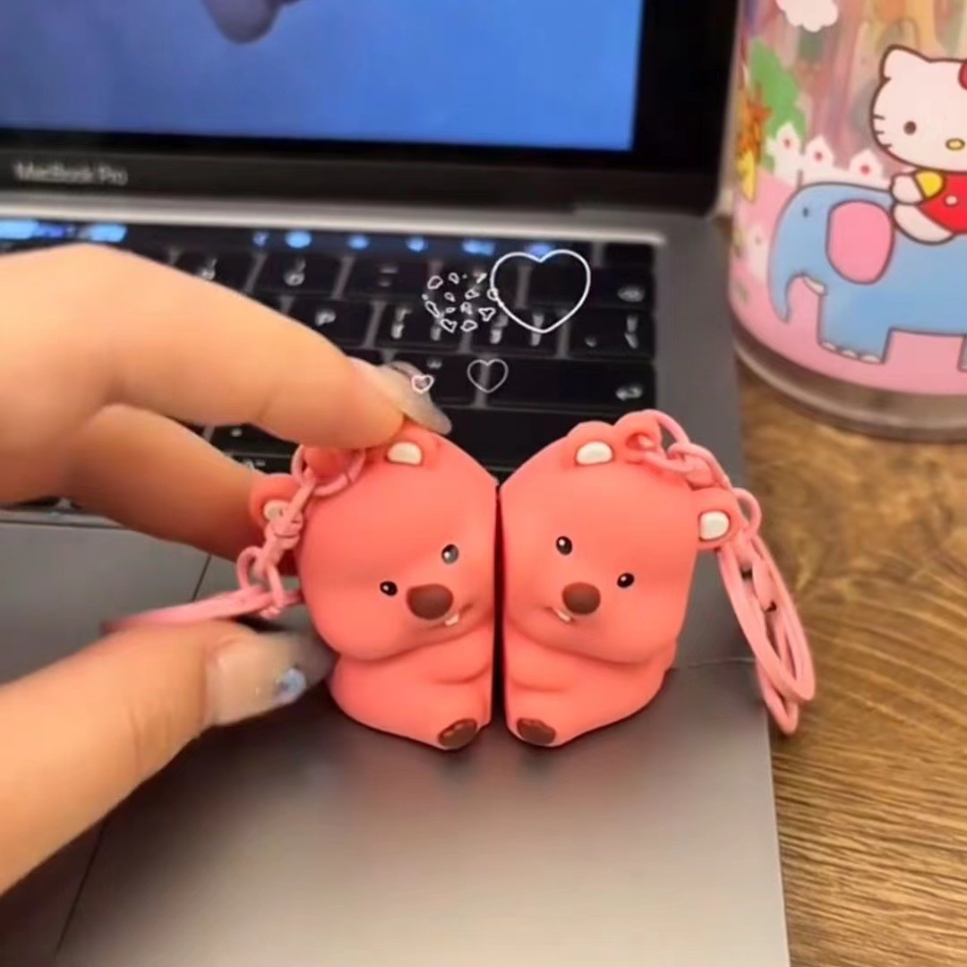 露比不离不弃可爱海狸磁吸钥匙扣高颜值情侣书包卡通和你贴贴挂件