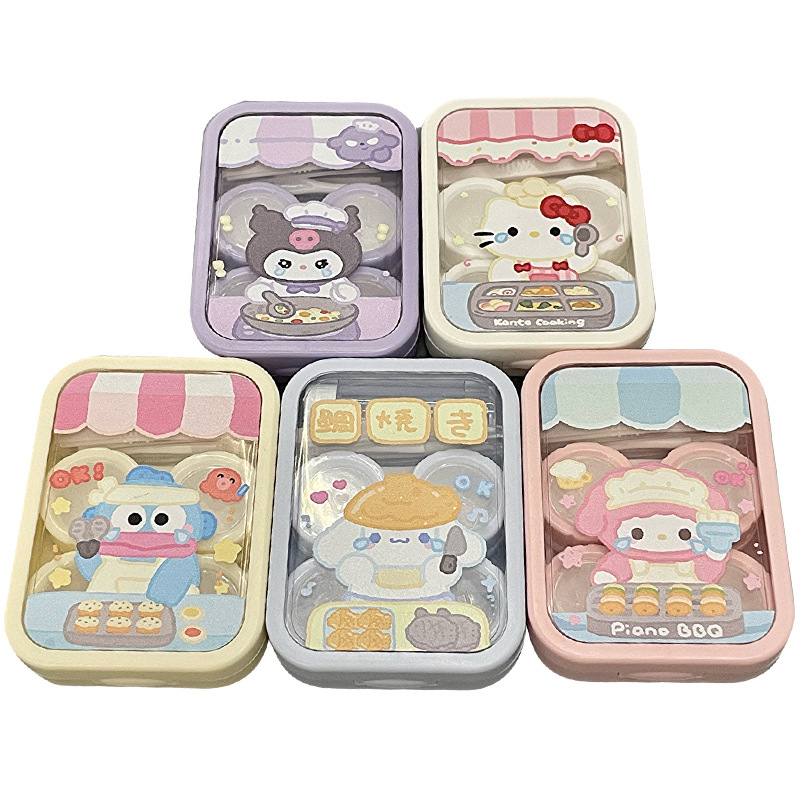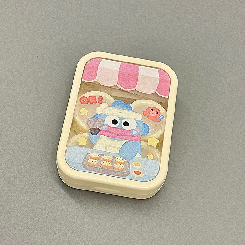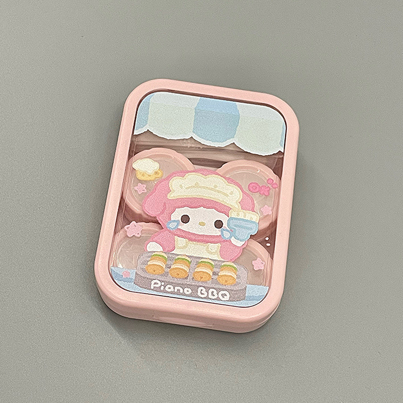 美瞳盒可爱美食卡通透明隐形眼镜伴侣盒护理盒两副装收纳盒