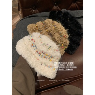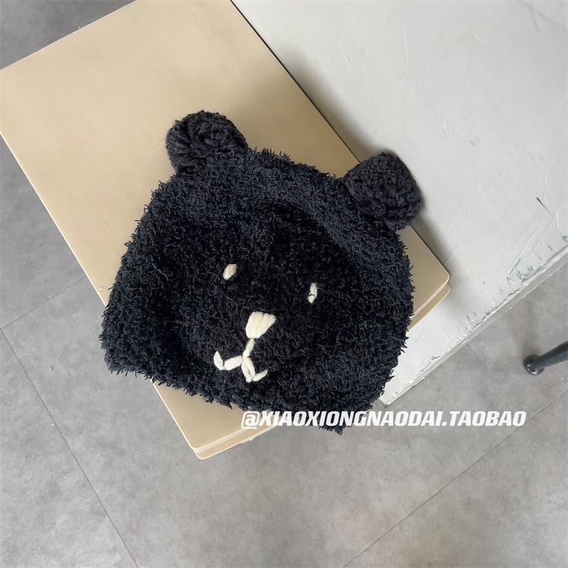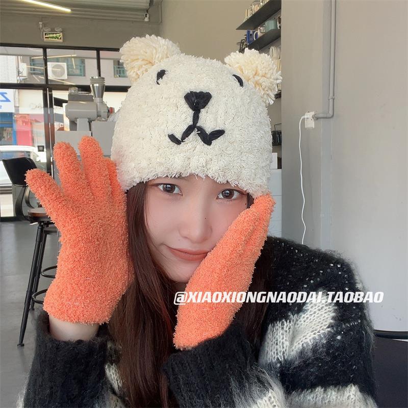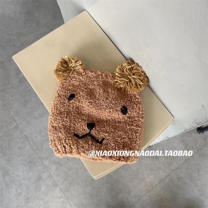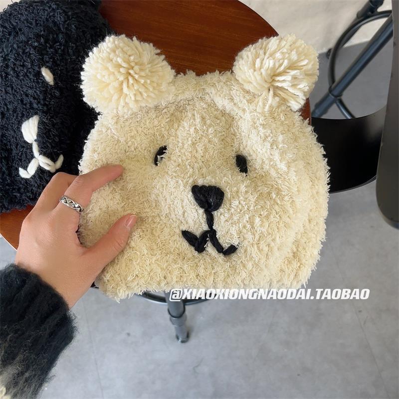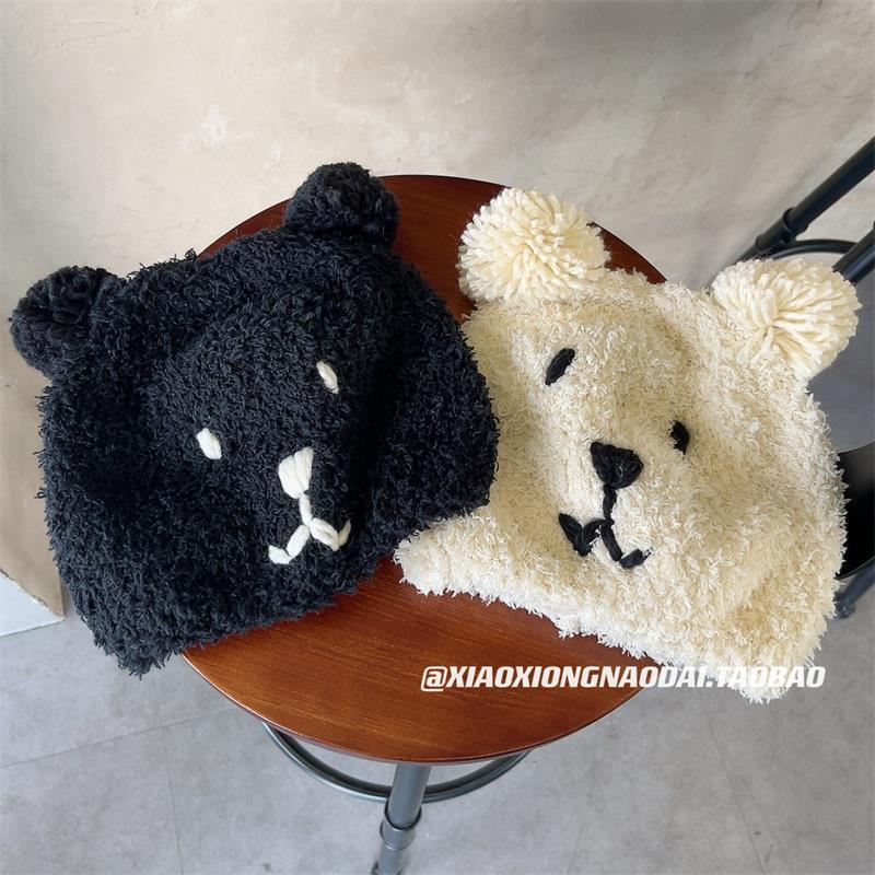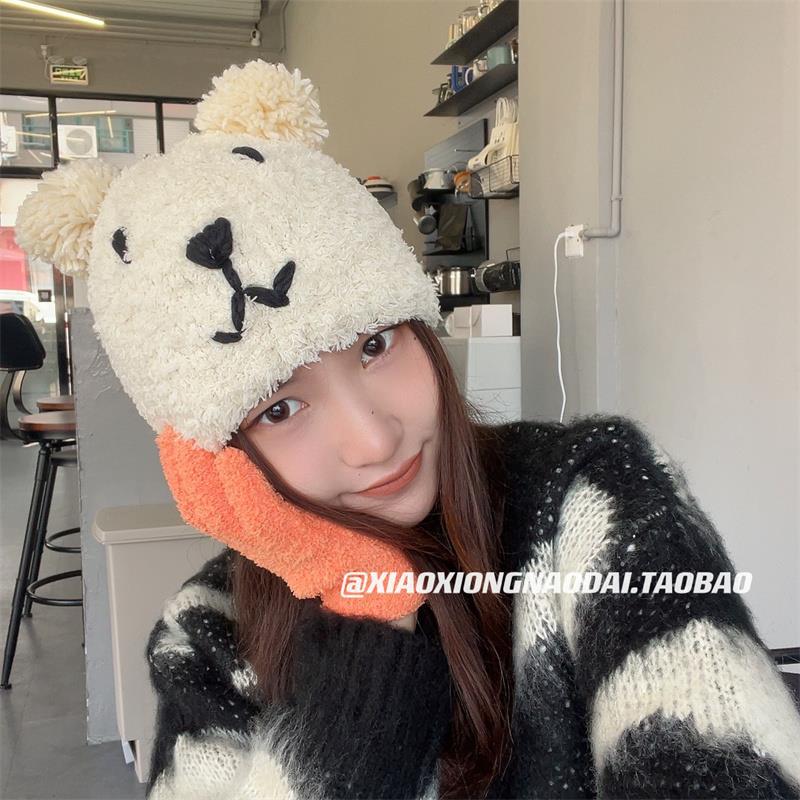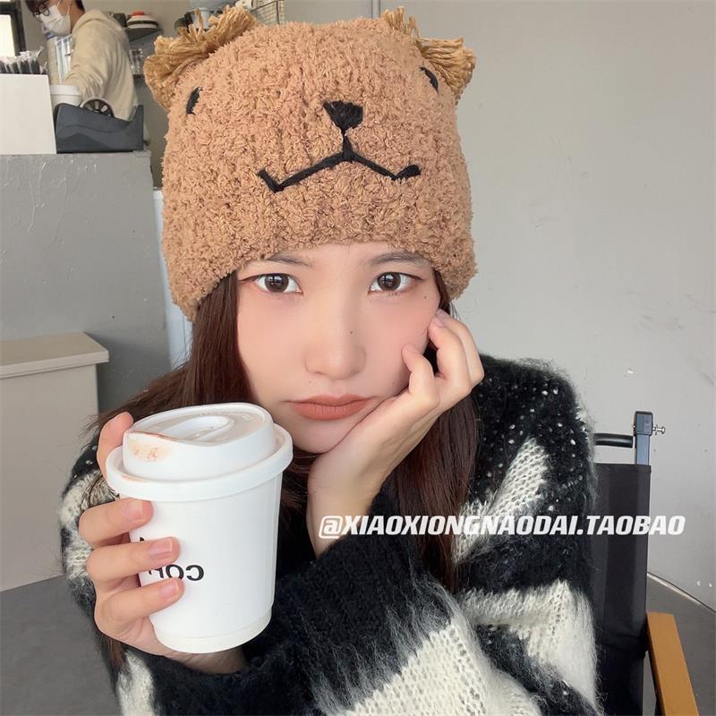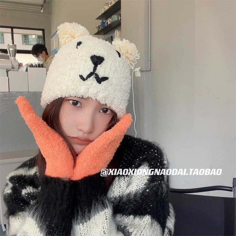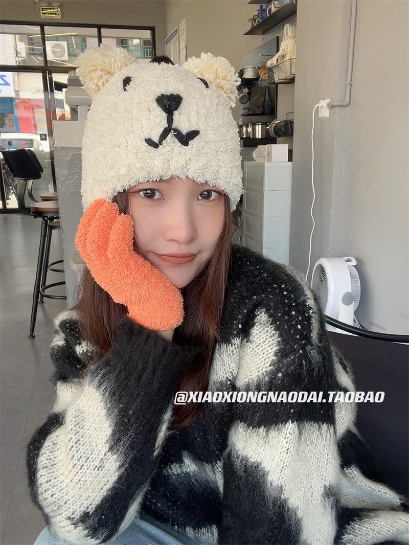 明星同款小熊可爱羊羔绒针织帽保暖护耳冬季帽子ins可爱毛线帽