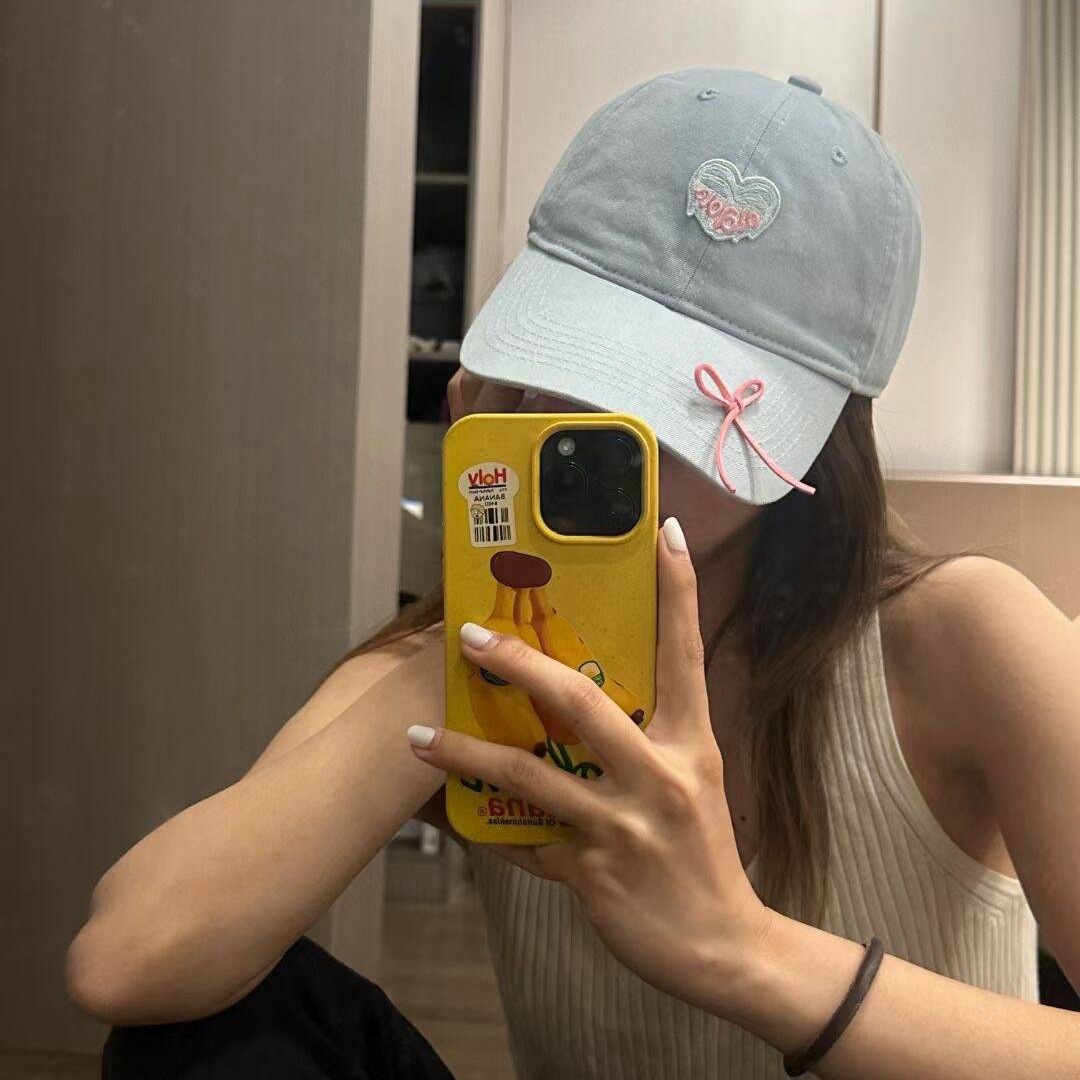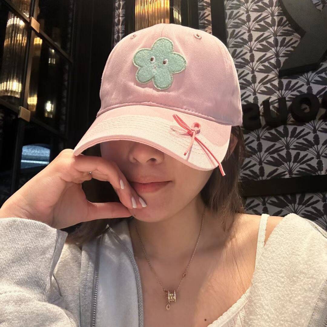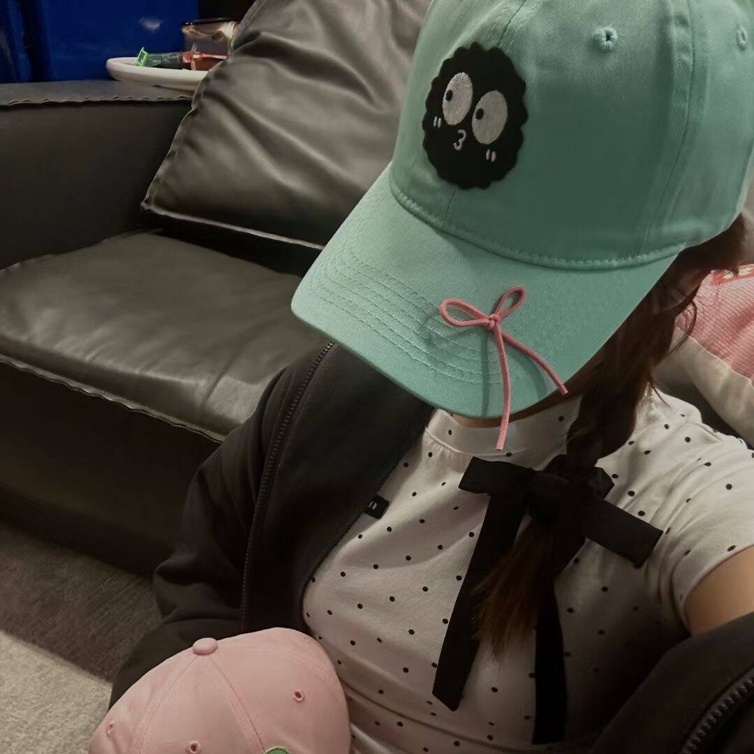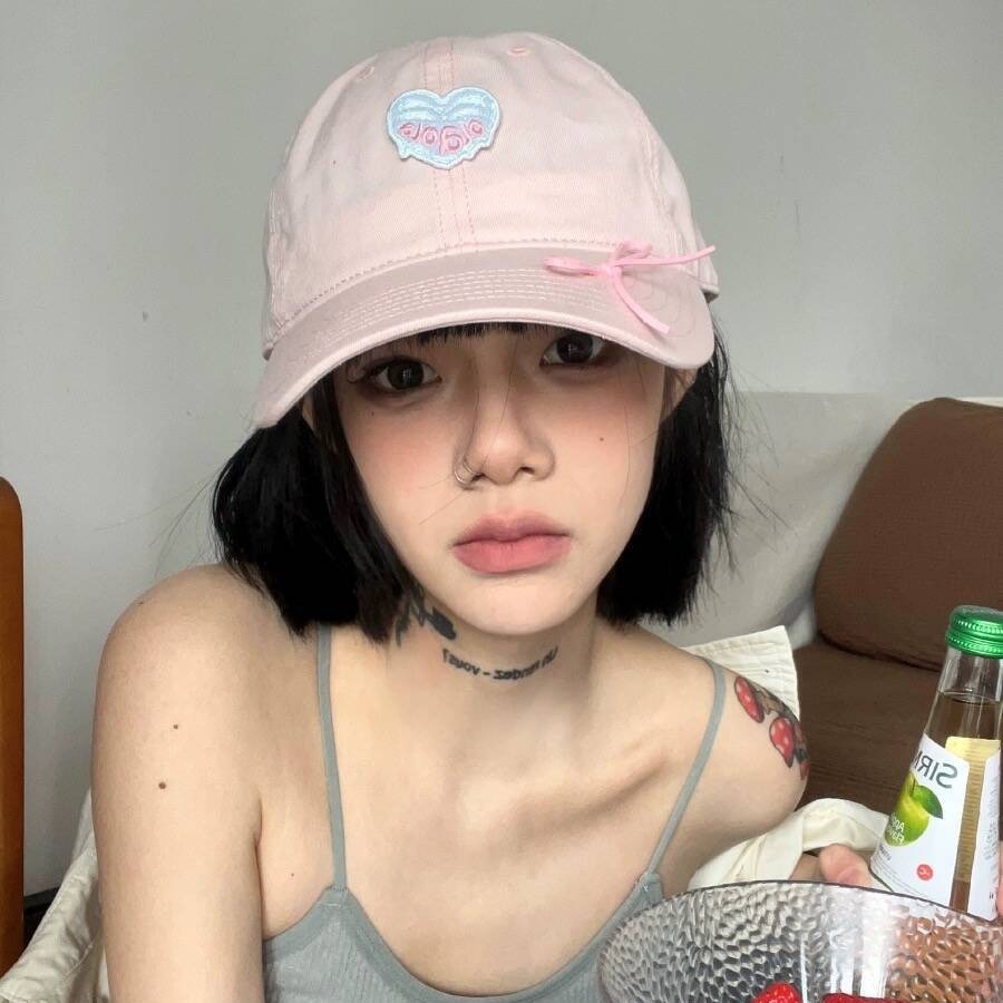 爱心刺绣鸭舌帽女蝴蝶结软妹棒球帽显脸小薄荷绿帽子
