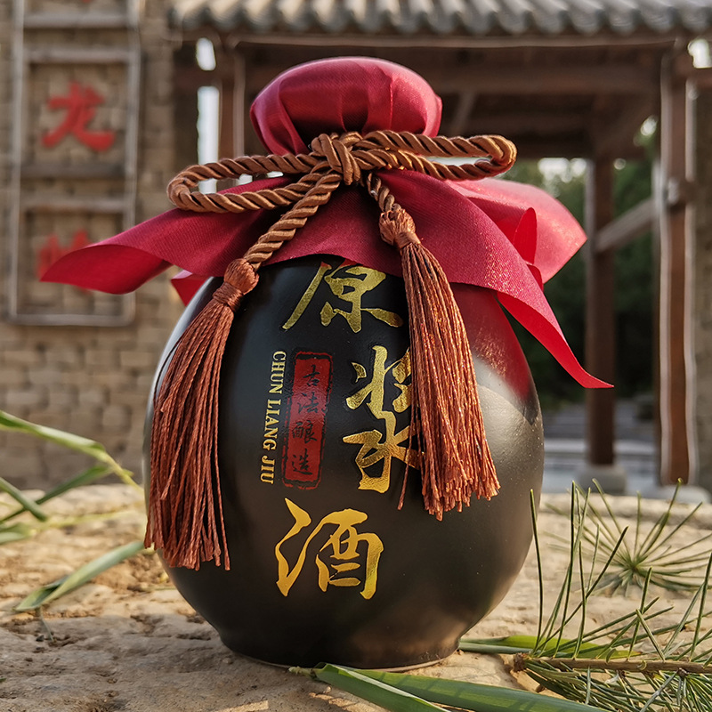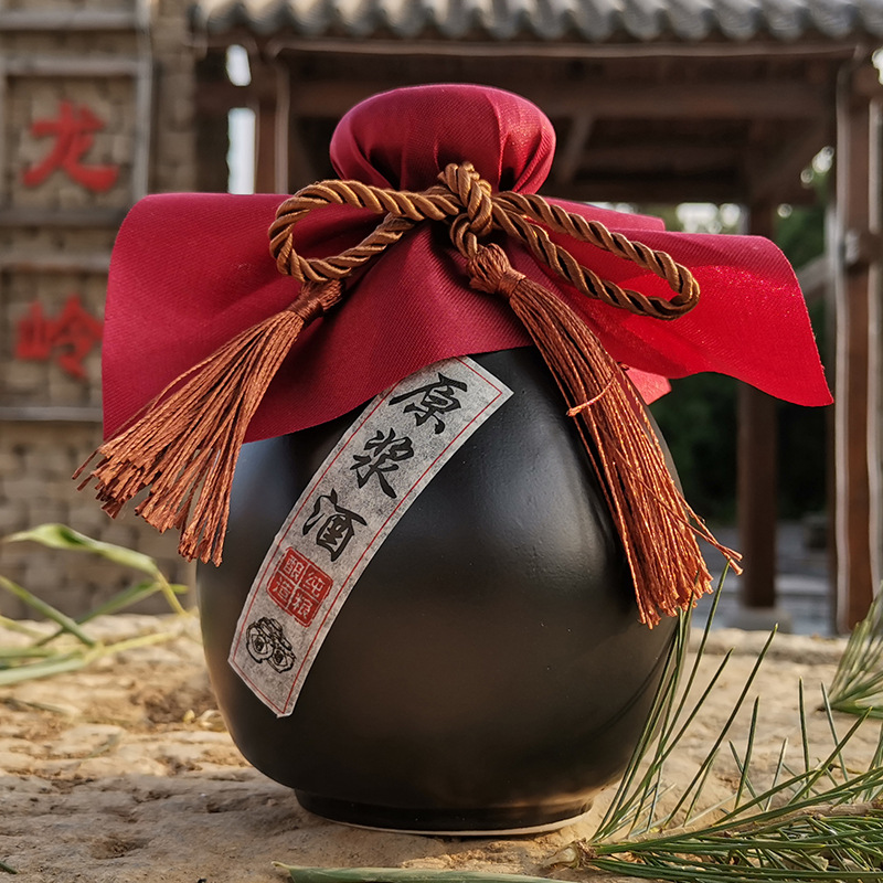 空酒瓶一斤白酒瓶中式复古小酒壶散酒玻璃酒坛黑色陶瓷酒壶小酒罐