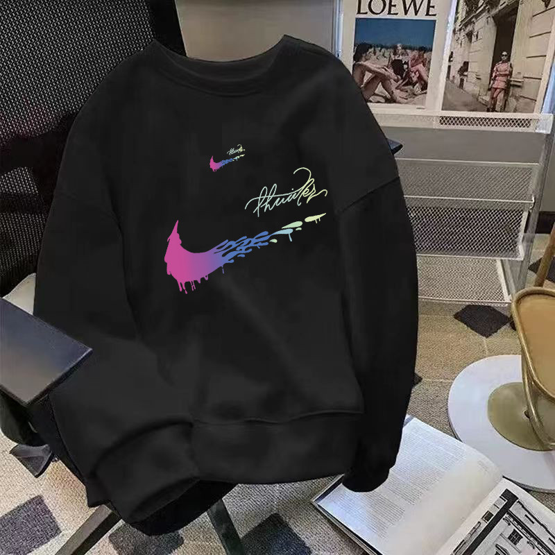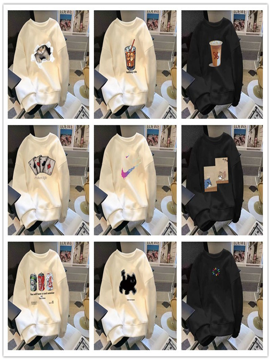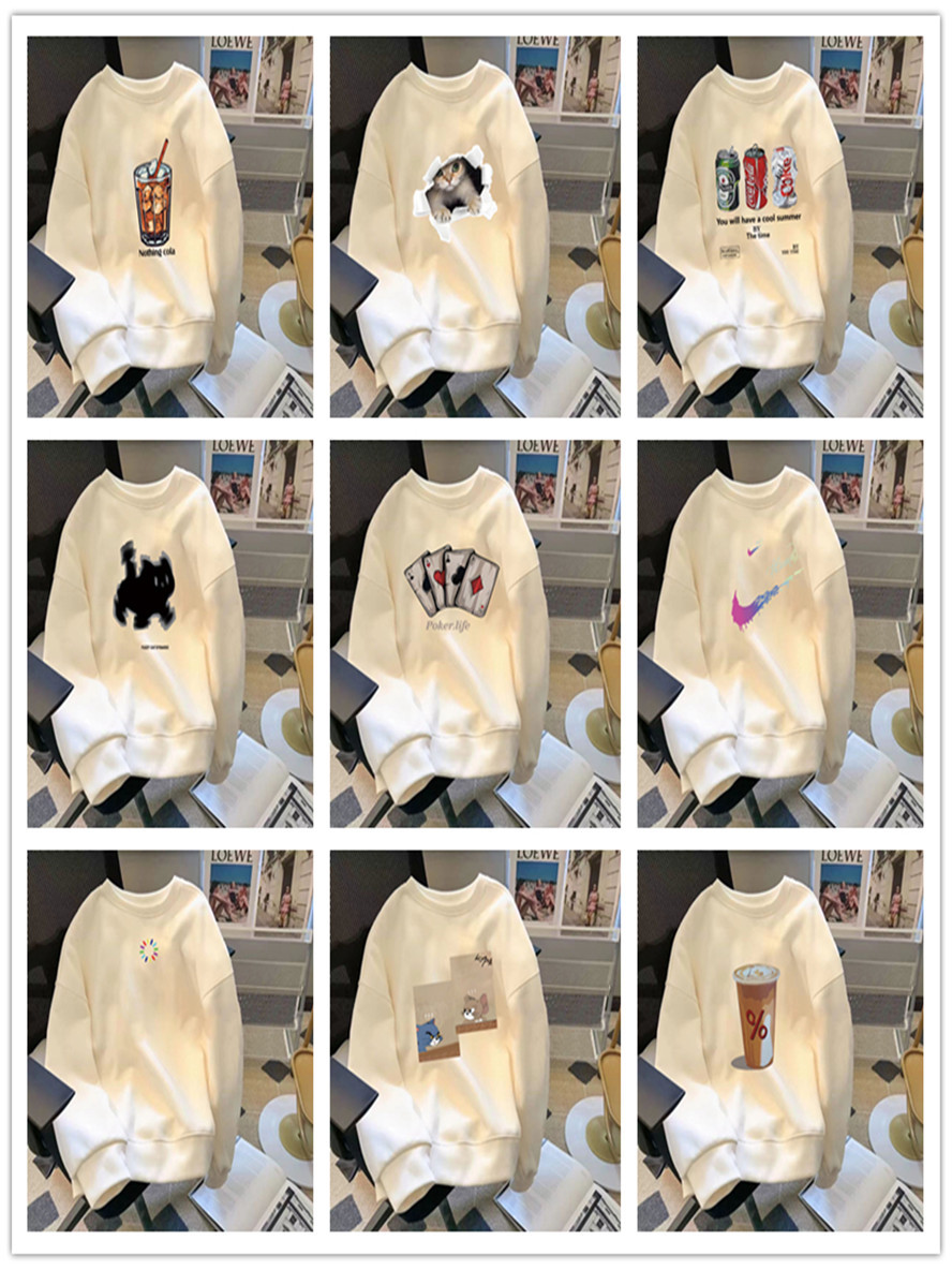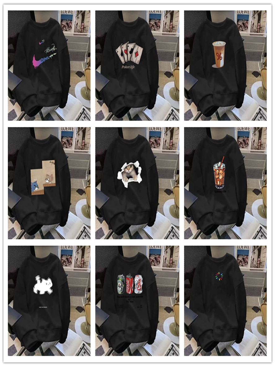 潮牌网红款纯棉毛圈棉卫衣新款男士宽松大码圆领印花运动打底上衣