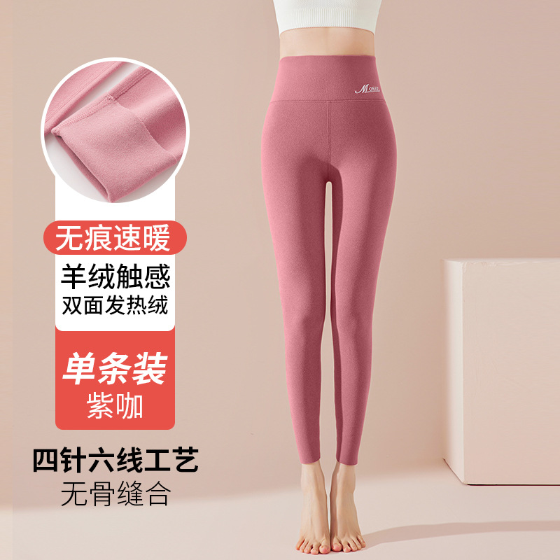 高腰德绒秋裤女秋冬季加绒加厚内穿发热大码无痕线裤保暖裤打底裤