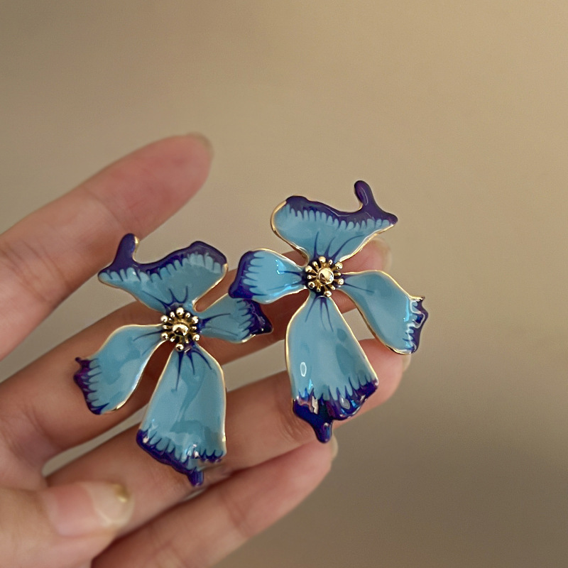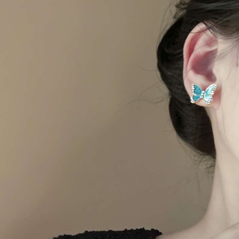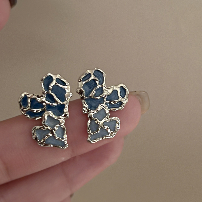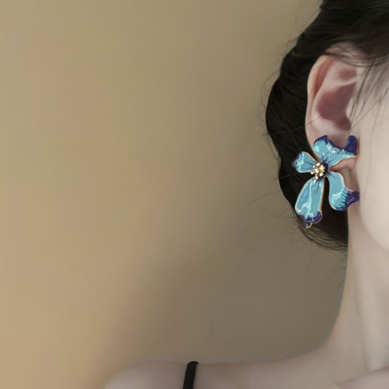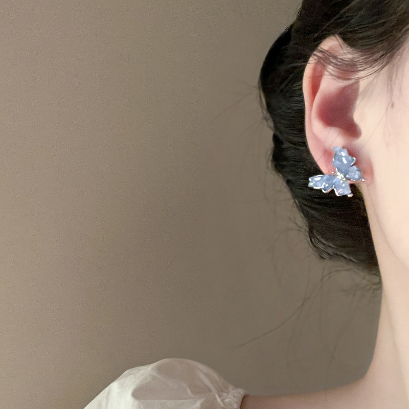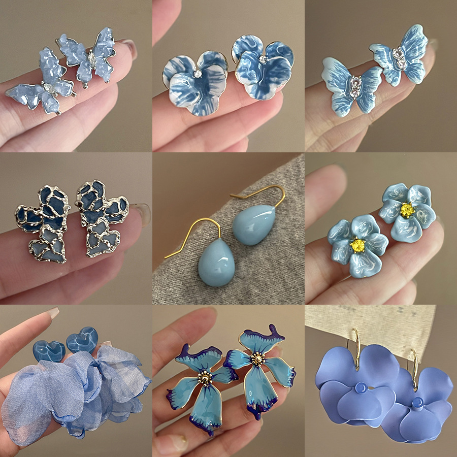 银针雾霾蓝色渐变滴油花朵蝴蝶爱心耳环气质耳钉小清新高级感耳饰
