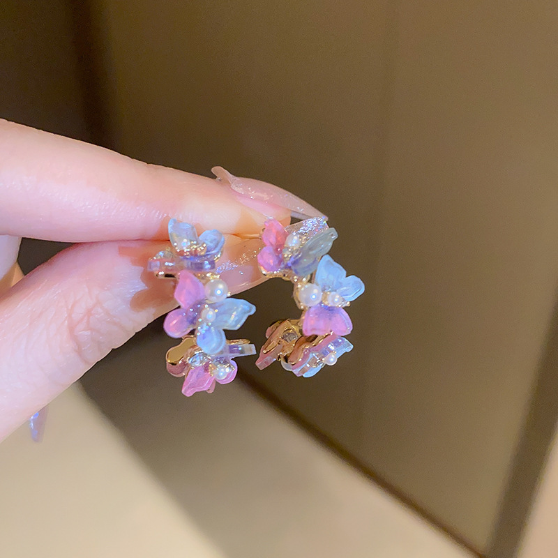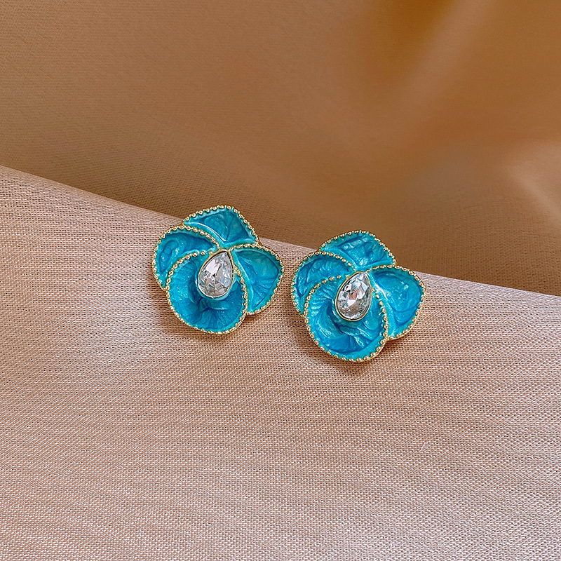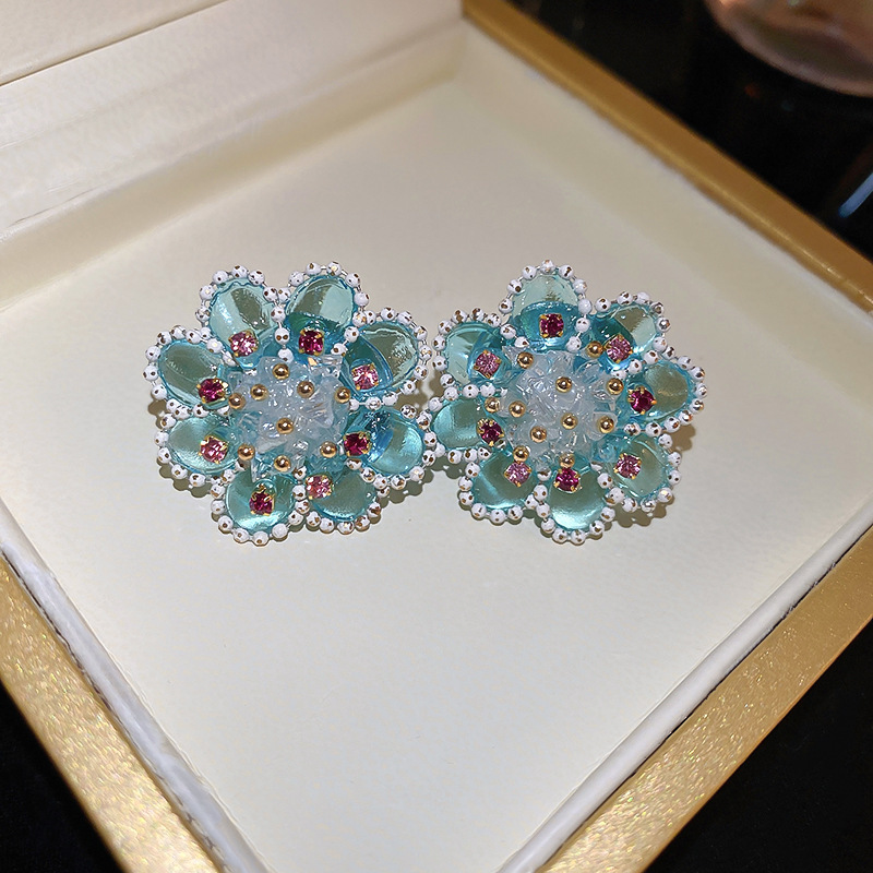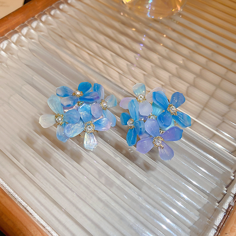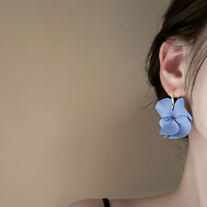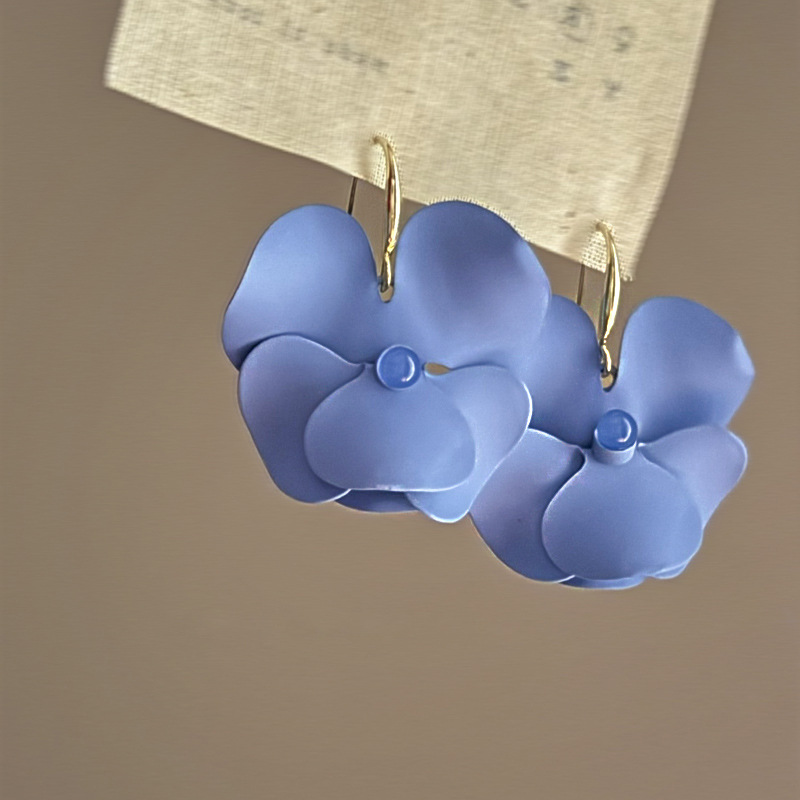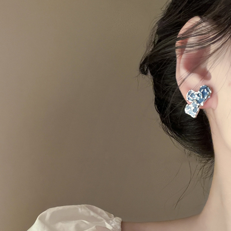 银针雾霾蓝色渐变滴油花朵蝴蝶爱心耳环气质耳钉小清新高级感耳饰