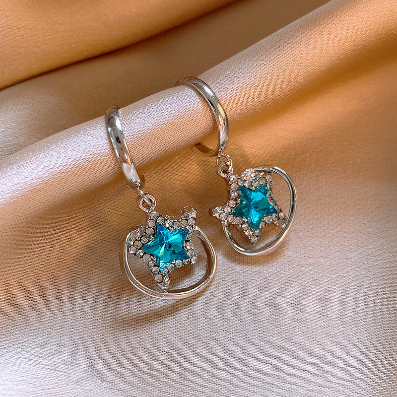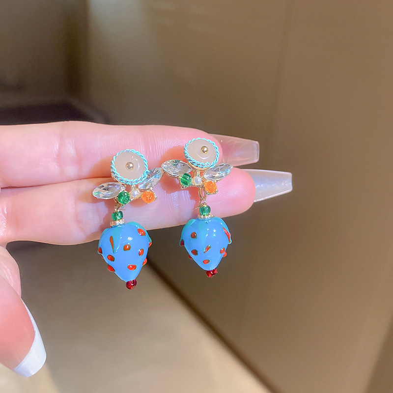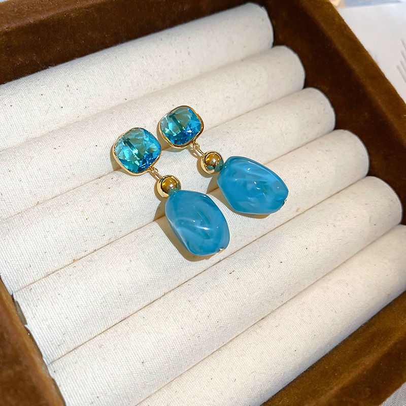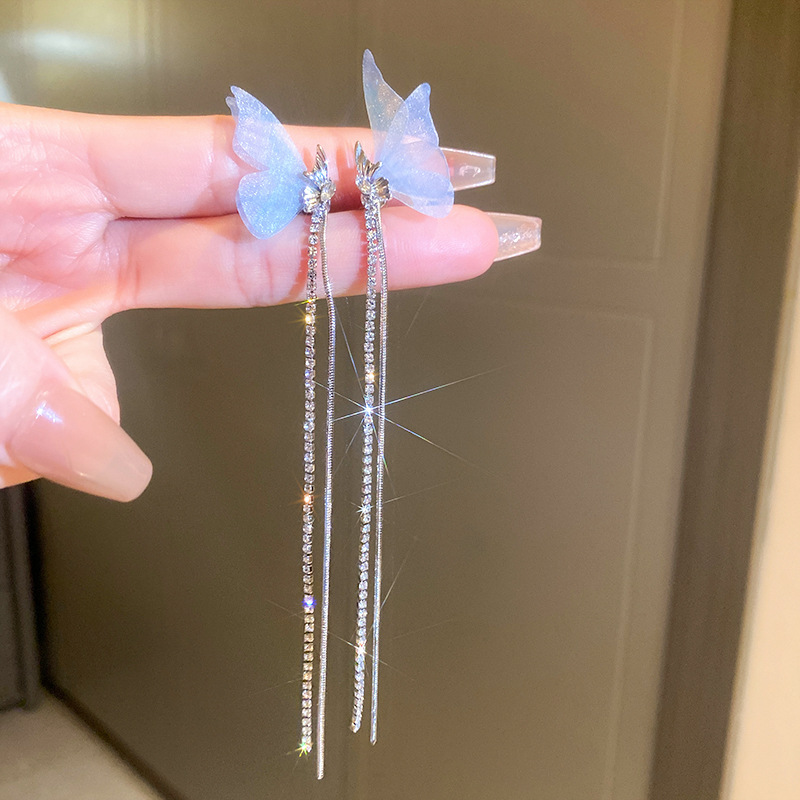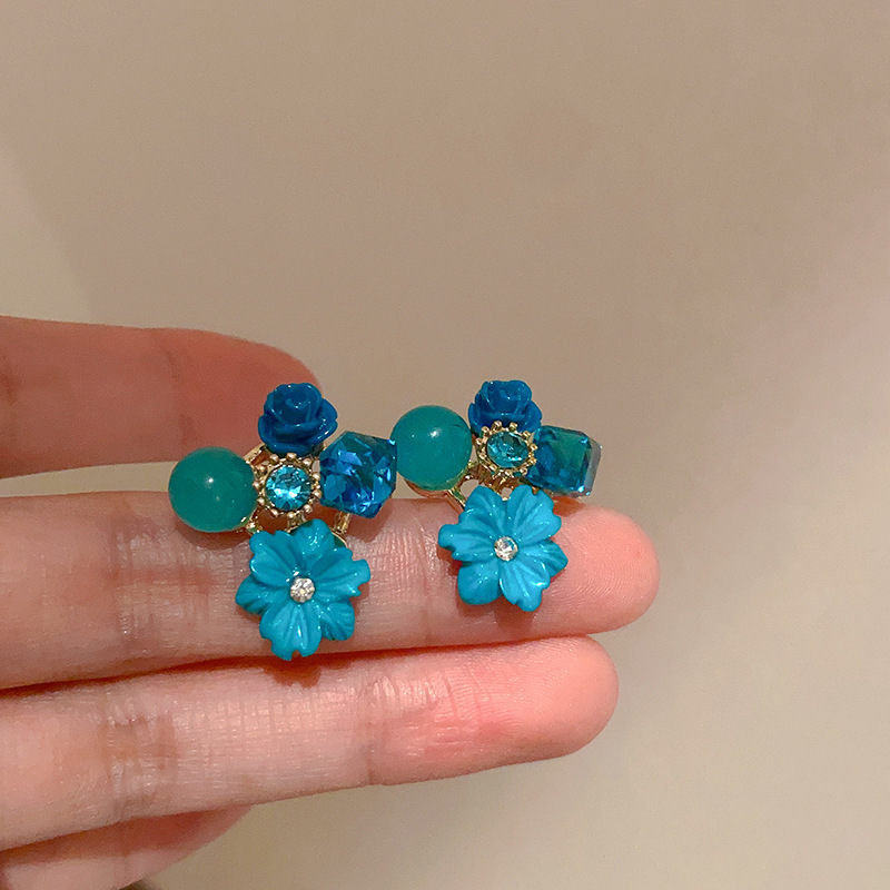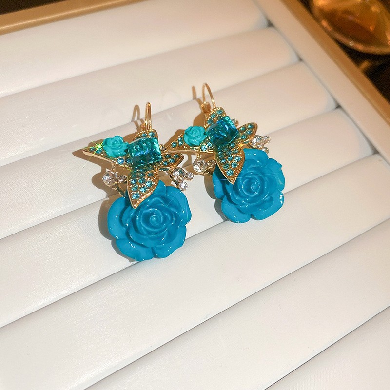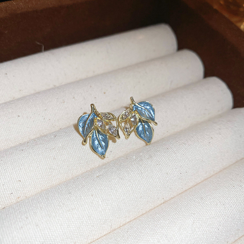 银针雾霾蓝色渐变滴油花朵蝴蝶爱心耳环气质耳钉小清新高级感耳饰