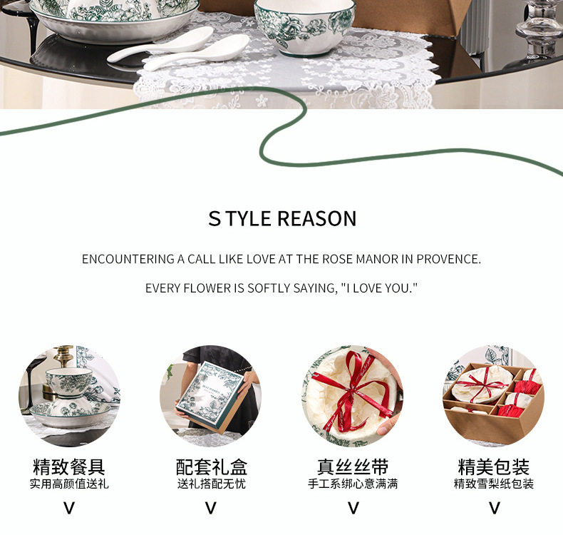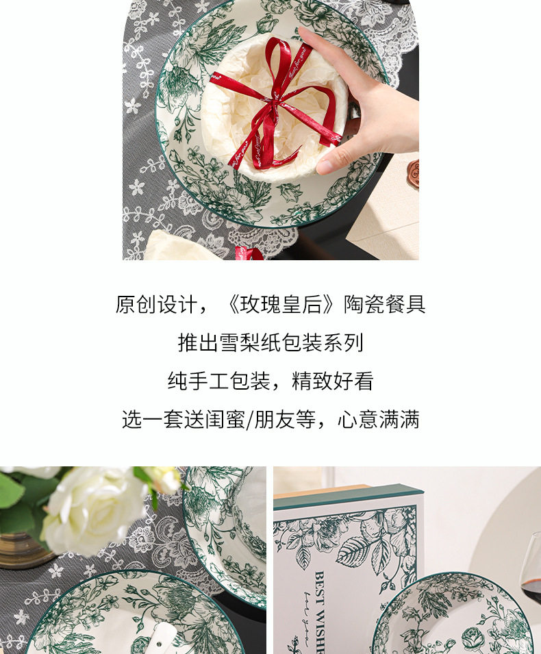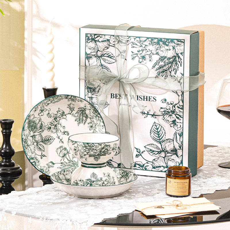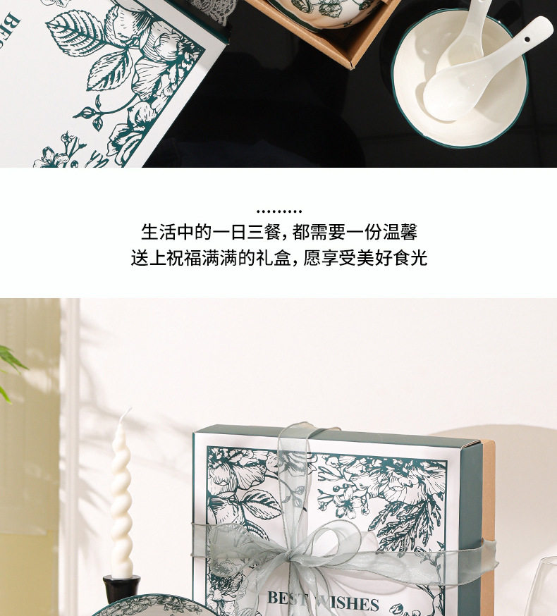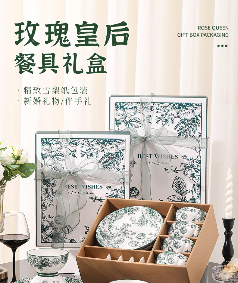 2024新款轻奢中式碗盘碟勺子陶瓷餐具套装乔迁送礼结婚礼品礼盒装