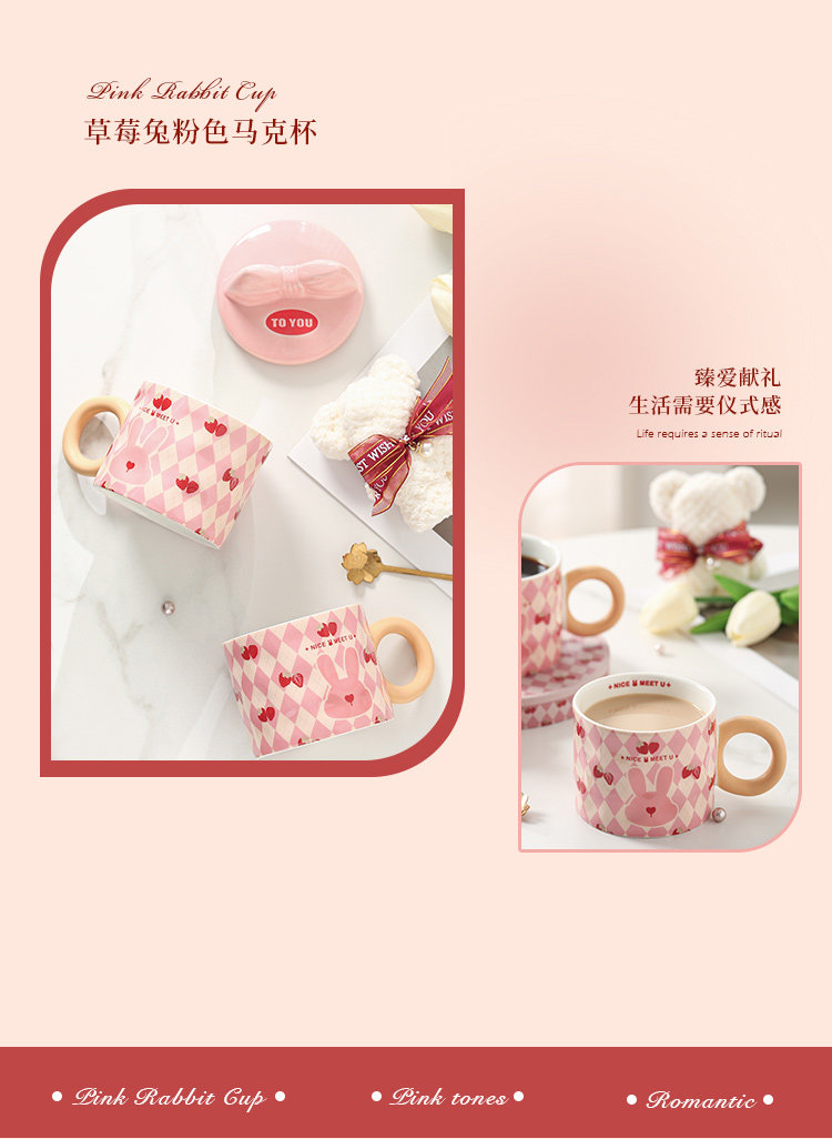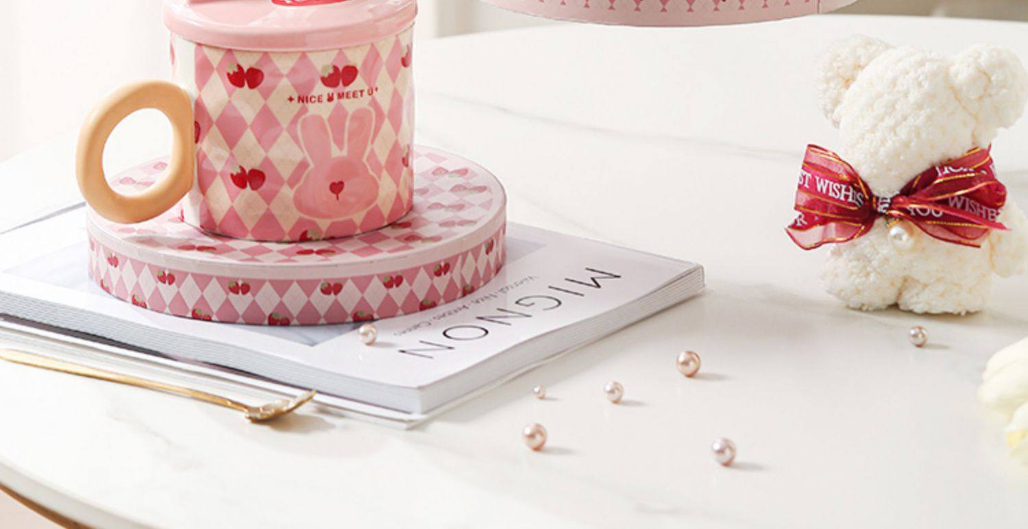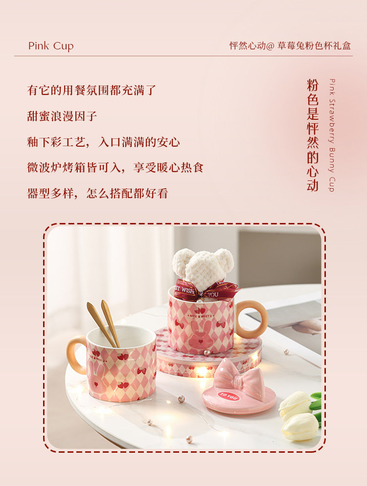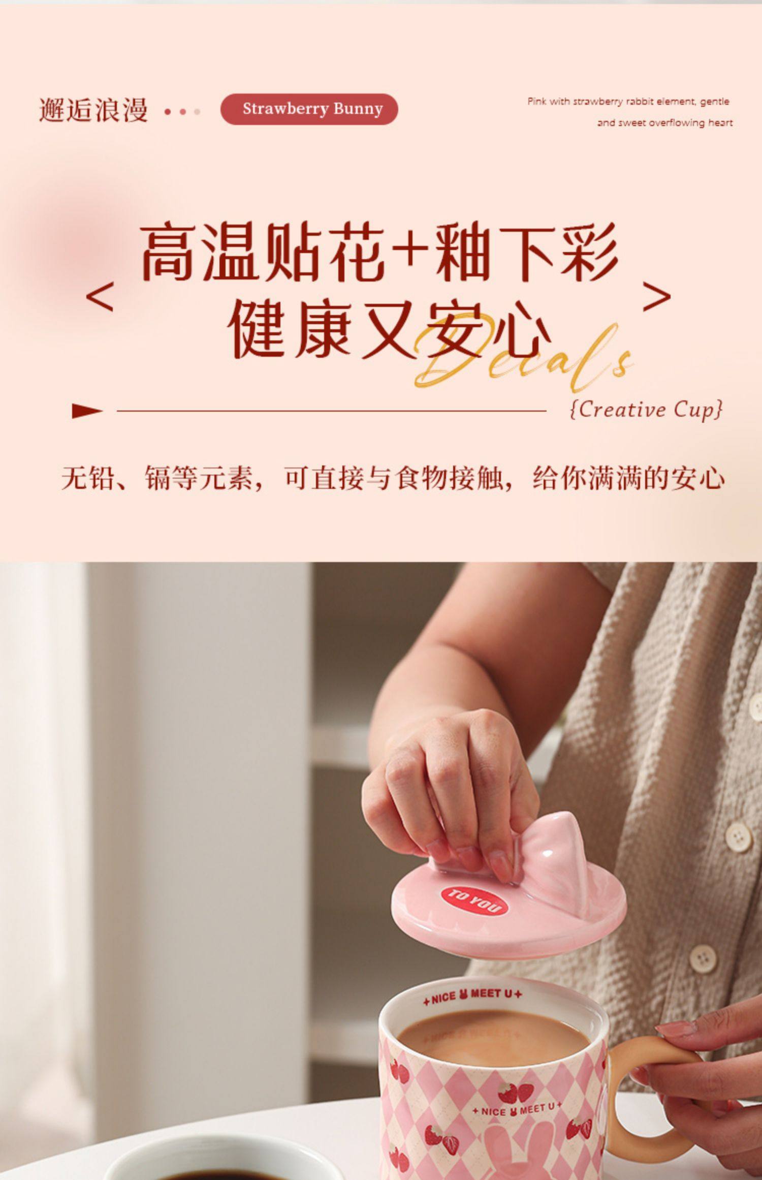 2024新款粉嫩少女心马克杯带盖高颜值家用陶瓷水杯子女生生日礼物