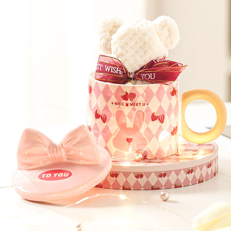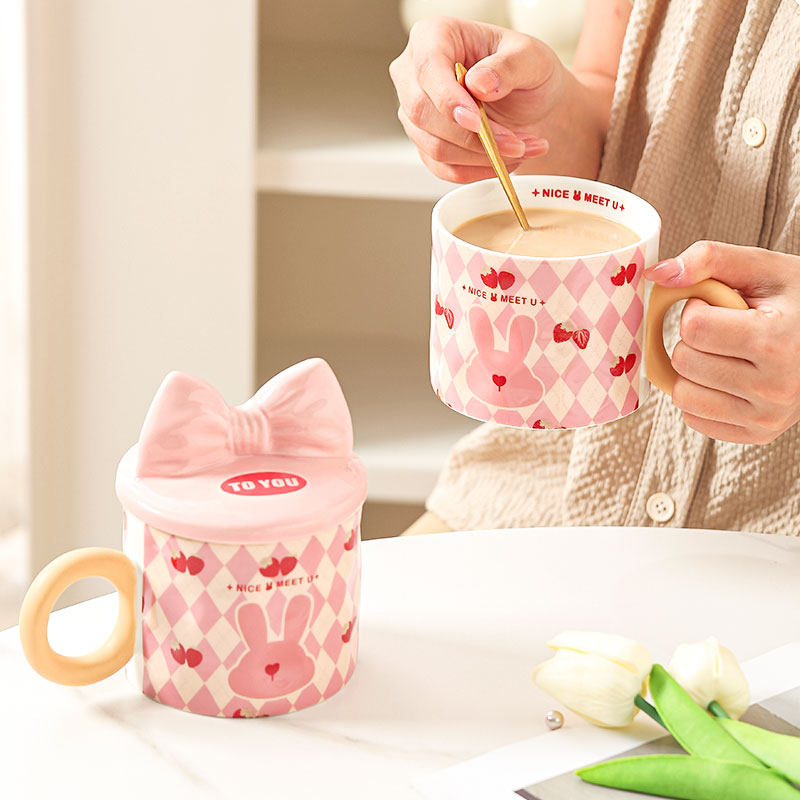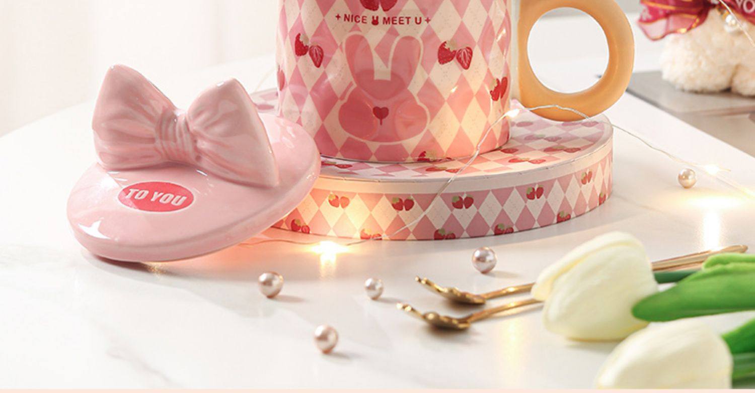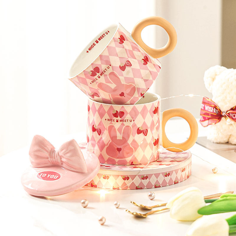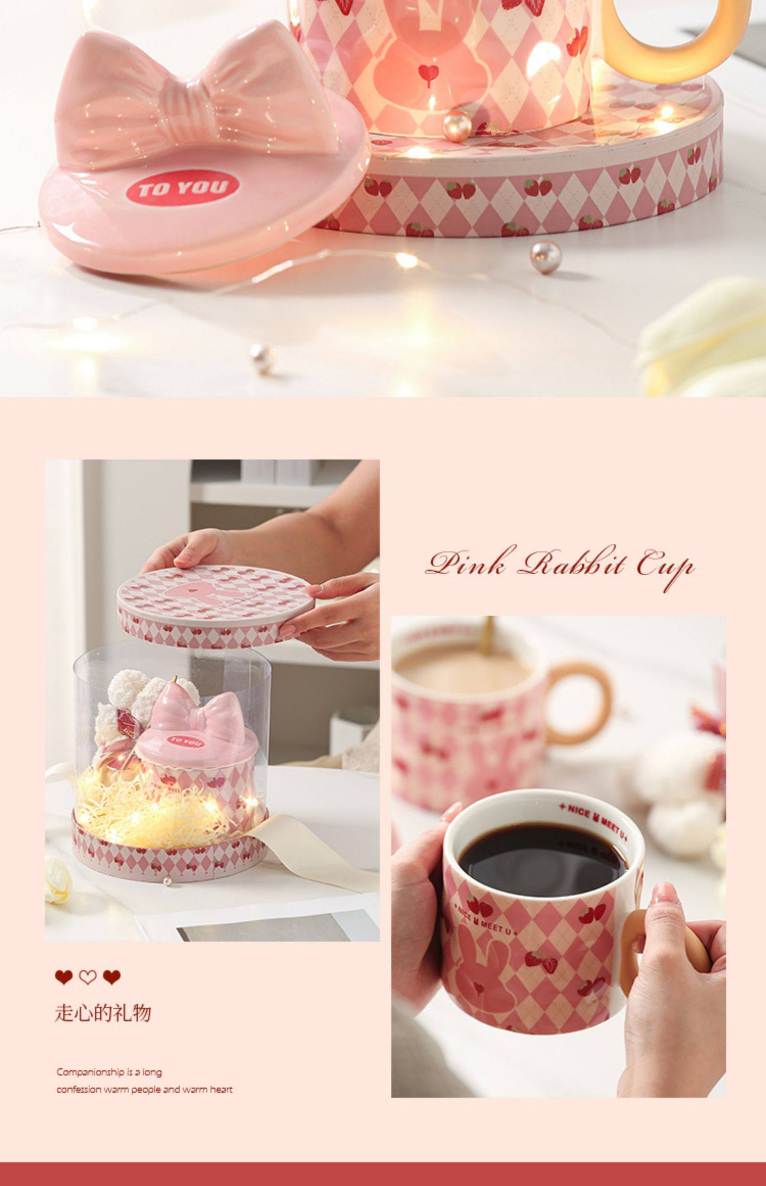 2024新款粉嫩少女心马克杯带盖高颜值家用陶瓷水杯子女生生日礼物