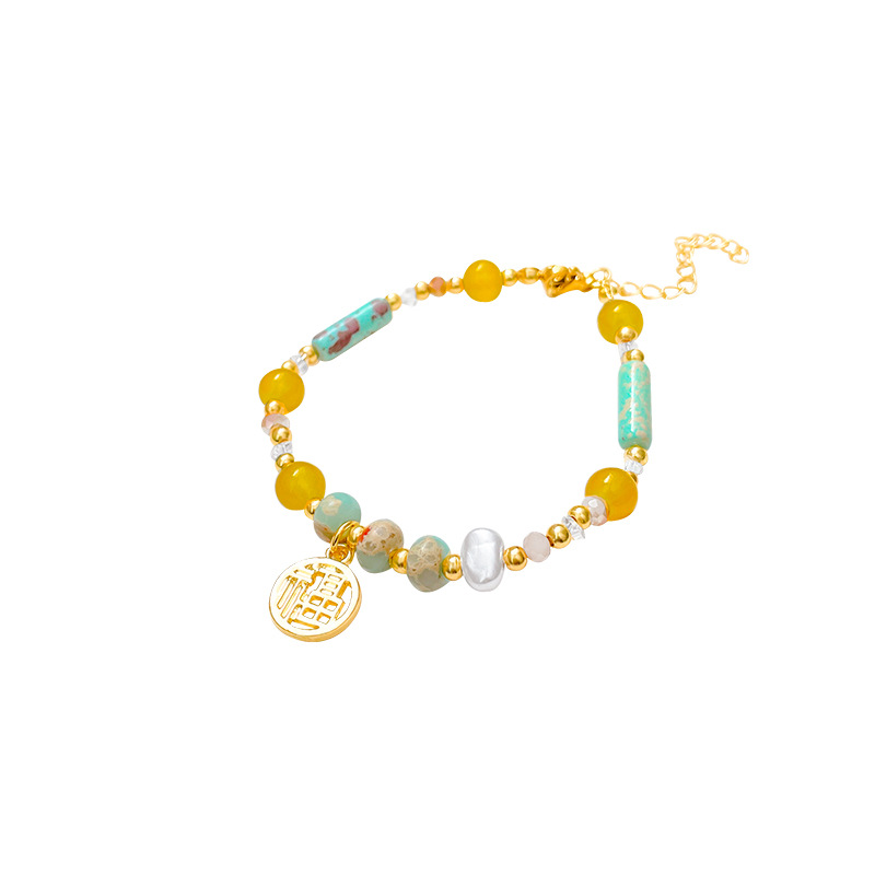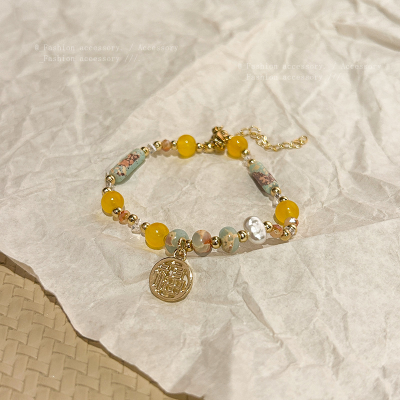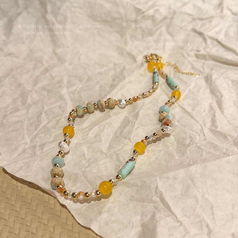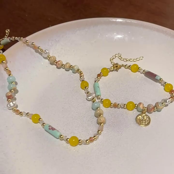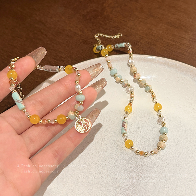轻奢小众高级感两件套项链锁骨链新中式中古风彩色串珠手链女批发