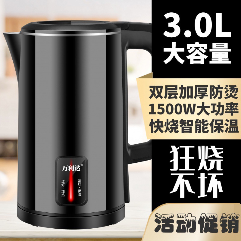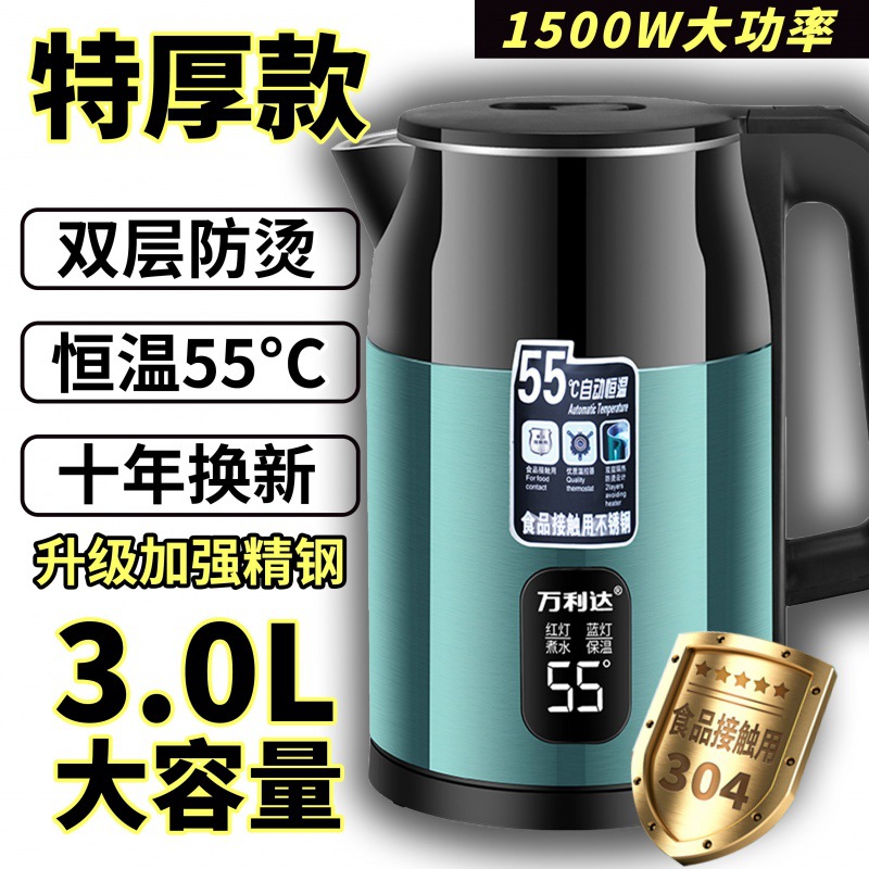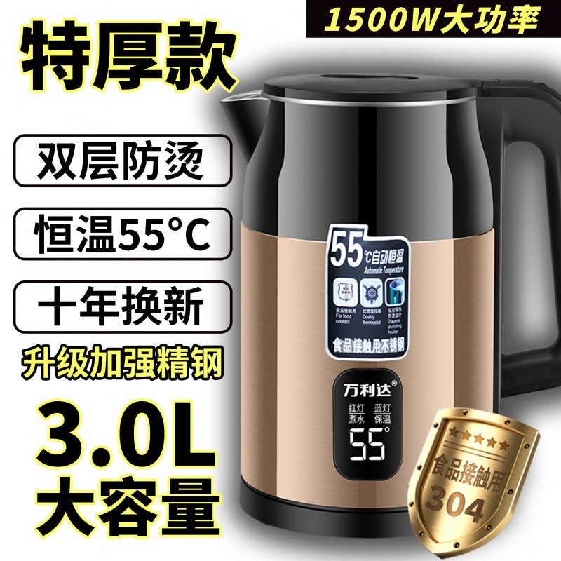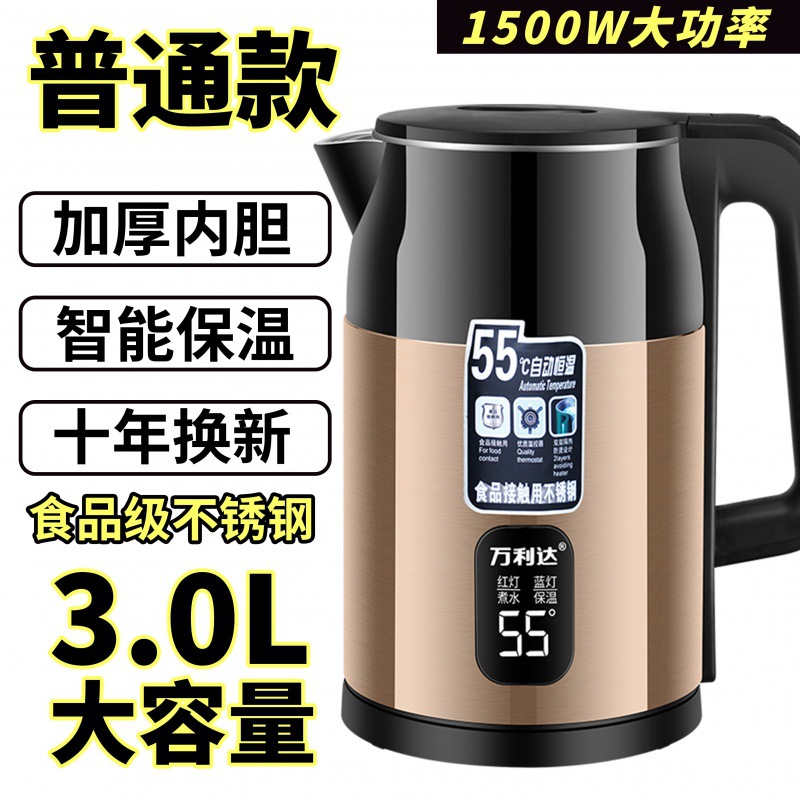万利达3.5L大容量烧水壶304不锈钢开水壶家用保温断电一体快烧壶