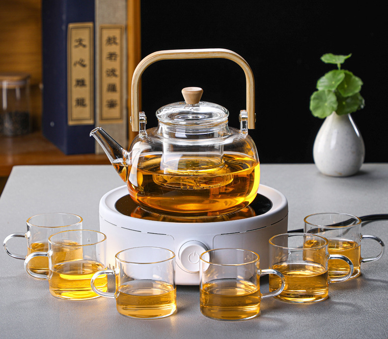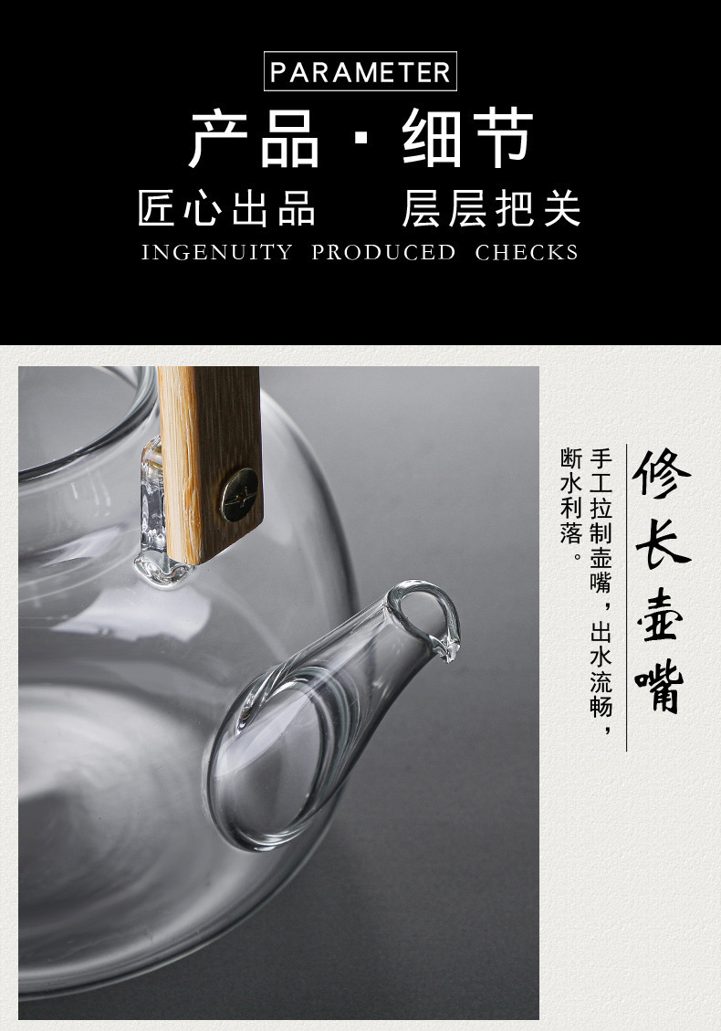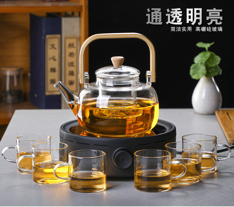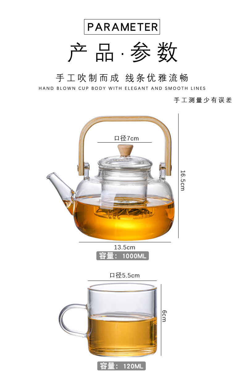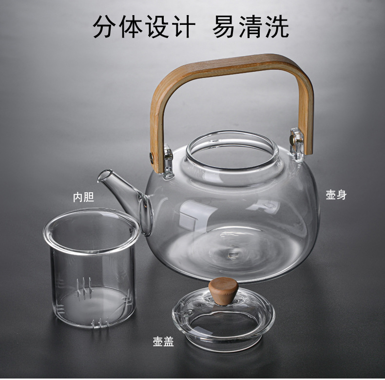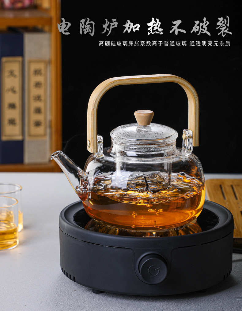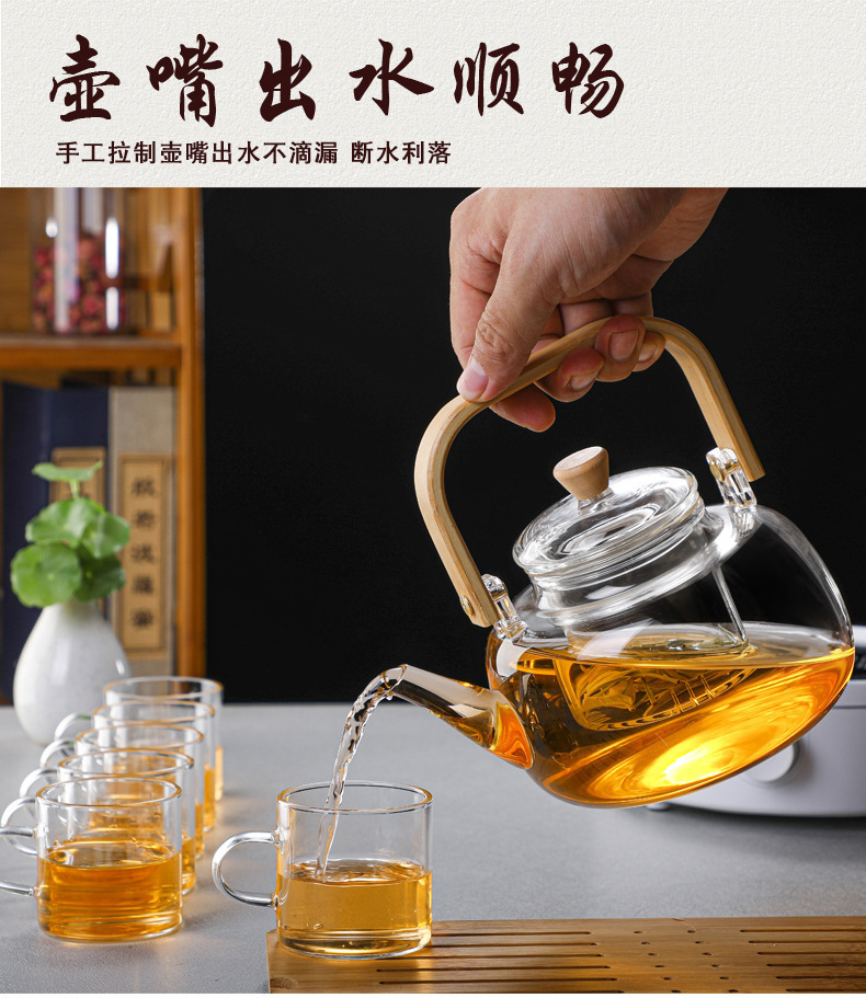 厂家批发竹把提梁壶 高硼硅玻璃花茶壶 家用透明玻璃泡茶壶烧水壶