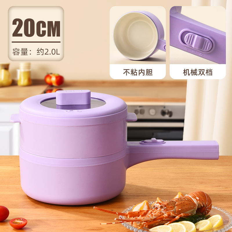 粤尔德直供 电热火锅宿舍1-2人煮面小电锅蒸煮多功能电煮锅