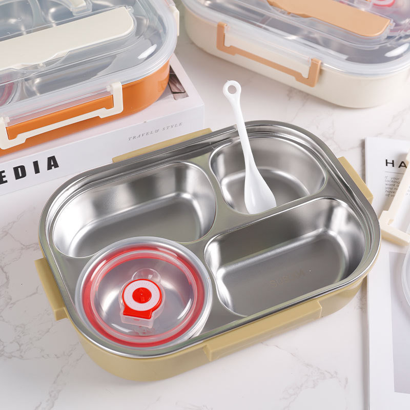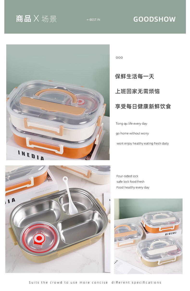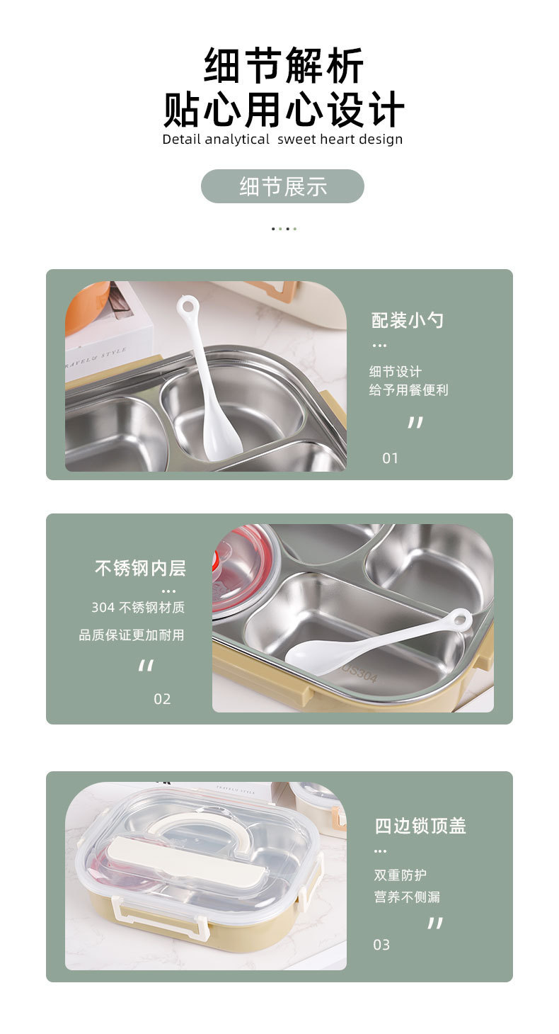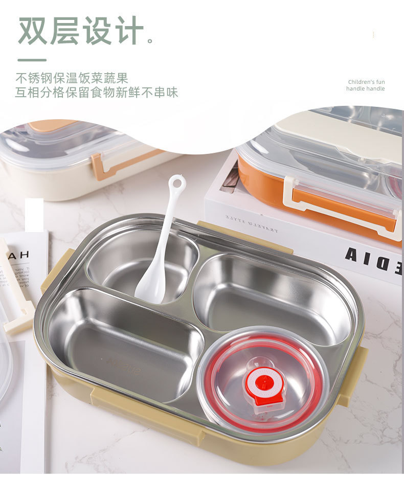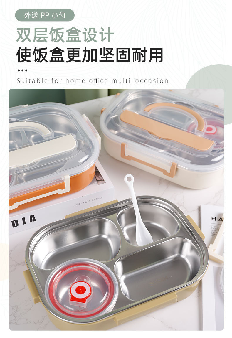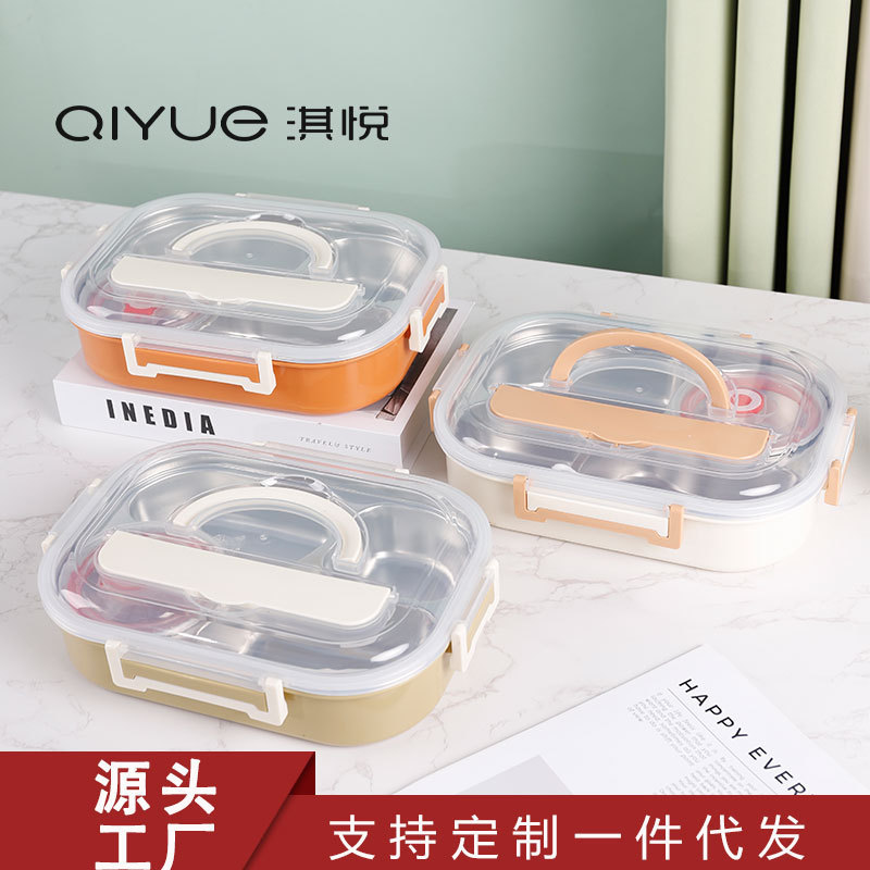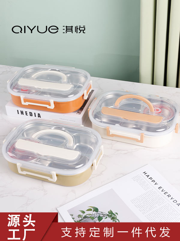 淇悦精美三格学生饭盒 防漏设计 容量适中满足学生用餐需求可批发