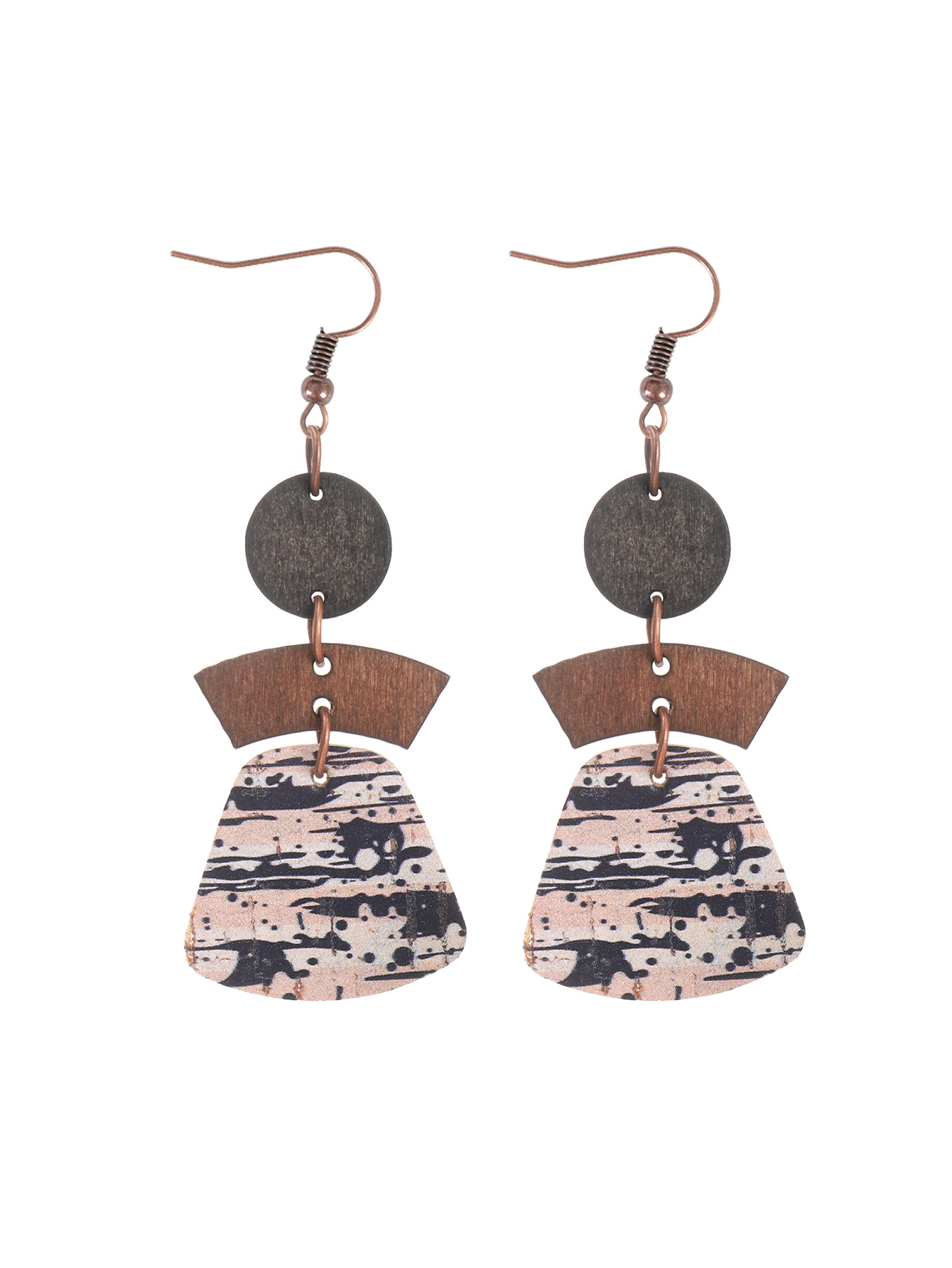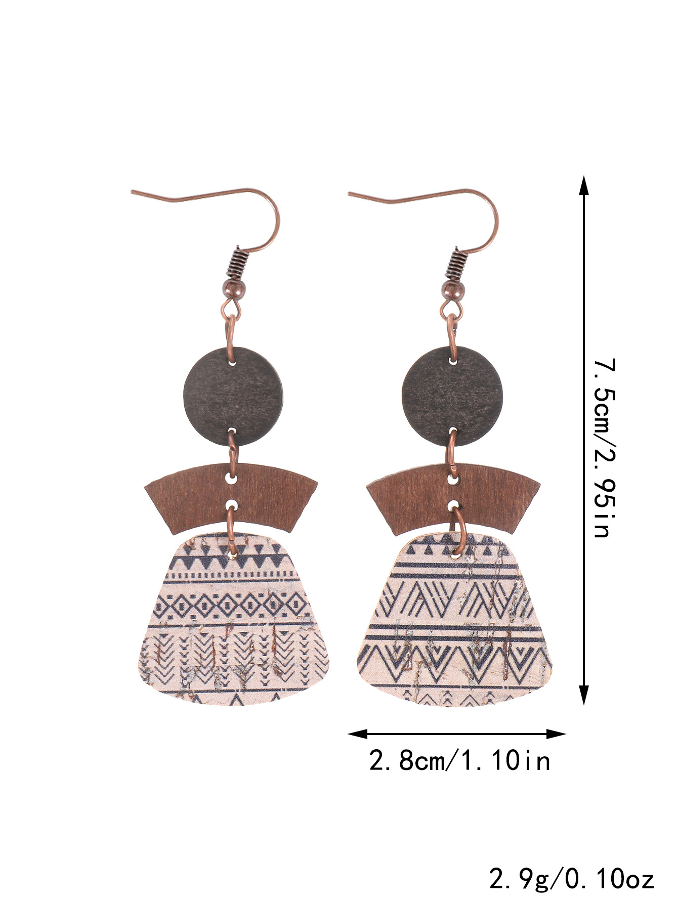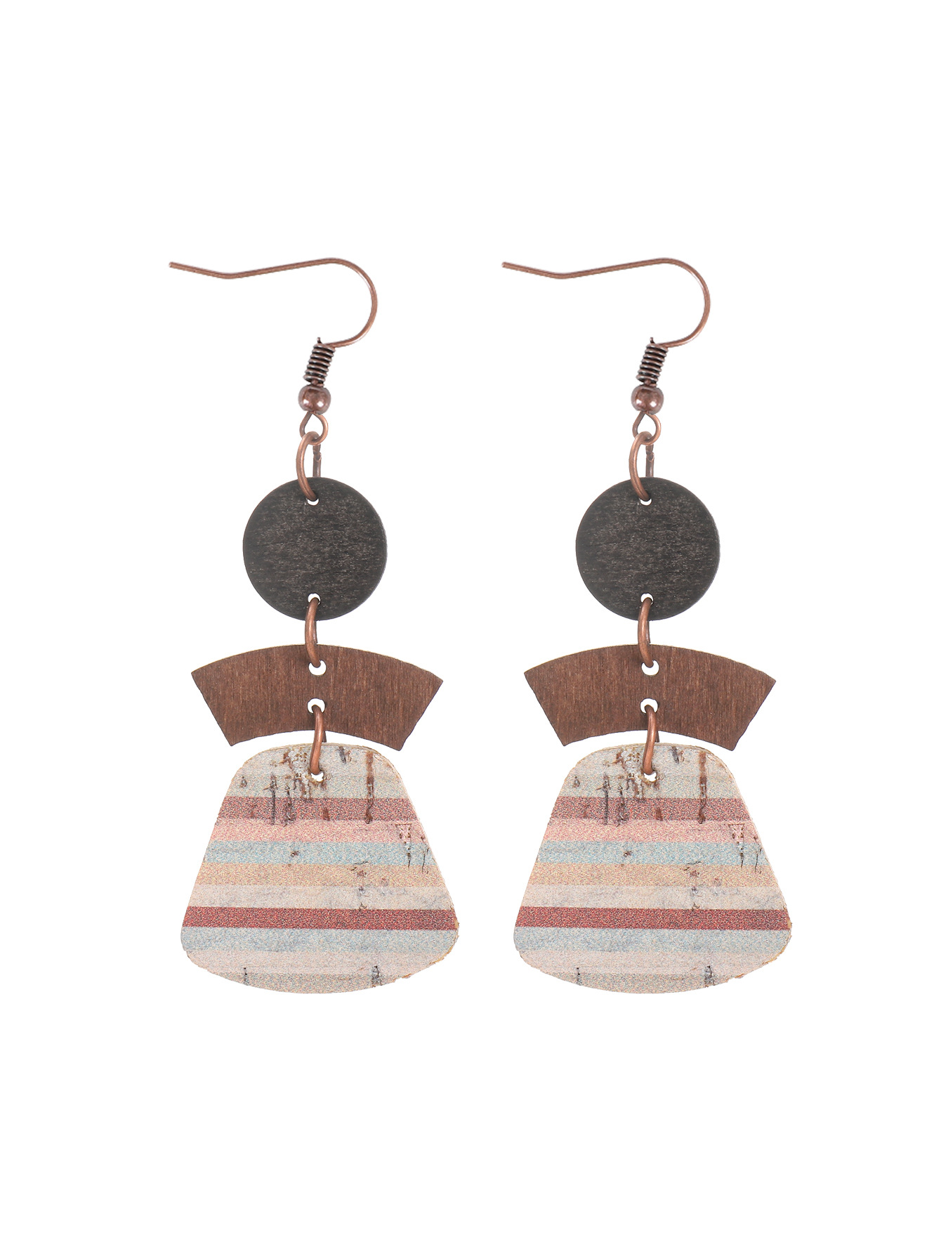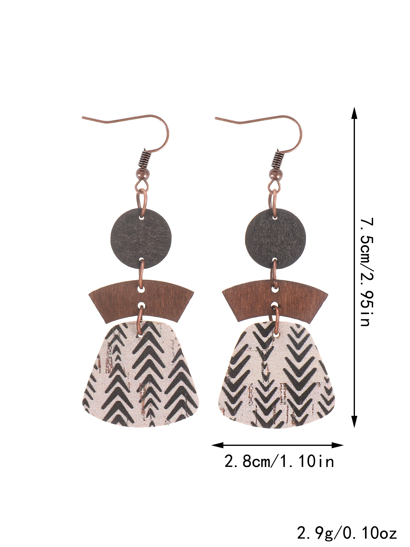 新款波西米亚风多层拼接耳环时尚简约几何形百搭软木耳环