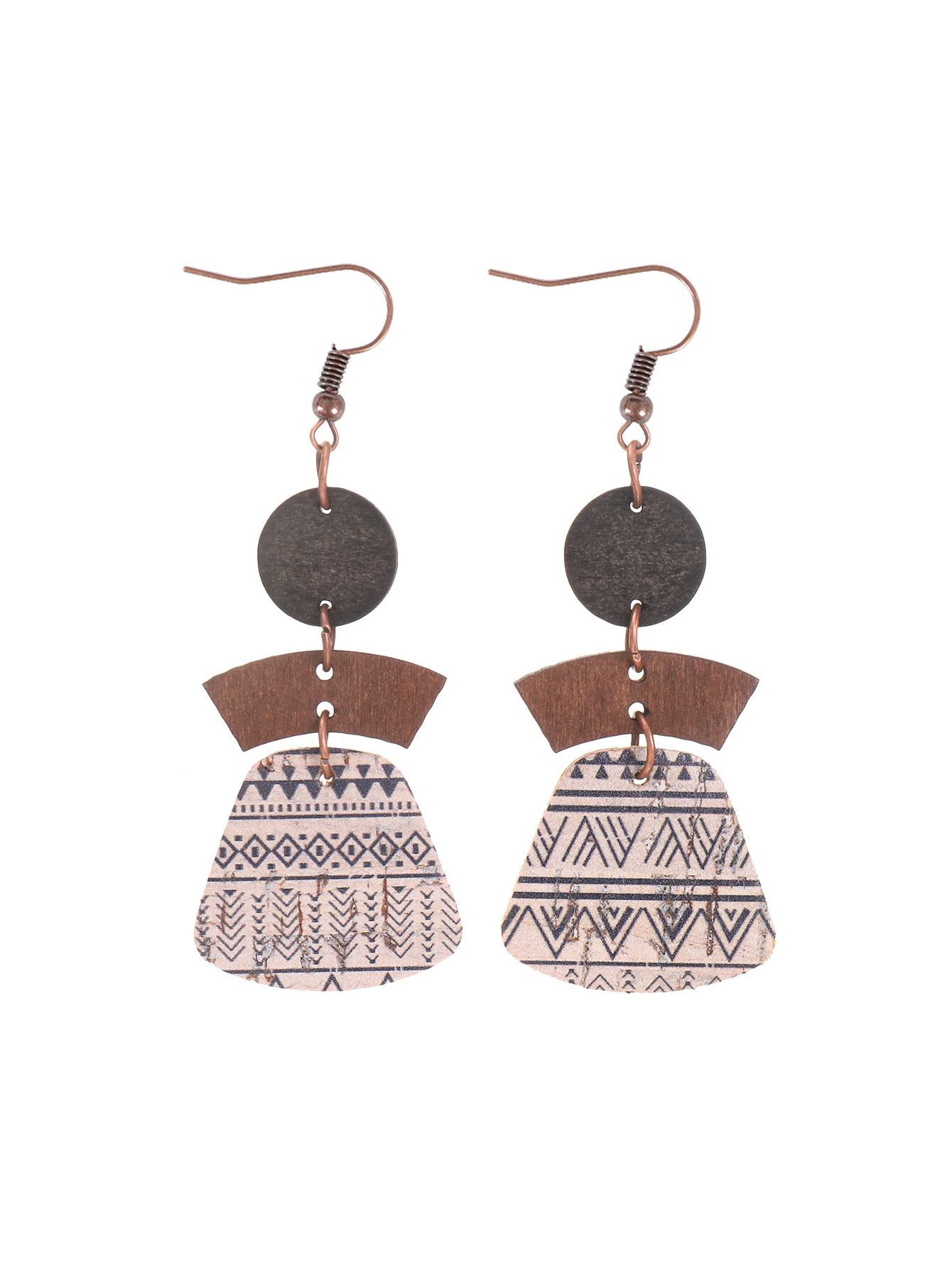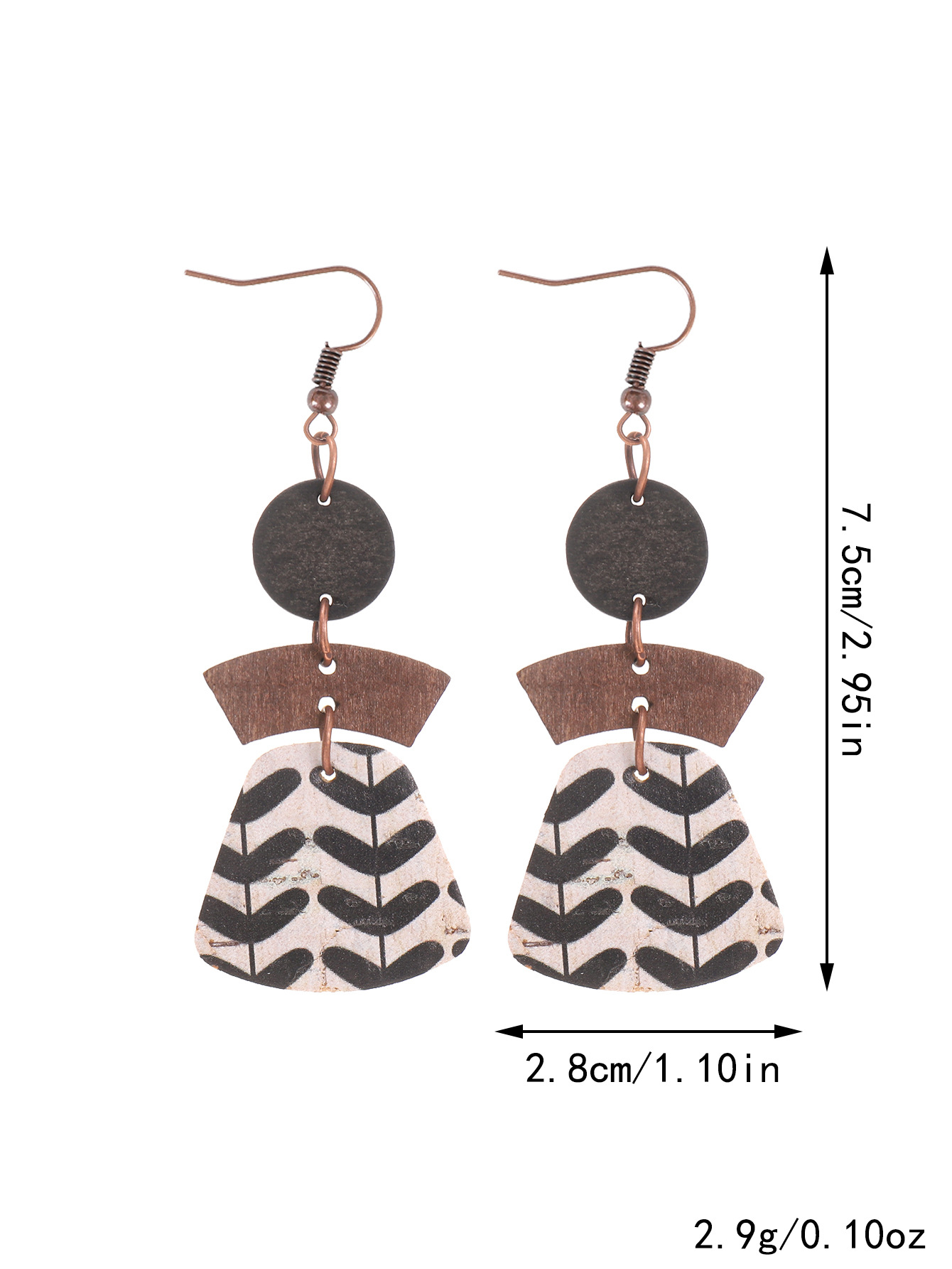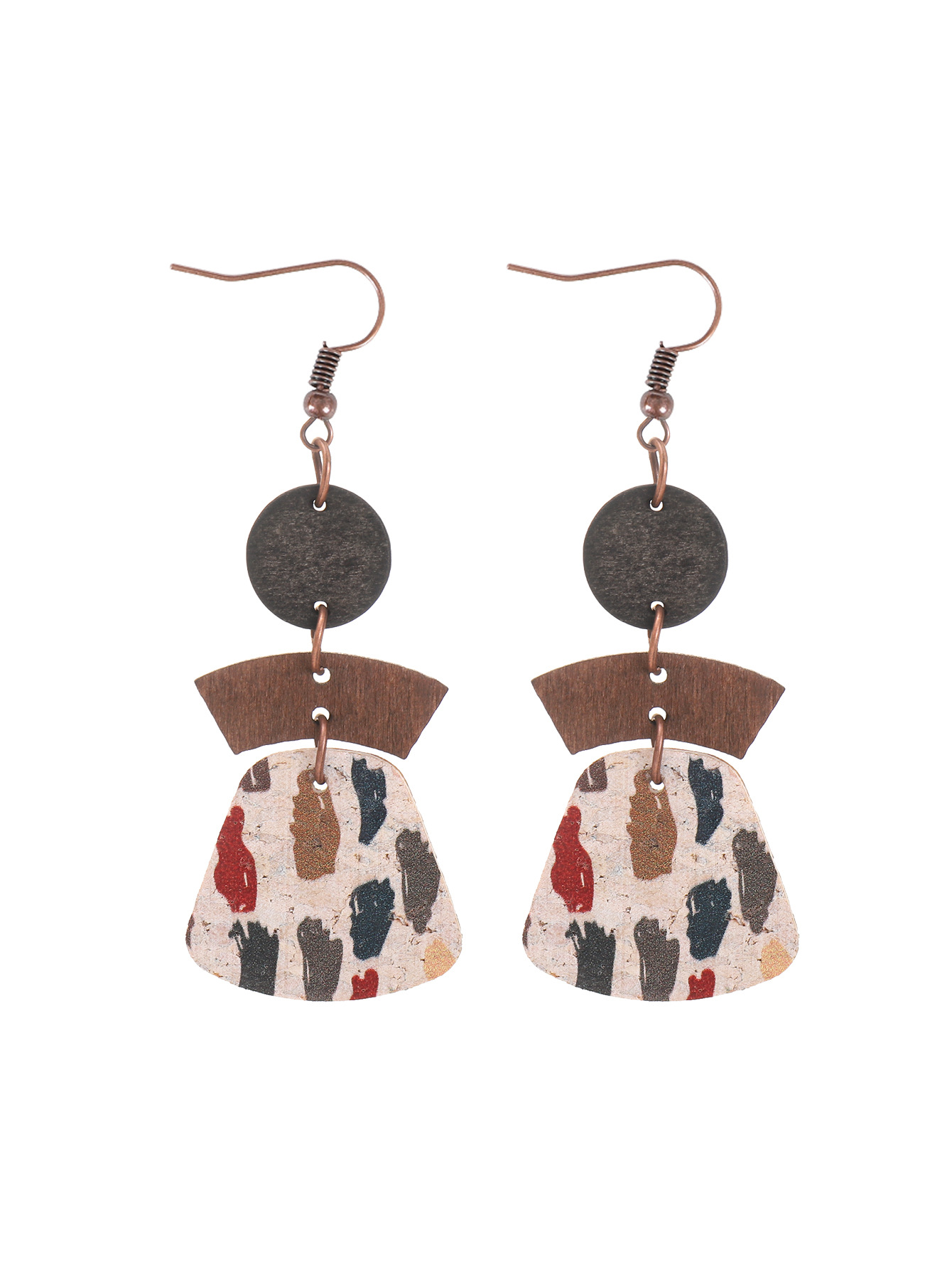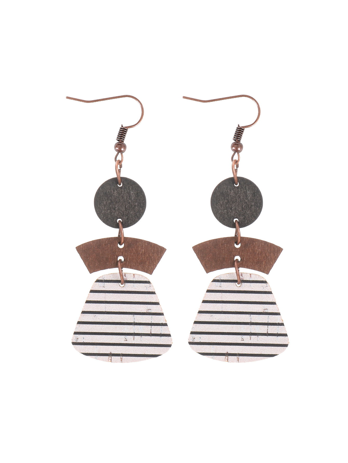 新款波西米亚风多层拼接耳环时尚简约几何形百搭软木耳环