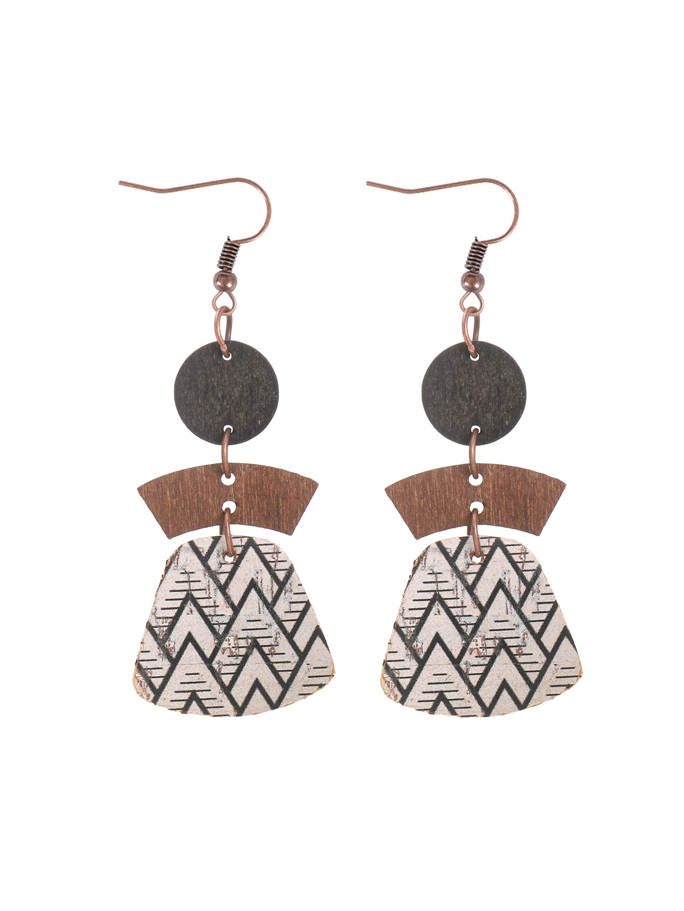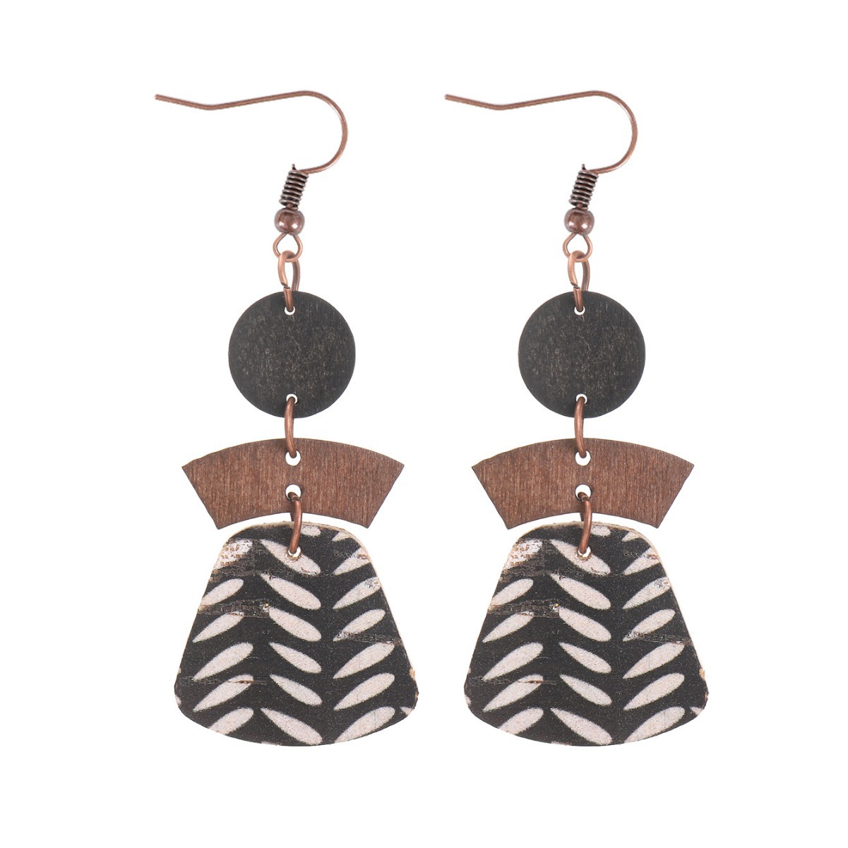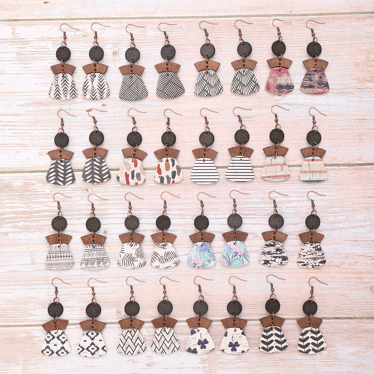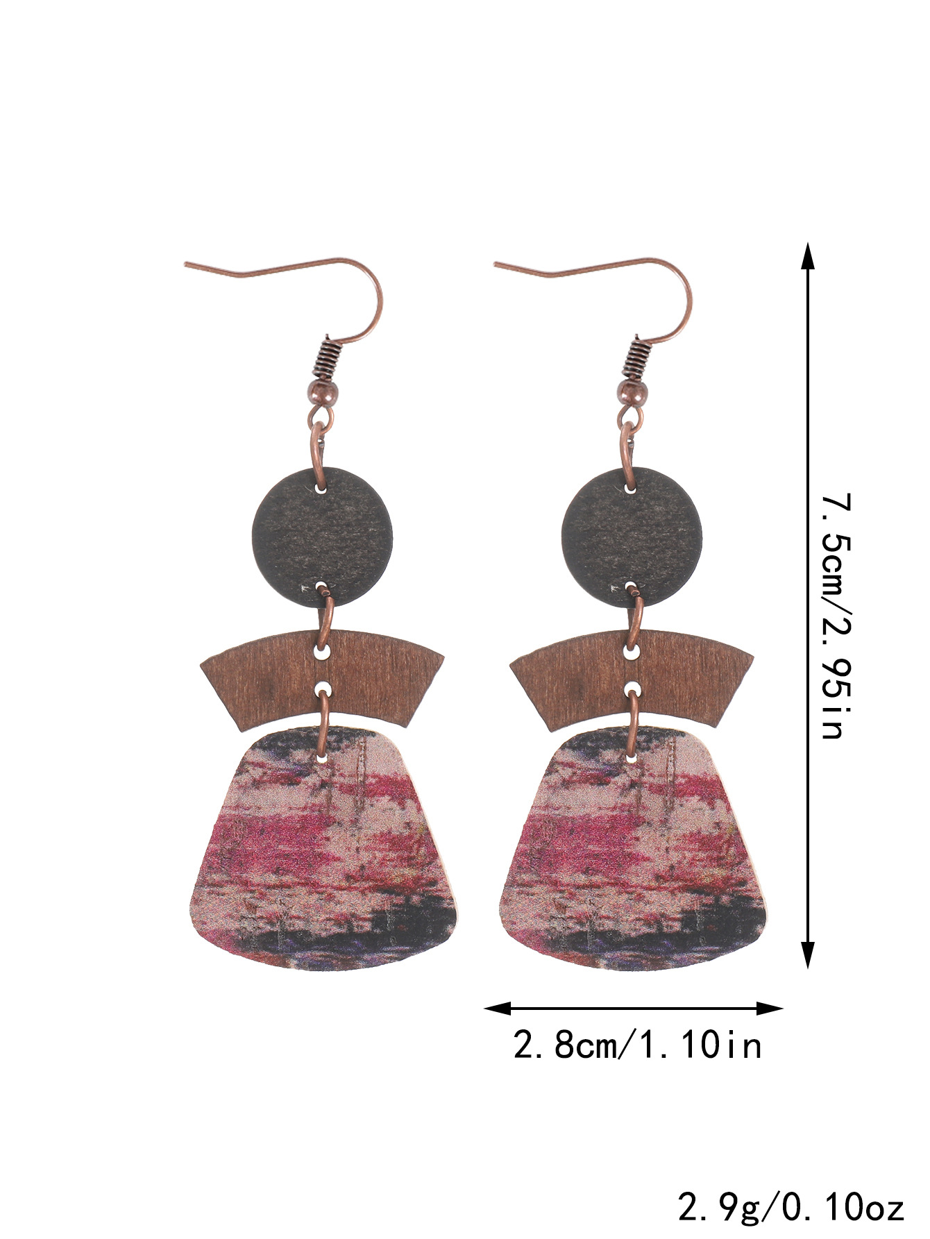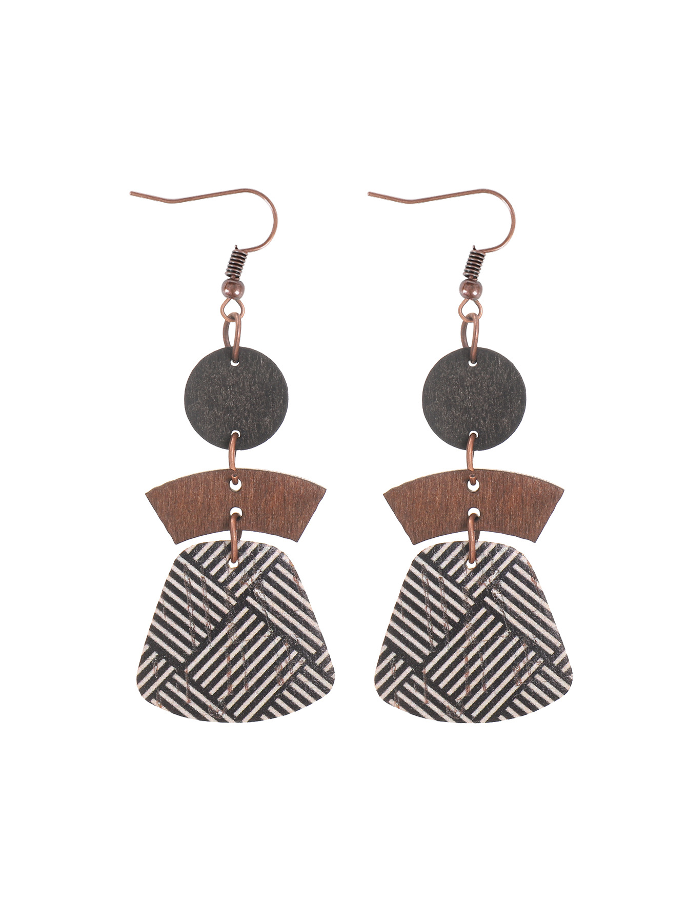 新款波西米亚风多层拼接耳环时尚简约几何形百搭软木耳环