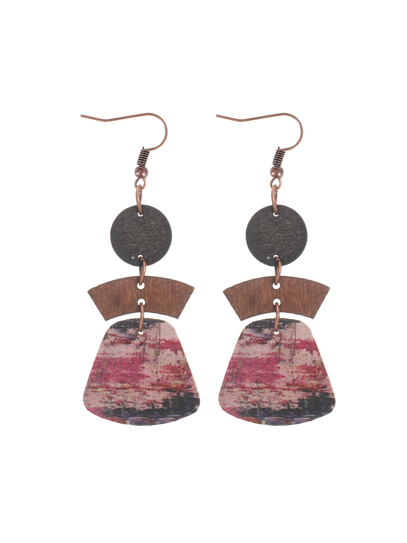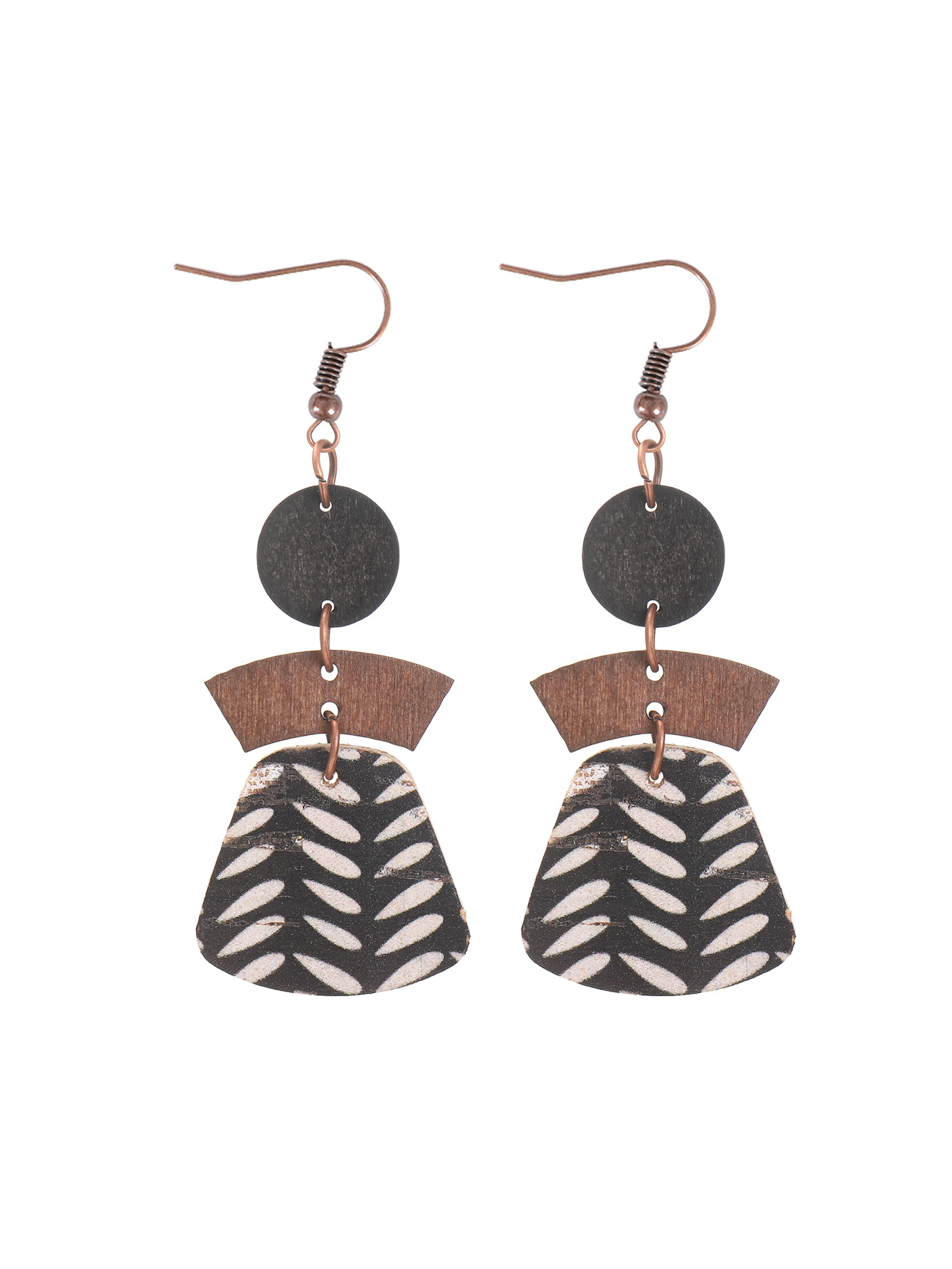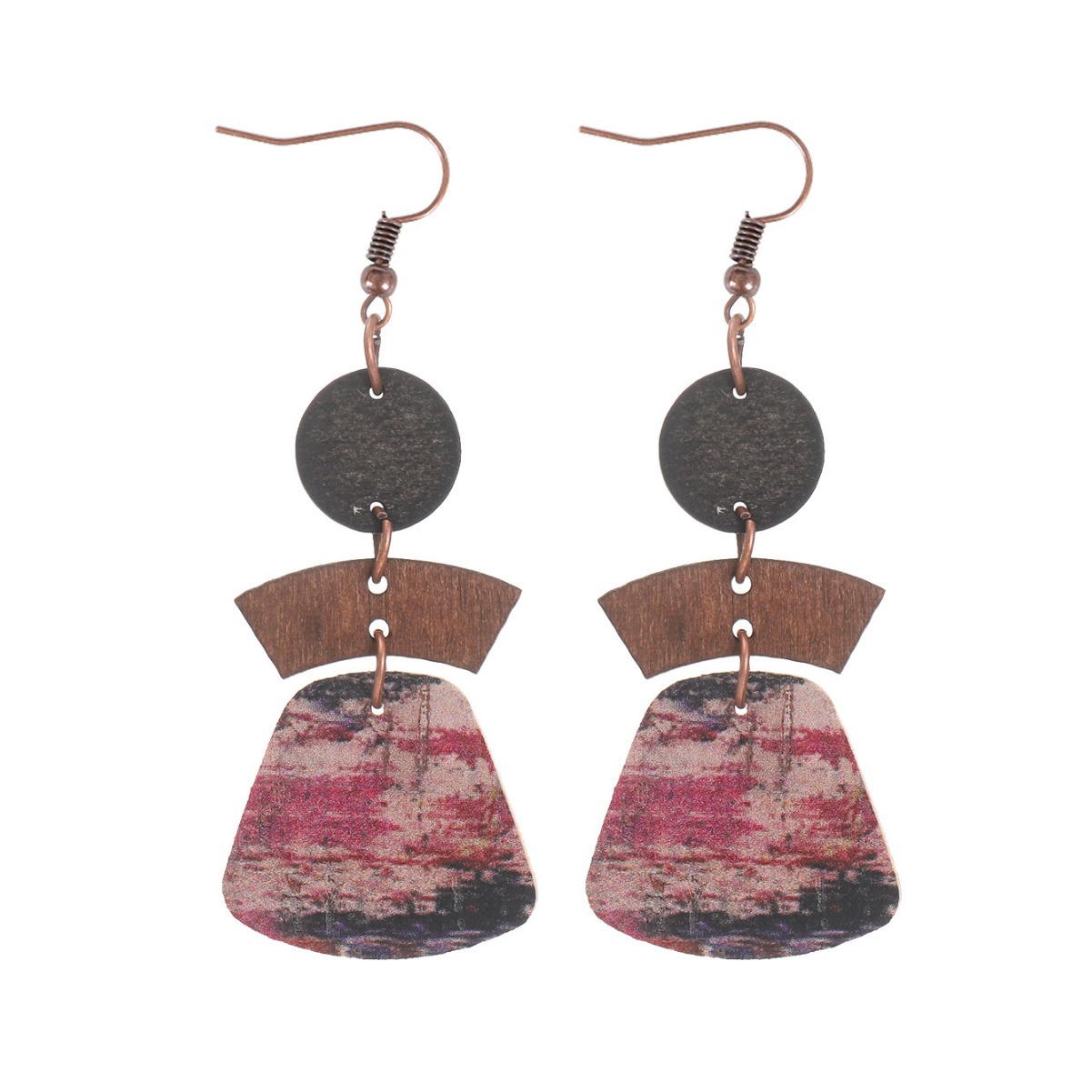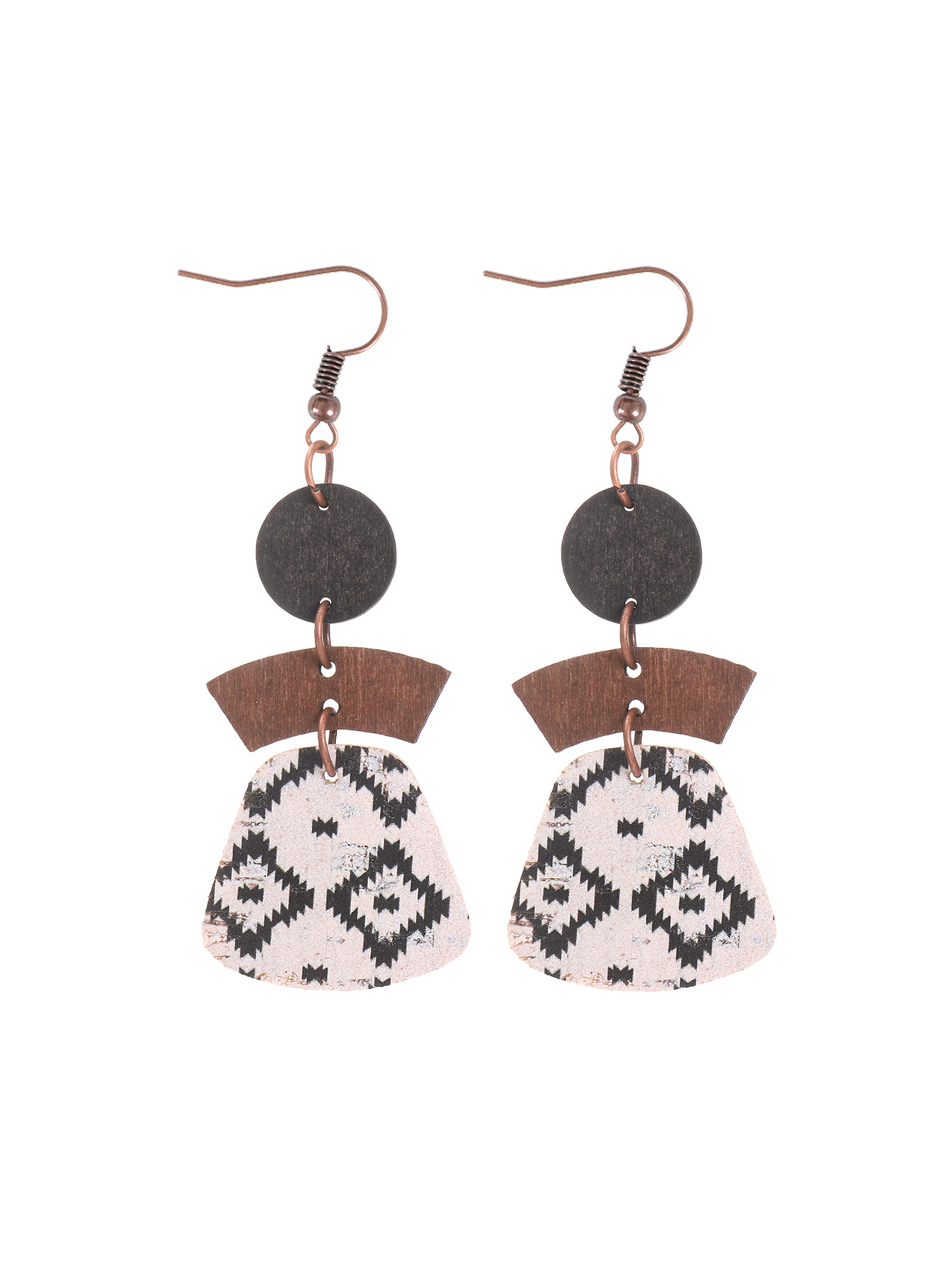 新款波西米亚风多层拼接耳环时尚简约几何形百搭软木耳环