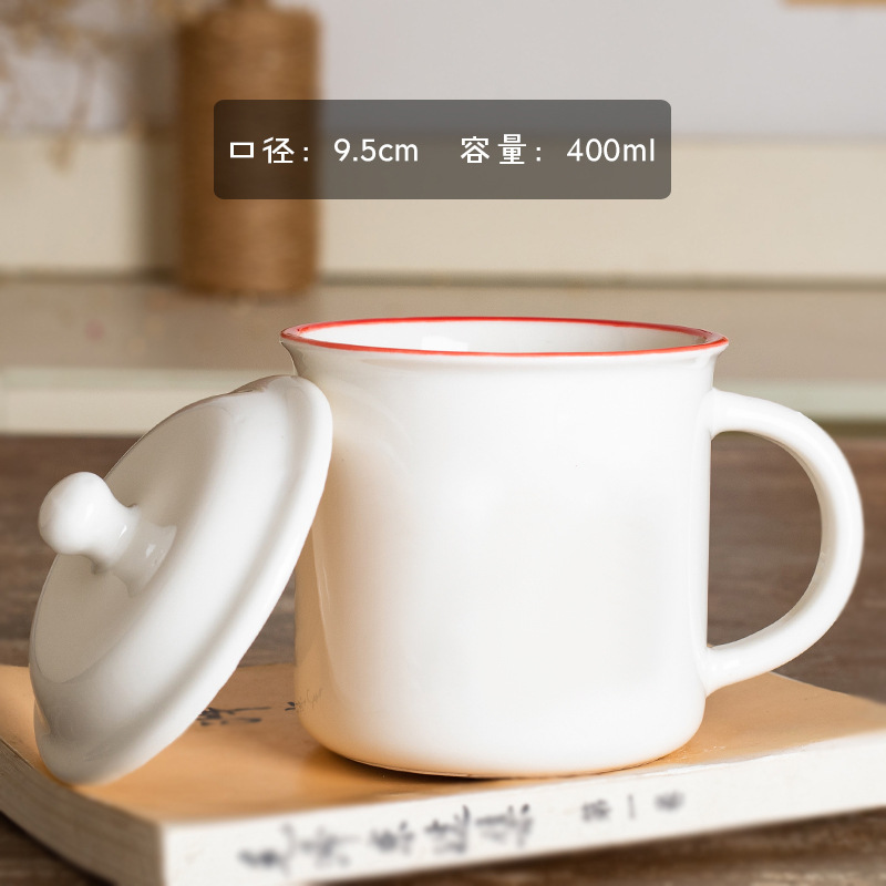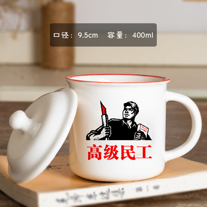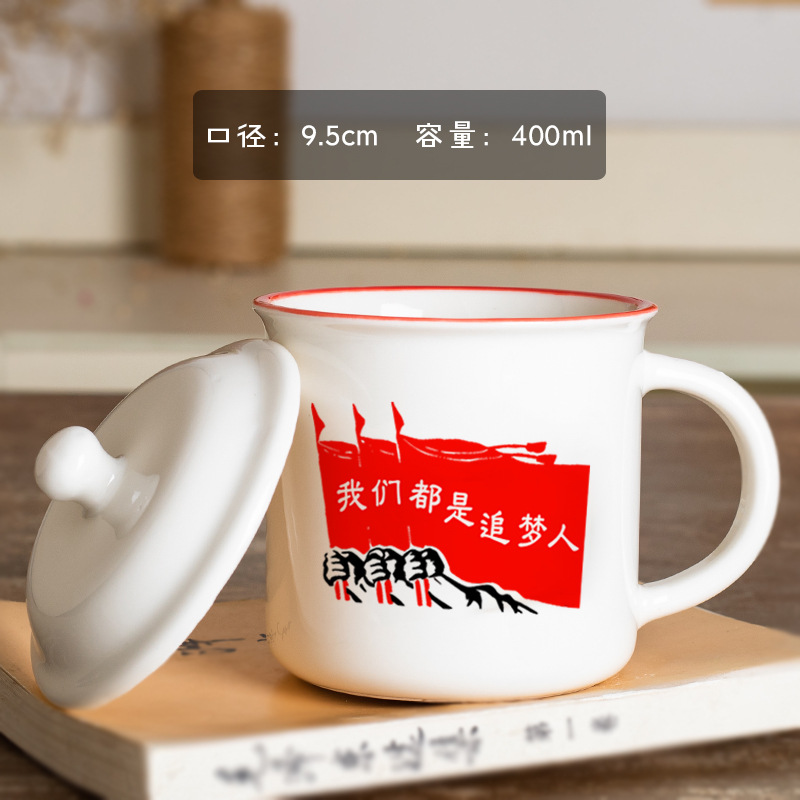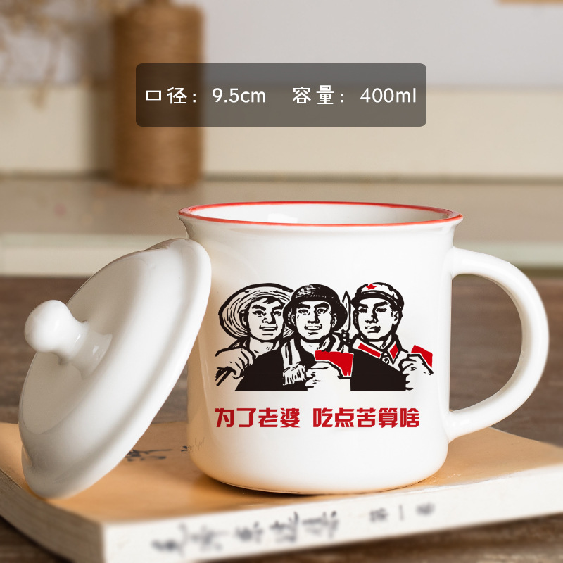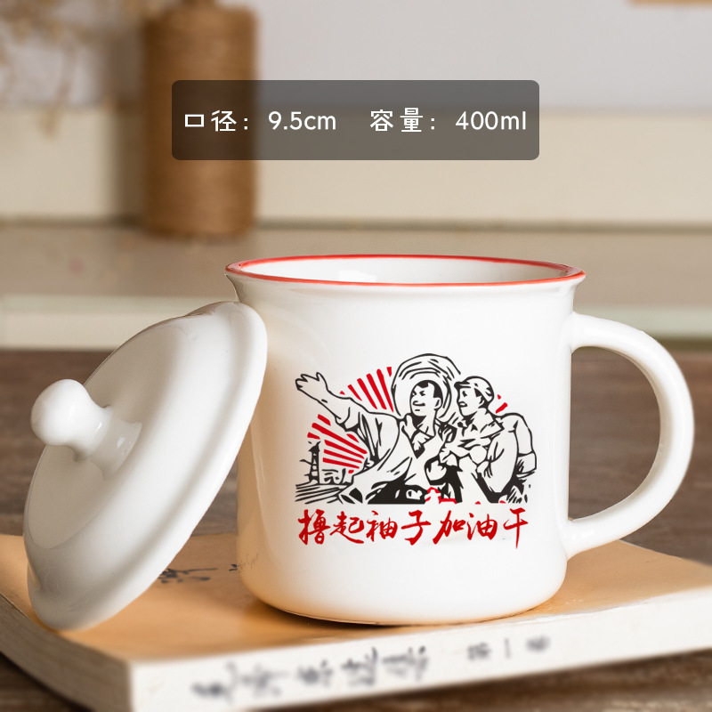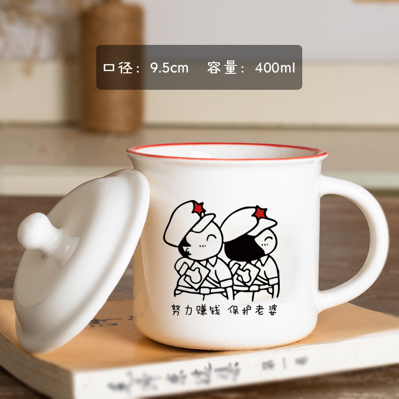 复古创意仿搪瓷水杯陶瓷马克杯带盖办公室怀旧杯同学会礼物可定