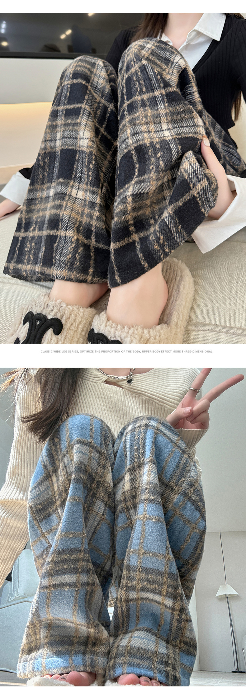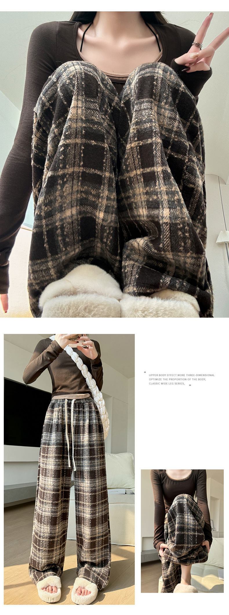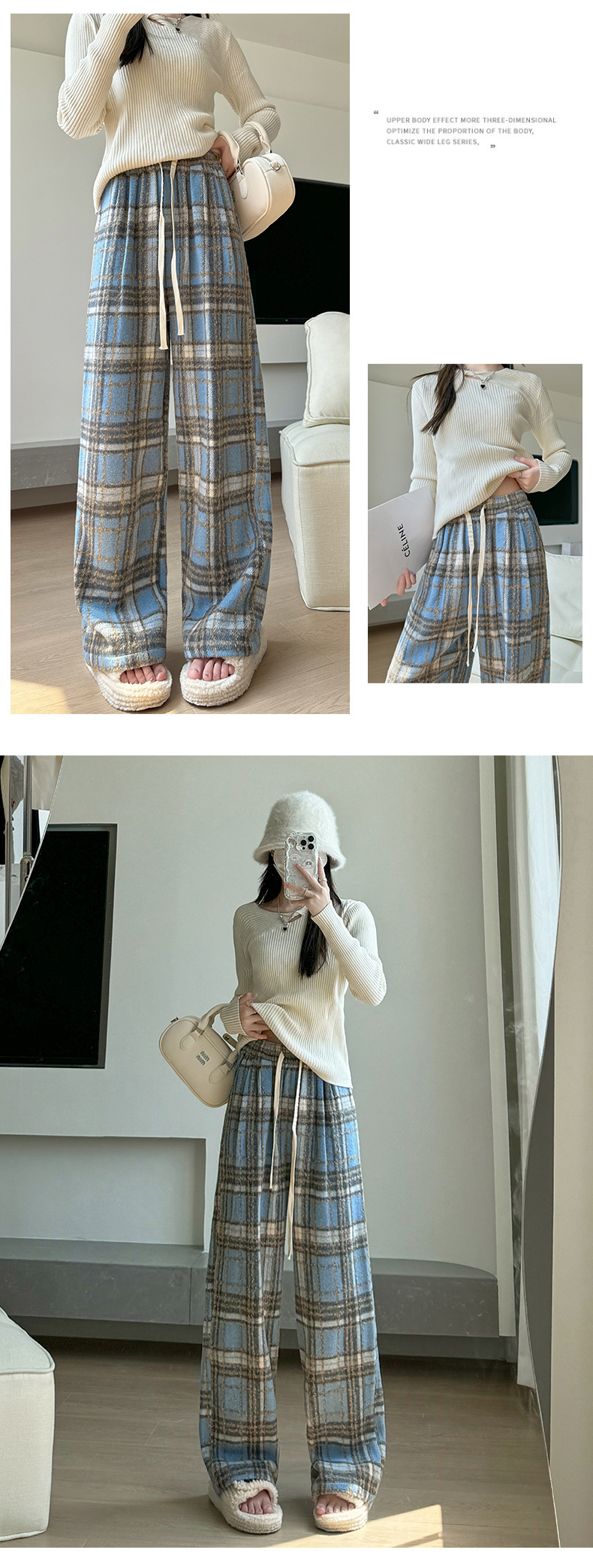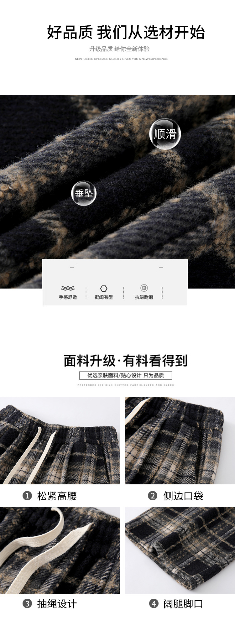 红色格子裤子女阔腿裤春秋新款垂感休闲直筒裤遛弯山本毛呢拖地裤