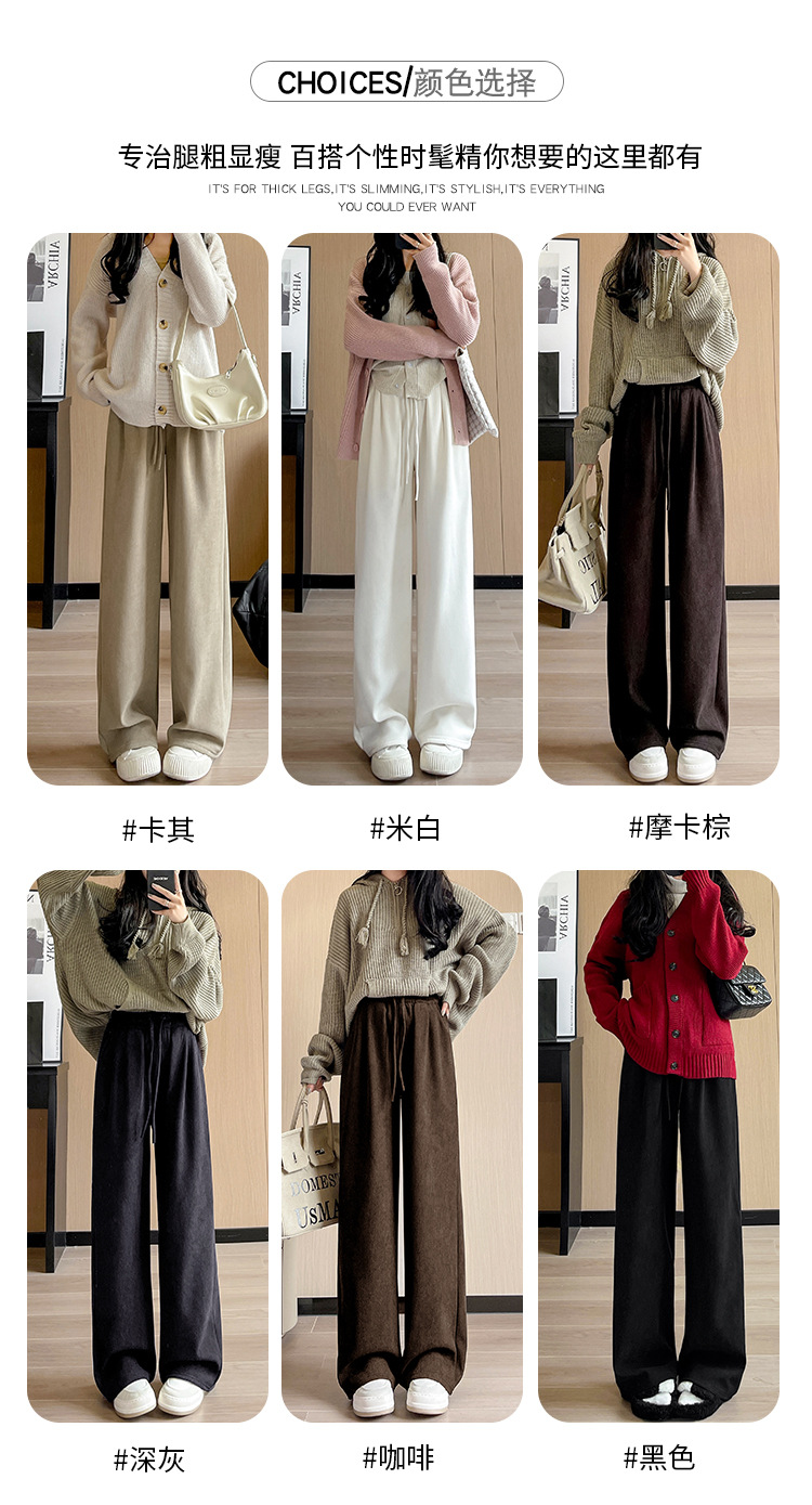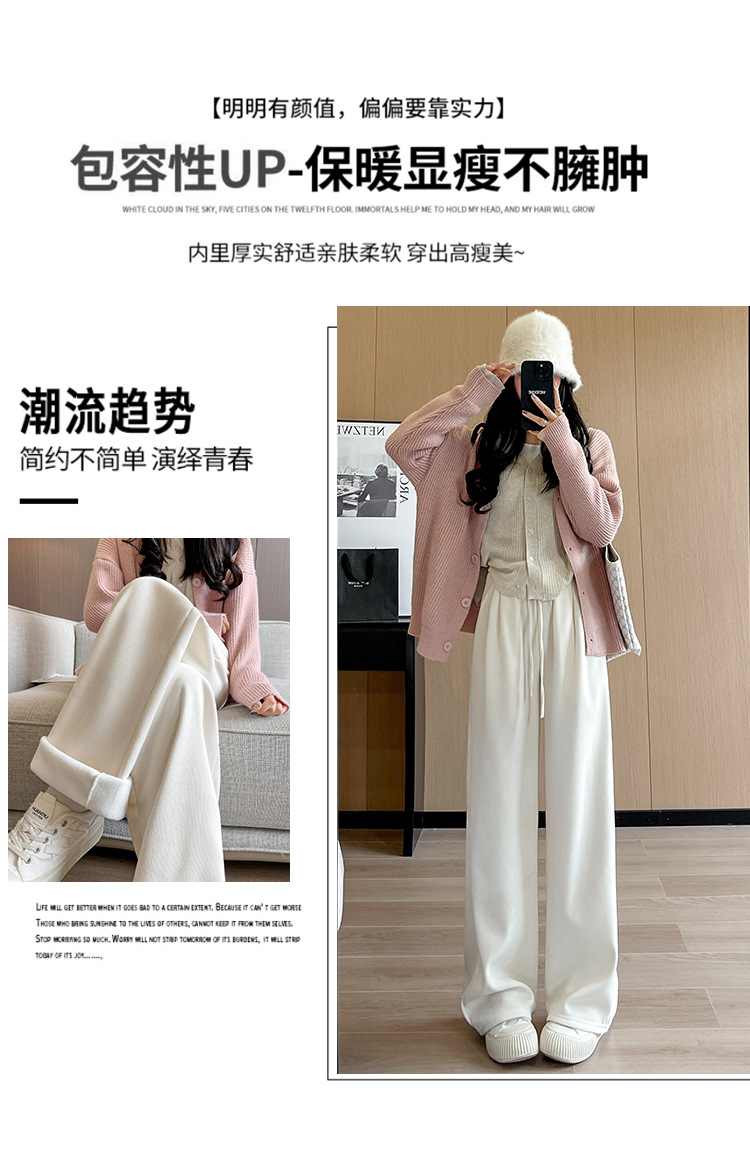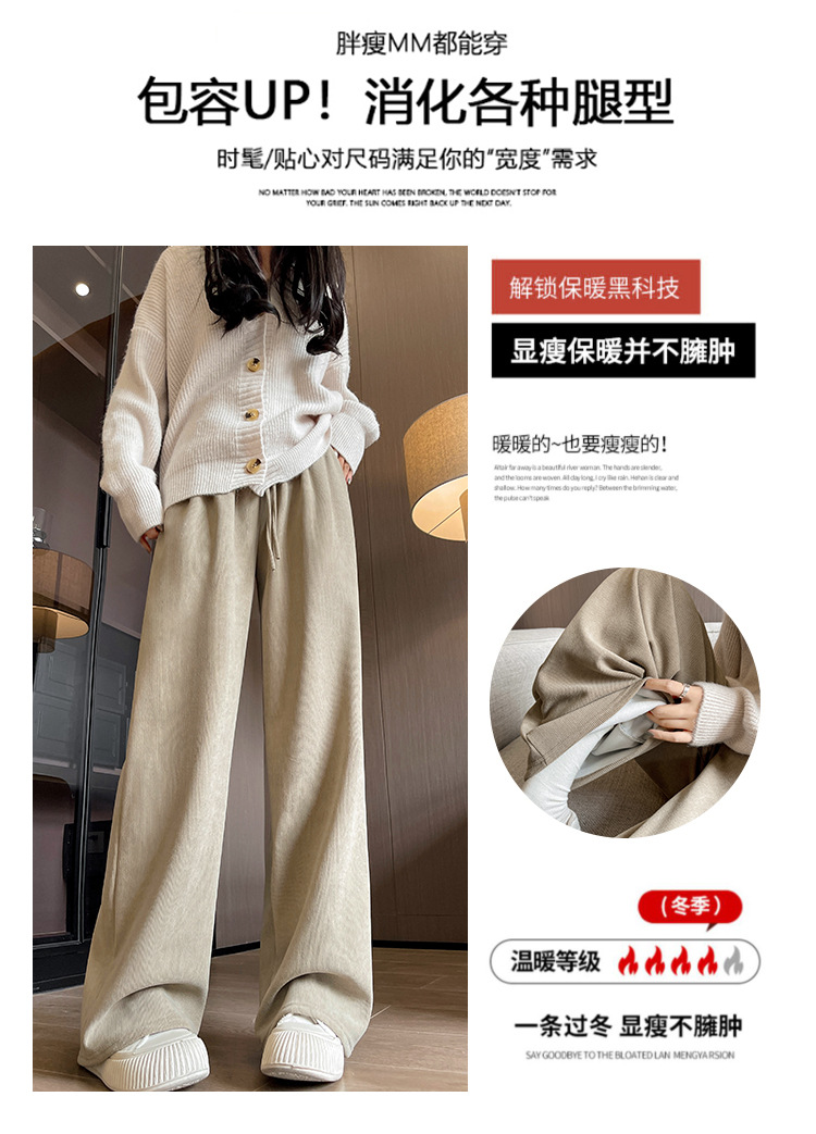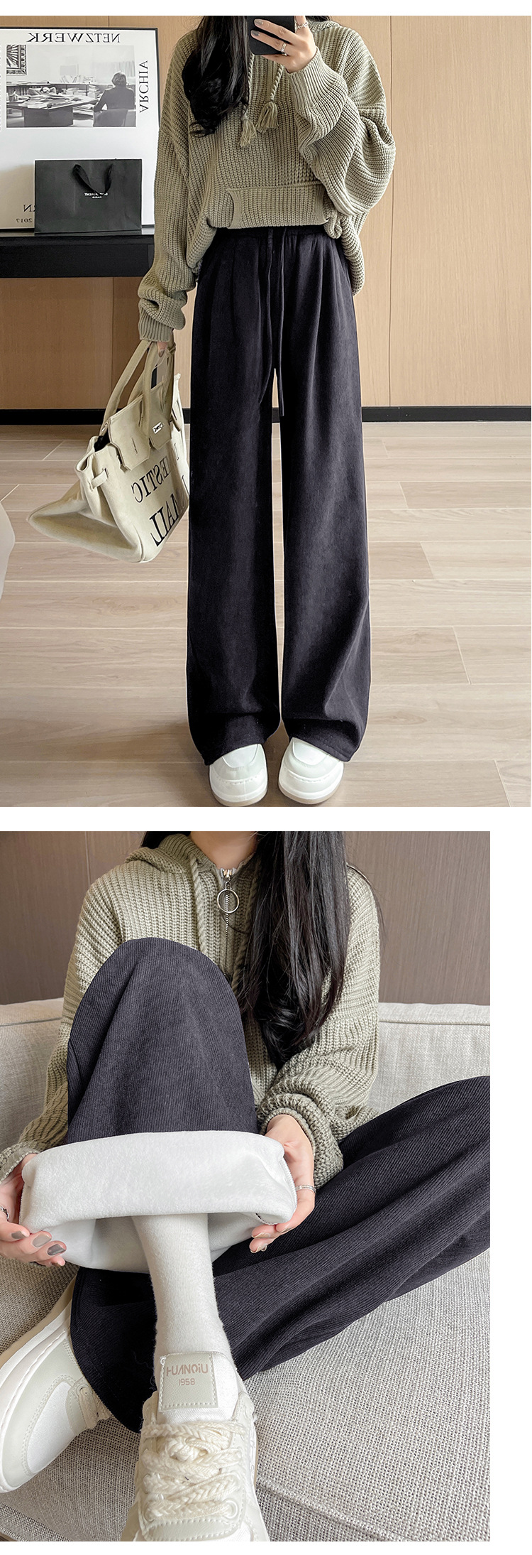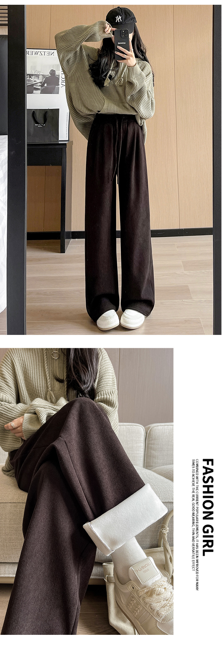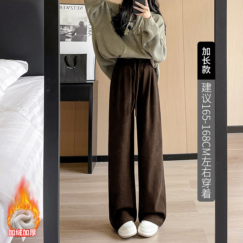 雪尼尔阔腿裤女秋季加绒裤子慵懒宽松显瘦休闲裤高腰女装拖地长裤