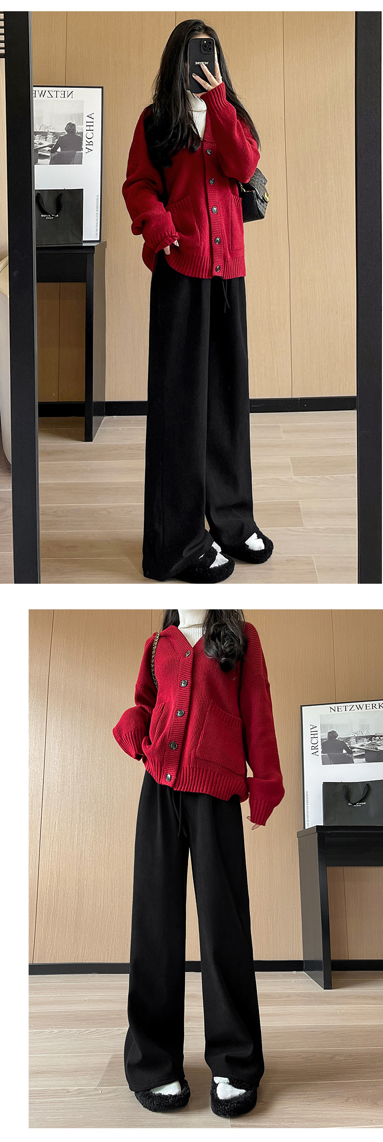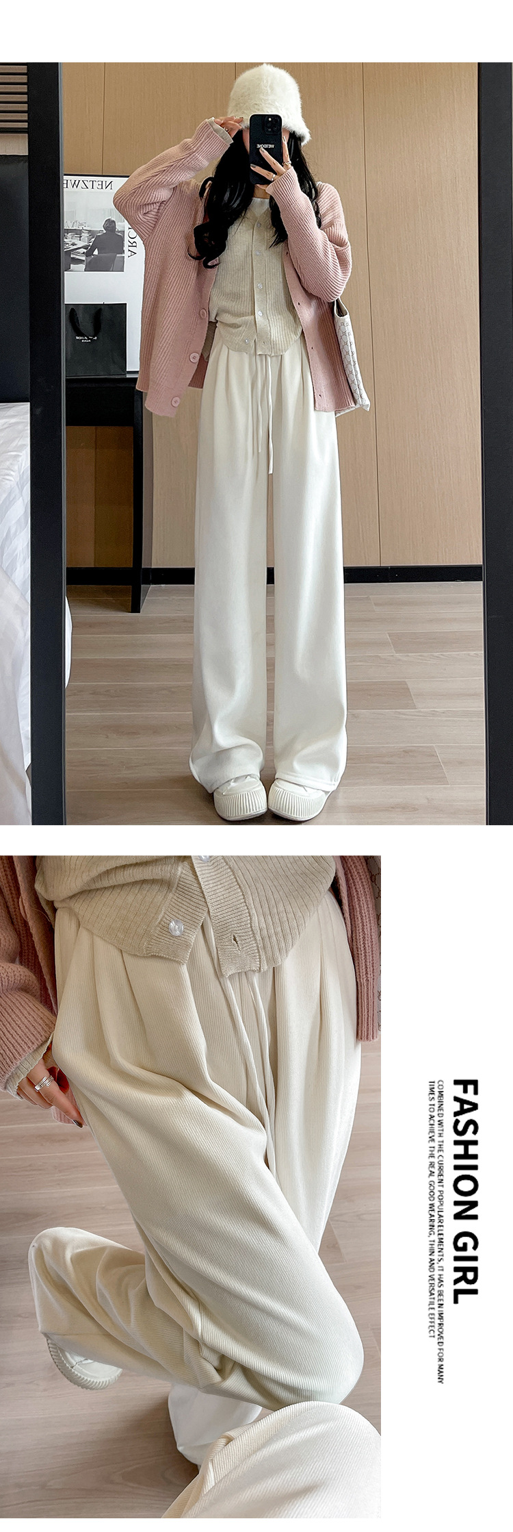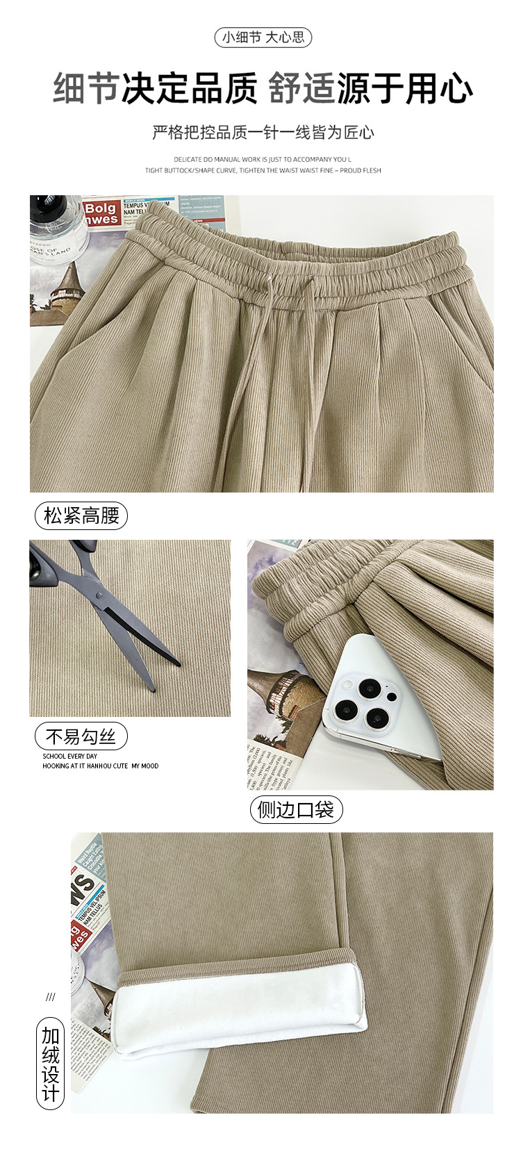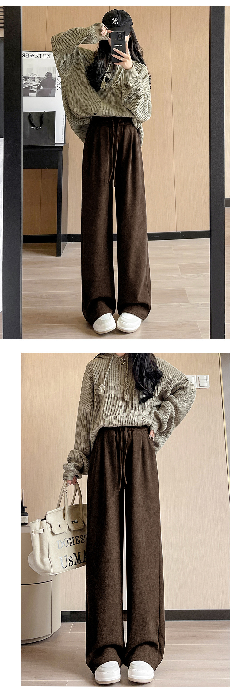 雪尼尔阔腿裤女秋季加绒裤子慵懒宽松显瘦休闲裤高腰女装拖地长裤